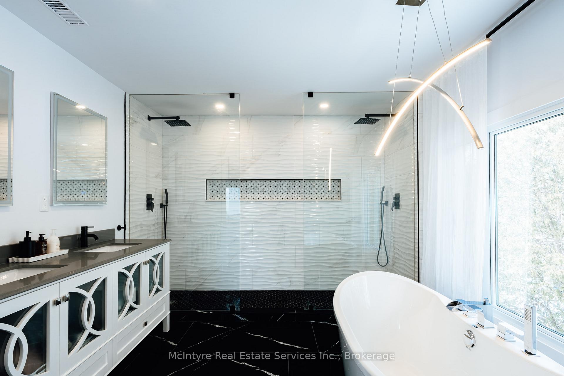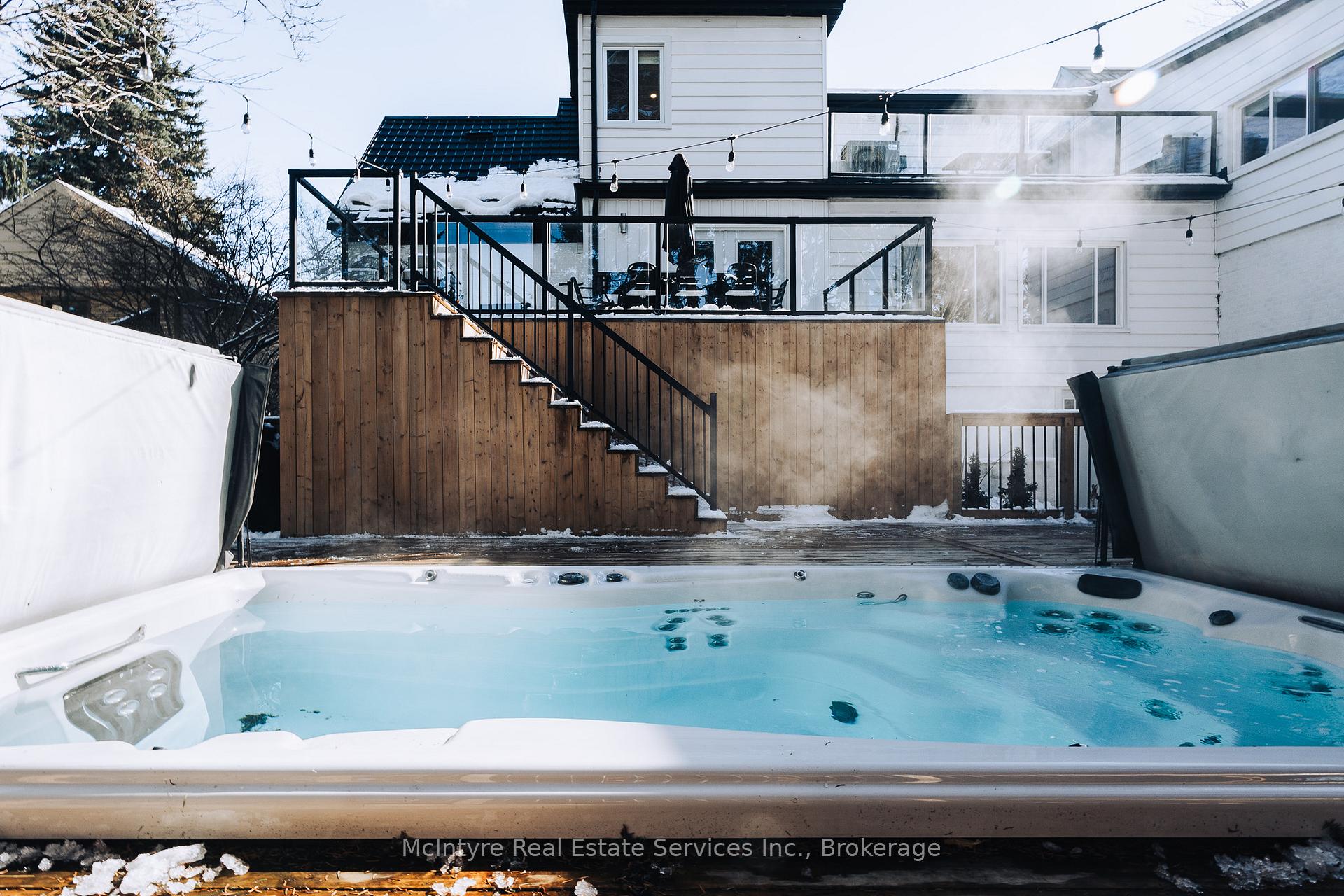This truly one-of-a-kind, fully upgraded executive home offers over 4,200 square feet of beautifully finished living space and is designed to impress at every turn. Featuring five bedrooms on the upper level plus an additional bedroom on the lower level, along with five well-appointed bathrooms, this property provides exceptional comfort and flexibility for families of all sizes. The home includes two attached garages with inside entry, a wrap-around driveway, a walk-out basement with a finished gym area, and a convenient pet washing station. Recent professional landscaping with armour stone and private fully fenced-in backyard, while the expansive multi-level deck and covered outdoor retreat-complete with a swim spa/hot tub and sauna-create the perfect setting for relaxation and entertaining. Inside, you’ll find custom cabinetry throughout, quartz countertops, engineered hardwood flooring, upgraded lighting, built-in stainless steel appliances with a decorative hood fan. Two primary suites, each with a full ensuite, offer luxurious accommodations, including a custom walk-in closet in the main primary bedroom. An elevated back patio provides a peaceful space to unwind, and the home offers ample storage and versatile areas for work, fitness, and leisure. Ideally located on a quiet crescent and just minutes from the expressway, restaurants, shopping, and everyday amenities, this exceptional property delivers the perfect blend of luxury, convenience, and privacy. Homes of this calibre rarely come to market and this one shows AAA+.
