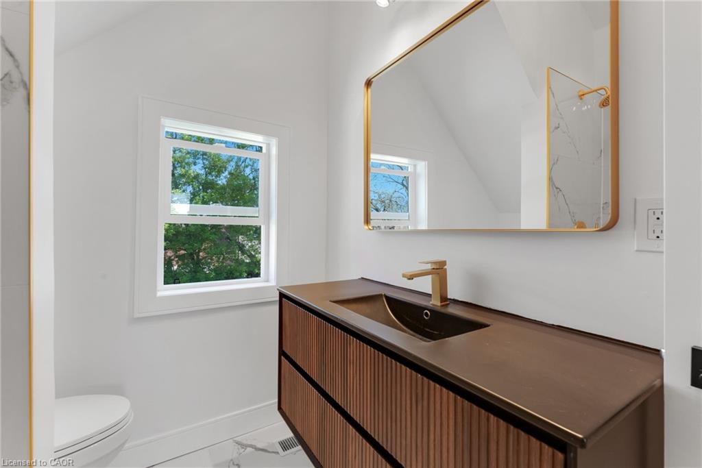 throughout. The custom kitchen and beautifully finished bathrooms are outfitted with sleek cabinetry and high-end fixtures. Additional upgrades