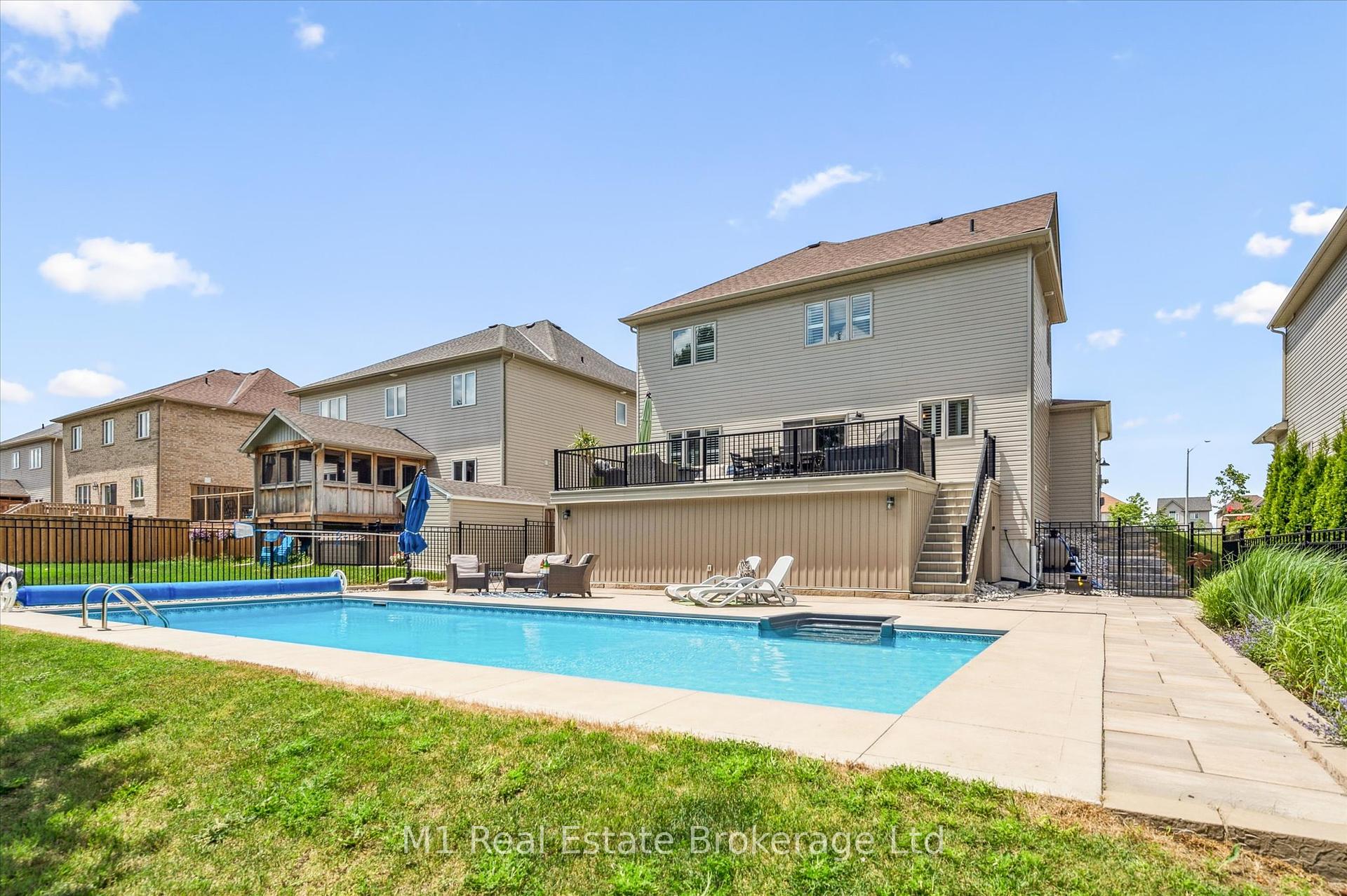 Stunning Family Home with Luxury Upgrades. Welcome to this beautifully appointed home designed for both everyday comfort and elevated entertaining. Greeted by tall ceilings and a carpet-free layout that flows effortlessly throughout the main living spaces. The chefs kitchen has upgraded appliances & is the heart of the home for preparing and sharing meals. The second floor boasts the primary bedroom, with walk-in closet & cabinetry, and 5-piece ensuite. The additional 3 large bedrooms and full bath finish off the second floor nicely. The fully finished basement offers versatile living space with oversized doorways for a bright, open feel ideal for a home theatre, gym, or recreation room. The large heated fifth bedroom, is great for the large families or sleepovers. Enjoy endless summers in your heated saltwater pool, surrounded by a maintenance-free aluminum deck, ornamental iron fence, and professionally landscaped grounds perfect for relaxing or hosting friends and family. The extra-large maintenance-free shed adds additional storage without the upkeep. With the deck, shed, and fence all designed to be maintenance-free, so you can enjoy years of use with no future expense. The oversized double car garage is both insulated and drywalled, providing convenience, comfort, and plenty of room for vehicles and storage. This home seamlessly combines function, style, and low-maintenance living, truly move-in ready. Come see for yourself, the true value of this home.