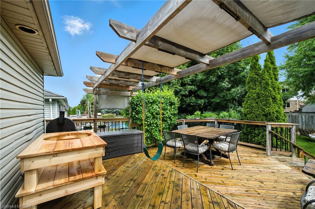 Large deck overlooking the yard. Fully set up for a hot tub, with electrical and pad already in place. There’s also a gas line for your BBQ, making outdoor entertaining a breeze.