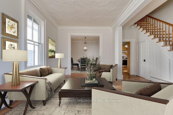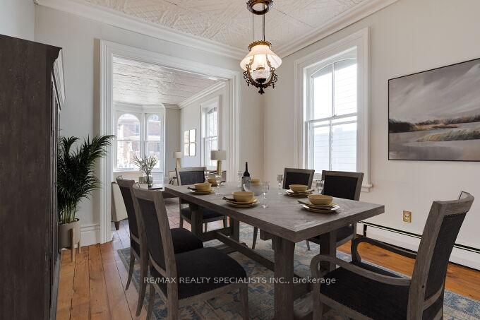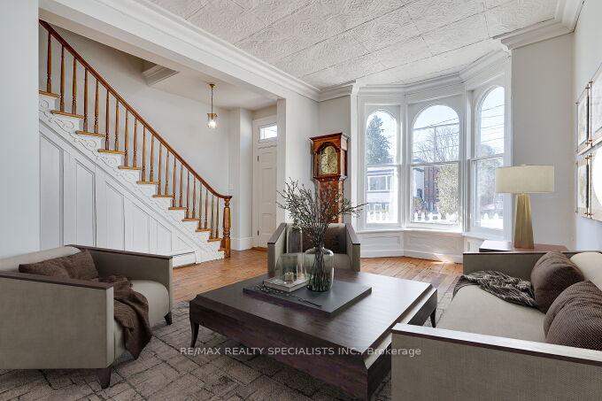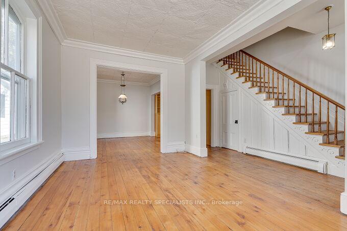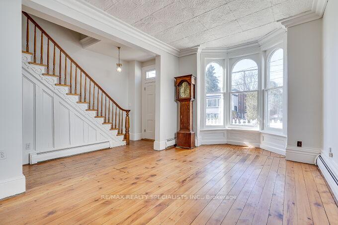 Welcome to 63 Mill Street – a charming century home filled with timeless character and warmth, offering a wonderful opportunity to make it your own with thoughtful modern updates. Nestled in Orangeville’s historic district, this home is just steps from vibrant downtown shops, cozy cafés, and popular restaurants, giving you the perfect blend of small-town charm and everyday convenience. Set on a beautifully landscaped lot, the enchanting gardens create a true gardener’s paradise – an ideal retreat where you can spend hours enjoying peace and tranquillity. Inside, this 3-bedroom home has a convenient side entrance leading into a functional mudroom that flows seamlessly into the kitchen, perfect for busy daily living. The home proudly showcases its historic elegance with 10 ft high ceilings throughout the main floor, along with tin ceilings in both the living and dining rooms. A charming bay window fills the living room with natural light and offers serene views of picturesque Mill Street. A wonderful screened-in porch at the rear of the home leads into the private back yard where your story will begin. Don’t miss your chance to own a beautiful piece of local history and bring your personal vision to life in this truly special home.