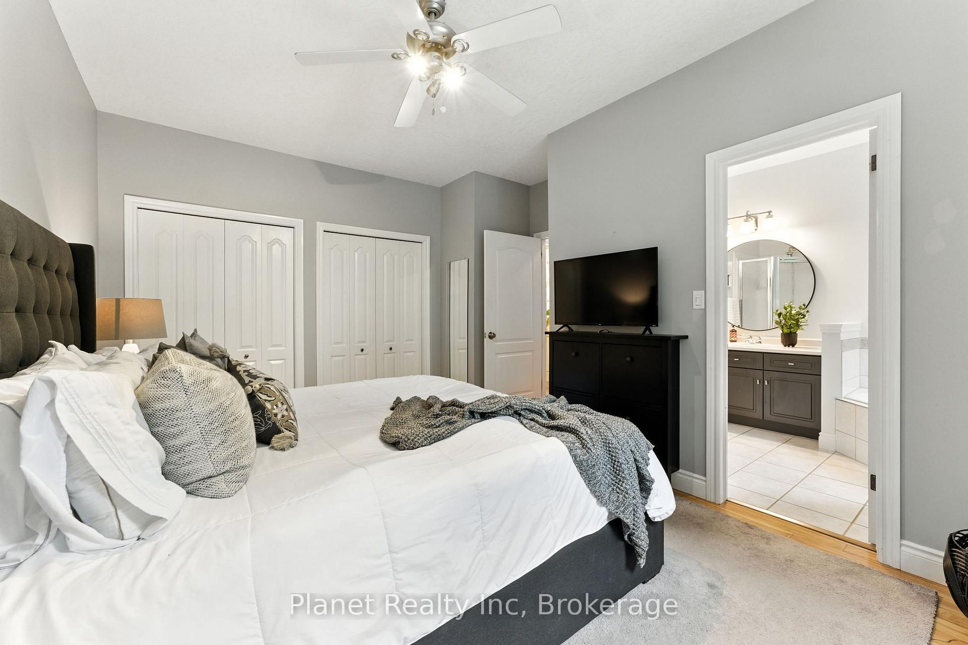 Welcome to beautiful 63 Truesdale, a phenomenal modern bungaloft in one of Guelph’s premier family neighbourhoods. Set upon a lovely, wide lot; there is so much to appreciate about this home from the moment you first arrive. You’re greeted inside by an open foyer with soaring ceilings, inviting you further into a main level that’s adorned with hardwood & ceramic flooring throughout its charming living spaces. A main floor master bedroom offers his & hers closets, alongside a 4 piece ensuite bath with a separate shower, tub & double vanity. Upstairs, your multi-functional loft is a great home office, or living space for kids & company alike. With 2 additional bedrooms upstairs, sharing their own full bathroom, this home offers an abundance of space to host, or use to meet the need for space that comes with a growing family. Downstairs, a newly refinished basement features a bright & welcoming rec room, with another bedroom and full bathroom! Out back, this private rear yard is a serene getaway, with an outstanding deck and hot tub- with just enough grass to give you options, without tying up your Sunday afternoons. If there are kids in the picture, then you already know this home sits among the best school districts in the city. And with tons of high-value updates this year, including new windows, window coverings, range & microwave; plus a host of other modern mechanicals, this turnkey home is the perfect spot to drop your furniture and get straight to living.