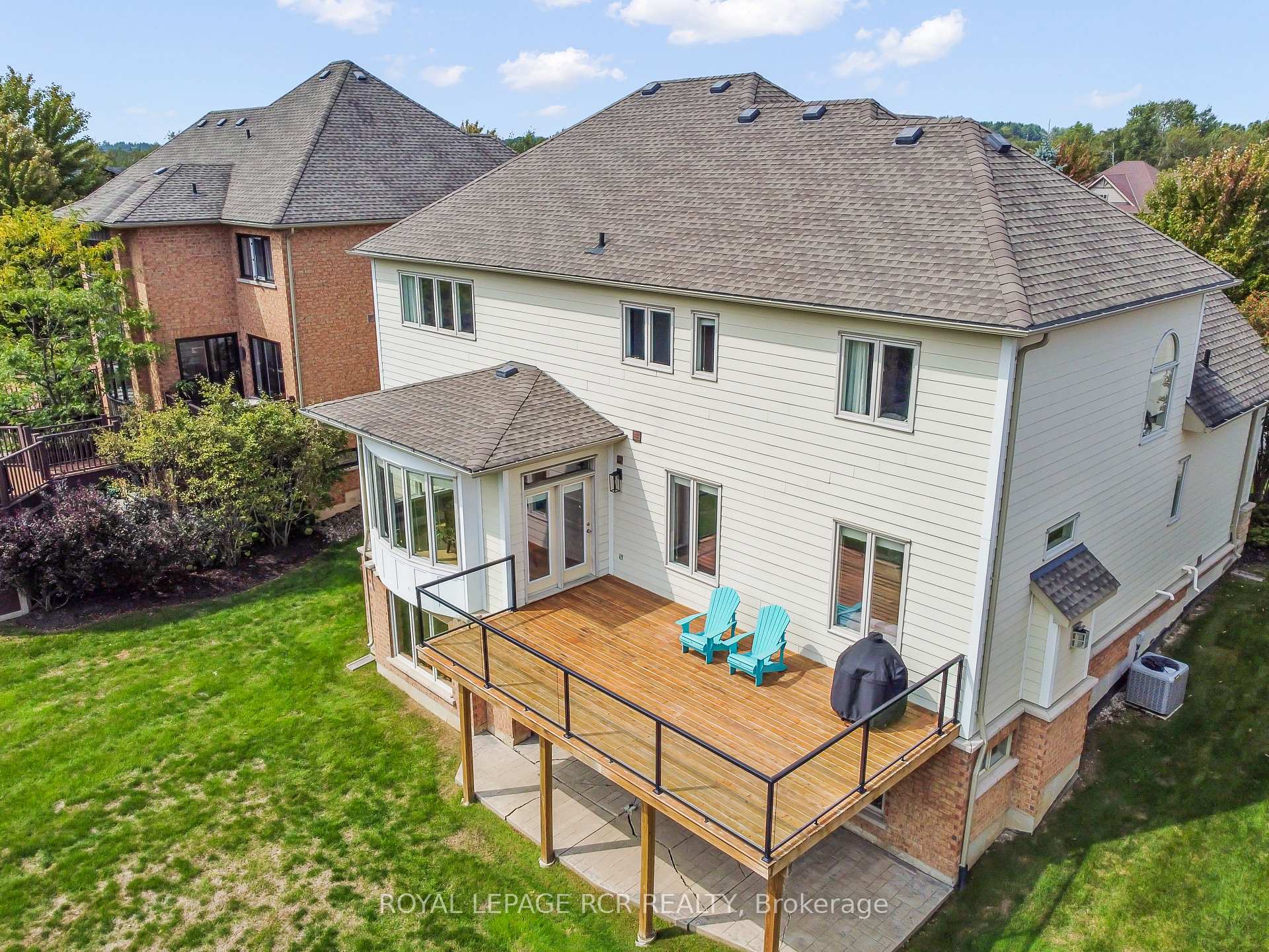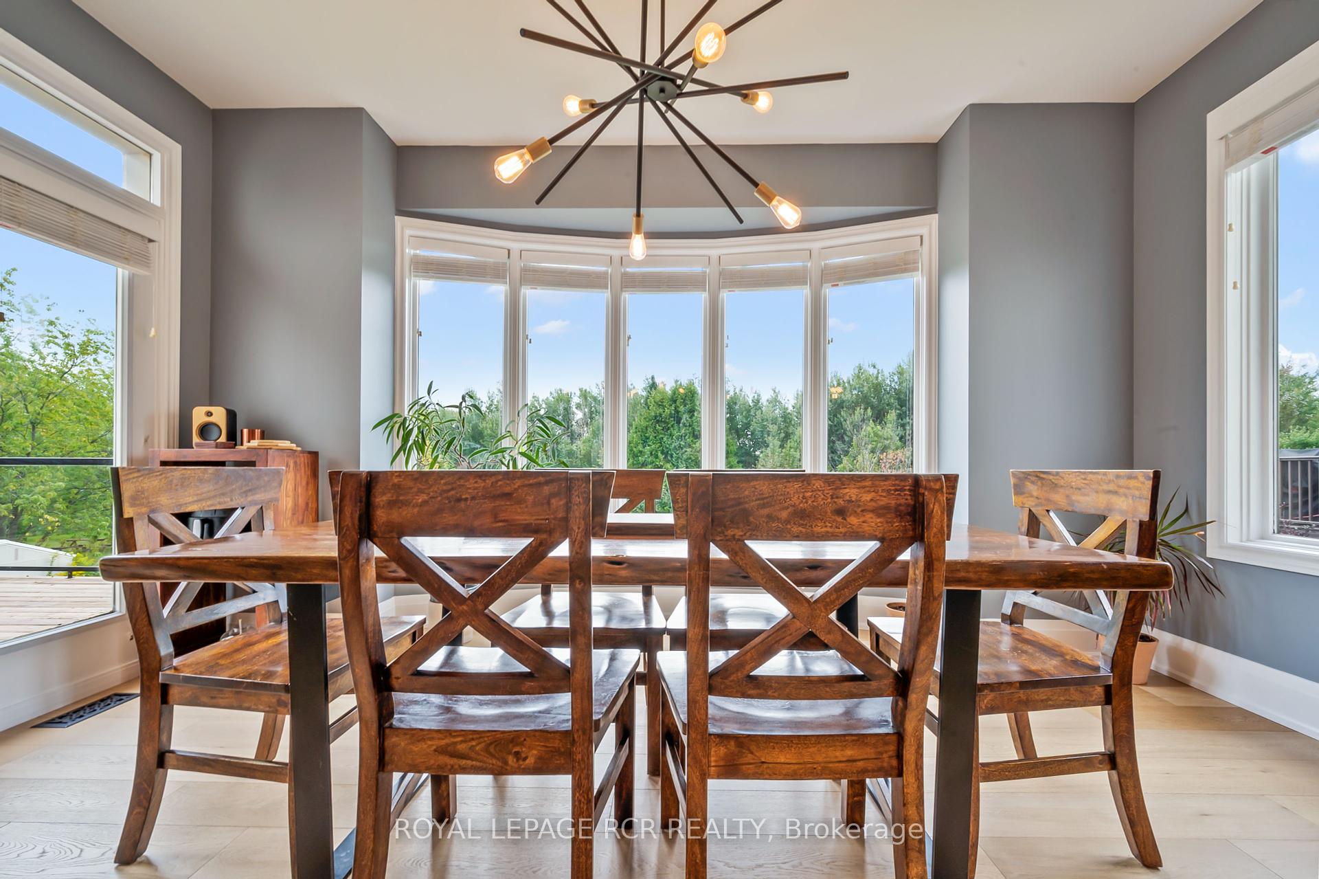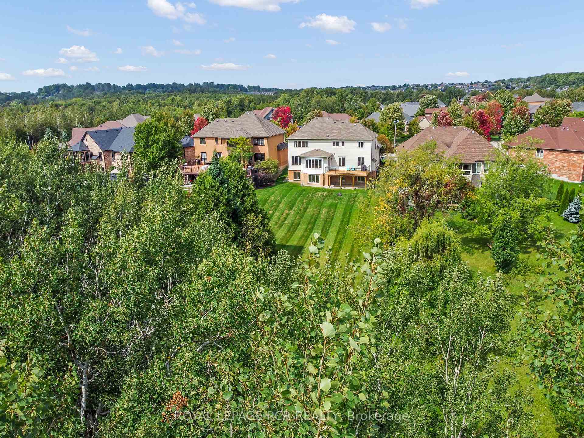 Tucked away within the quiet cul-de-sac of Credit Springs Estates, this Berkshire-built residence offers refined living on a mature lot backing onto conservation with a sun-drenched south-facing backyard. Inside the home, elevated design offers a vaulted main-floor office creating the perfect work-from-home retreat. At the same time, the living room, centred around a gas fireplace, flows seamlessly into the formal dining room overlooking the grounds. The beautifully updated eat-in kitchen is both stylish and functional, with a large island, stainless steel appliances, and a walkout to the raised deck accented with sleek glass railings before opening to the family room. Upstairs, the spacious primary suite overlooking the backyard is bathed in natural light and features a walk-in closet and a spectacularly updated five-piece ensuite with a freestanding tub, glass shower and double vanity. The second bedroom enjoys its own four-piece ensuite and walk-in closet, while bedrooms three and four share a convenient Jack & Jill bath with double vanity and shower. A large unspoiled walkout basement invites endless possibilities for additional living space, while the main floor is finished with a mud/laundry room with garage access, ensuring everyday convenience. Just minutes to shopping, restaurants, and schools in Orangevilles west end, with a playground right on the street. All this, less than an hour from Toronto.