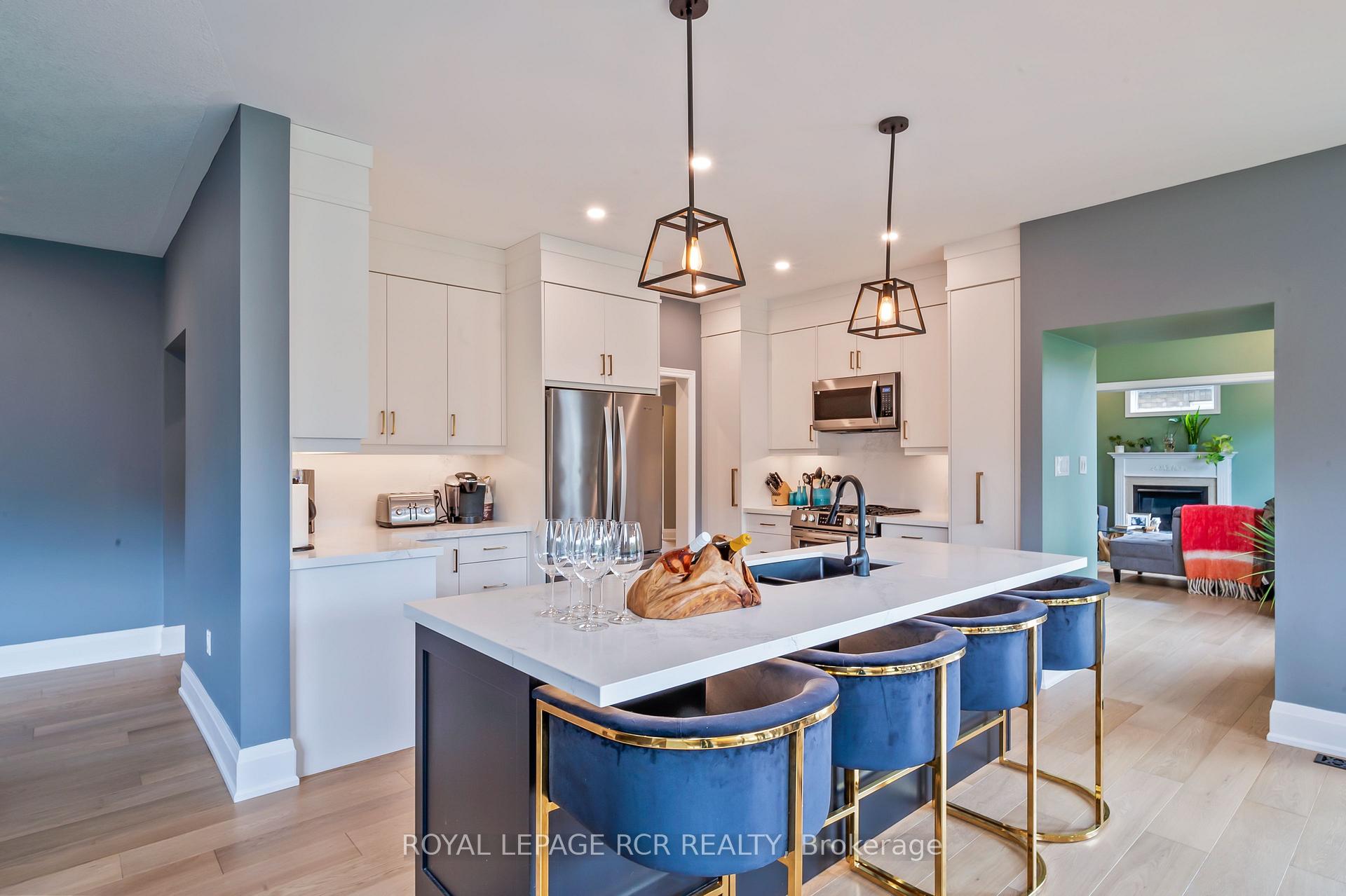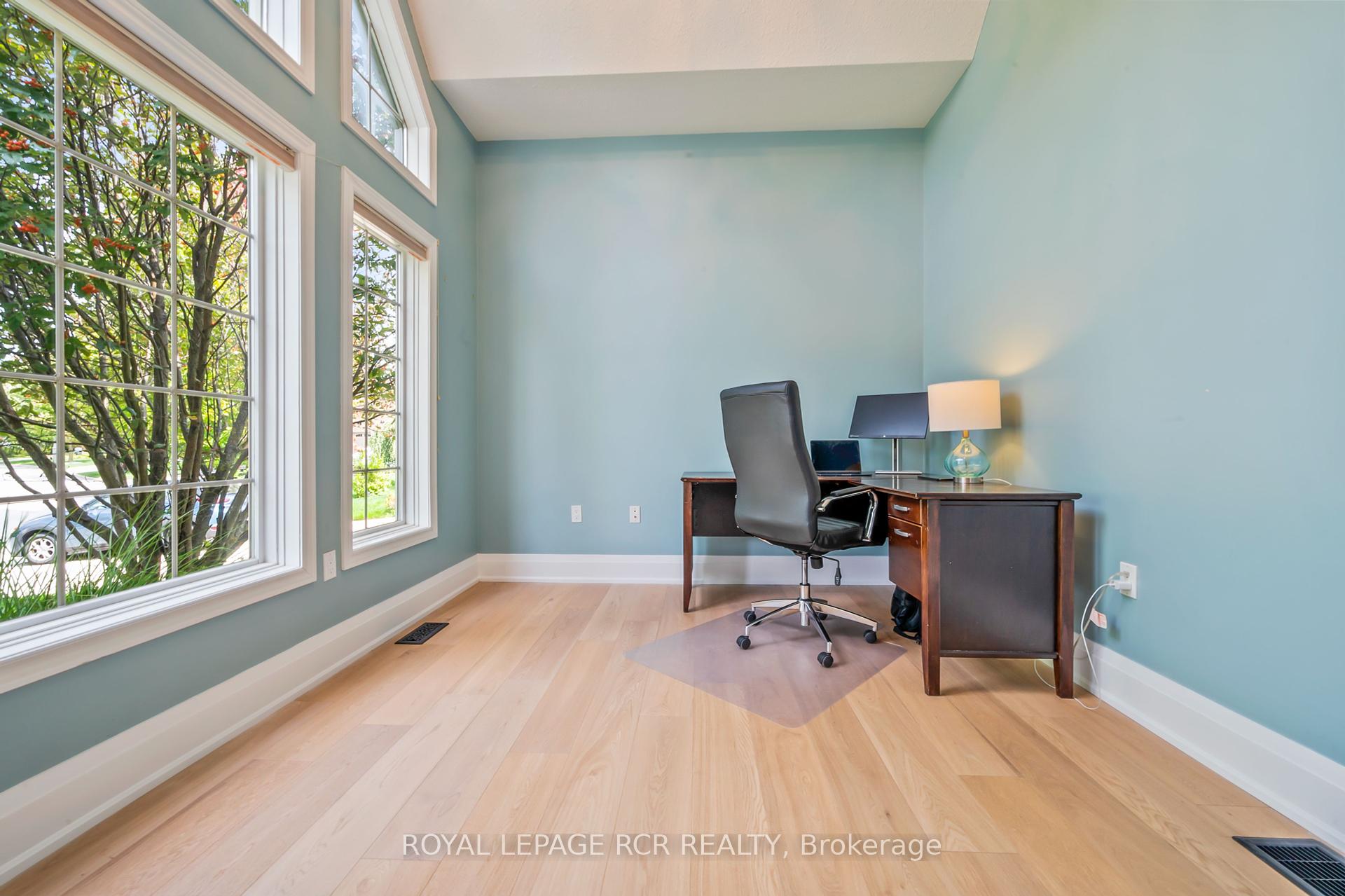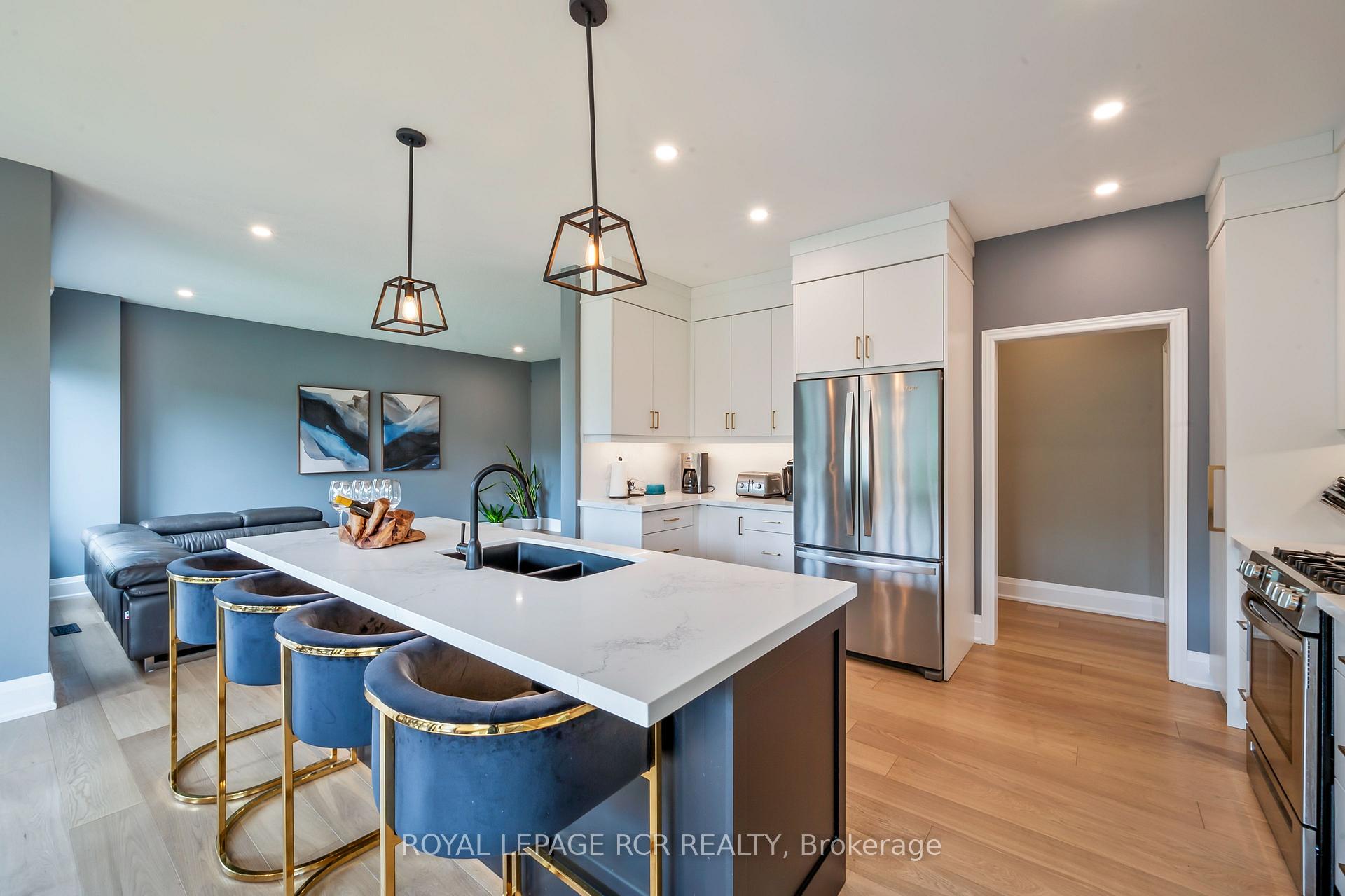 Tucked away within the quiet cul-de-sac of Credit Springs Estates, this Berkshire-built residence offers refined living on a mature lot backing onto conservation with a sun-drenched south-facing backyard. Inside the home, elevated design offers a vaulted main-floor office creating the perfect work-from-home retreat. At the same time, the living room, centred around a gas fireplace, flows seamlessly into the formal dining room overlooking the grounds. The beautifully updated eat-in kitchen is both stylish and functional, with a large island, stainless steel appliances, and a walkout to the raised deck accented with sleek glass railings before opening to the family room. Upstairs, the spacious primary suite overlooking the backyard is bathed in natural light and features a walk-in closet and a spectacularly updated five-piece ensuite with a freestanding tub, glass shower and double vanity. The second bedroom enjoys its own four-piece ensuite and walk-in closet, while bedrooms three and four share a convenient Jack & Jill bath with double vanity and shower. A large unspoiled walkout basement invites endless possibilities for additional living space, while the main floor is finished with a mud/laundry room with garage access, ensuring everyday convenience. Just minutes to shopping, restaurants, and schools in Orangevilles west end, with a playground right on the street. All this, less than an hour from Toronto.