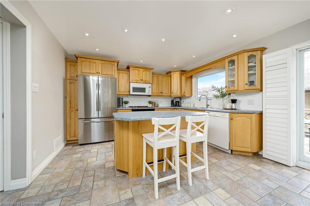 Located in the heart of Miltons highly desired Timberlea neighbourhood, this updated semi-detached home sits on a 120ft deep lot and offers everything your young family could want. Neighbouring onto Sam Sherratt Elementary School (JK-Grade 8), your children will never need to cross a street to get to school before they enter high school. Additionally, located just minutes away from multiple parks, playgrounds, splashpads, sports fields, and the beautiful Timberlea walking trail system, you will never be short on options to keep your family entertained. The homes terrific location isnt the end of the story though – decorated in trendy, modern decor, this home is move-in ready! The main level features a modern open concept kitchen with stainless steel appliances, backsplash, & a chefs island w/ breakfast bar, as well as, a large living room with woodburning fireplace. Heading upstairs, there is an updated 4-pc bath and 3 generous sized bedrooms, including a spacious primary bedroom with lots of closet space. The fully finished basement offers a cozy family room, a rec room that works perfectly as a kids playroom, a private laundry room, and lots of storage space. Stepping outside to the fully fenced backyard, you will enjoy a large walkout deck for summer entertaining, a custom storage shed, and ample greenspace for kids and pets to run around and play. This lovely home is completed with a single car garage and very rare 3 car driveway, allowing for comfortable 4-car parking at all times. The terrific central location will allow you to enjoy quick access to many of Miltons major amenities, including the Milton Go-Station, Milton Hospital, Milton Sports Center, Highway 401, & a variety of shopping plazas! BONUS INFO: New Roof (2023), New A/C (2019), New Fridge (2021), & New Washer/Dryer (2020). CLICK THE MULTIMEDIA LINK TO WATCH THE FULL PROPERTY VIDEO AND ALL THAT THIS WONDERFUL PROPERTY HAS TO OFFER!