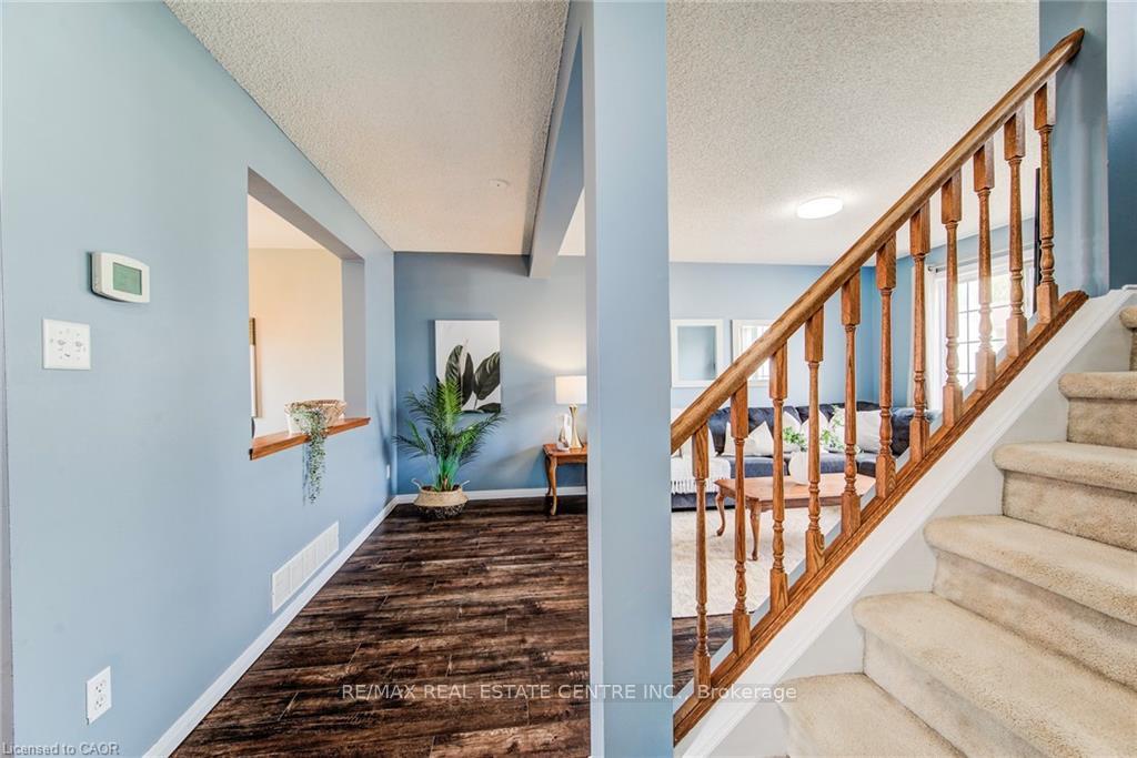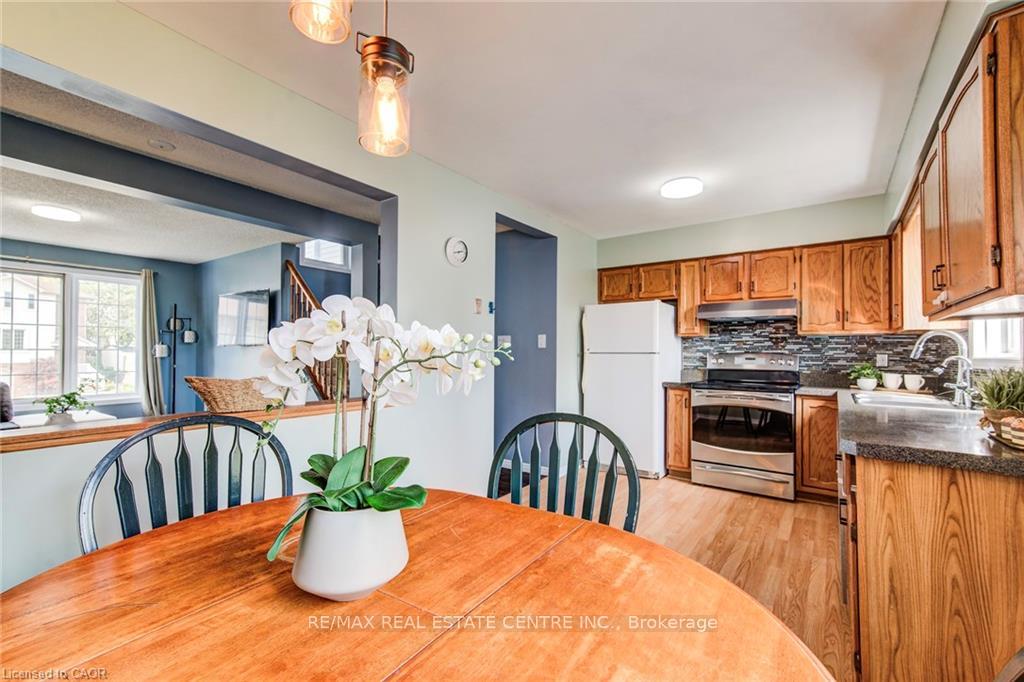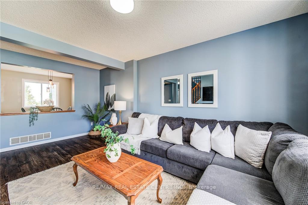 Discover this charming 2-storey freehold townhouse nestled in one of Waterloos most sought-after neighborhoods an ideal opportunity for first-time home buyers or savvy investors! Step inside to an inviting open-concept main floor filled with natural light, highlighted by a beautifully renovated kitchen complete with granite countertops, ample cupboard space, a stylish tile backsplash, dishwasher (2021), and brand new rangehood (2025). The spacious living area offers the perfect spot to relax or entertain. Upstairs, youll find two generously sized, carpeted bedrooms and a well-appointed 4-piece bathroom offering comfort and functionality. The lower level adds even more value, featuring a 2-piece bath, laundry area, utility room, and a storage/family room with direct access to the garage. Step outside to a fully fenced, extra-deep backyard a perfect play space for kids or room to garden and entertain. This property has been thoughtfully updated to enhance its appeal and move-in readiness. The entire home was recently painted in modern, neutral tones that create a clean and inviting atmosphere throughout. In addition, all light fixtures have been upgraded, bringing a modern touch and enhanced lighting to every room, complemented by fresh new paint throughout the house. With a single-car garage and a driveway that easily fits two additional vehicles, parking will never be an issue. This home is just moments from the Boardwalk Shopping Centre, top-rated schools, beautiful parks, and scenic trails. This move-in-ready gem is nestled in a welcoming communityreach out for more details!