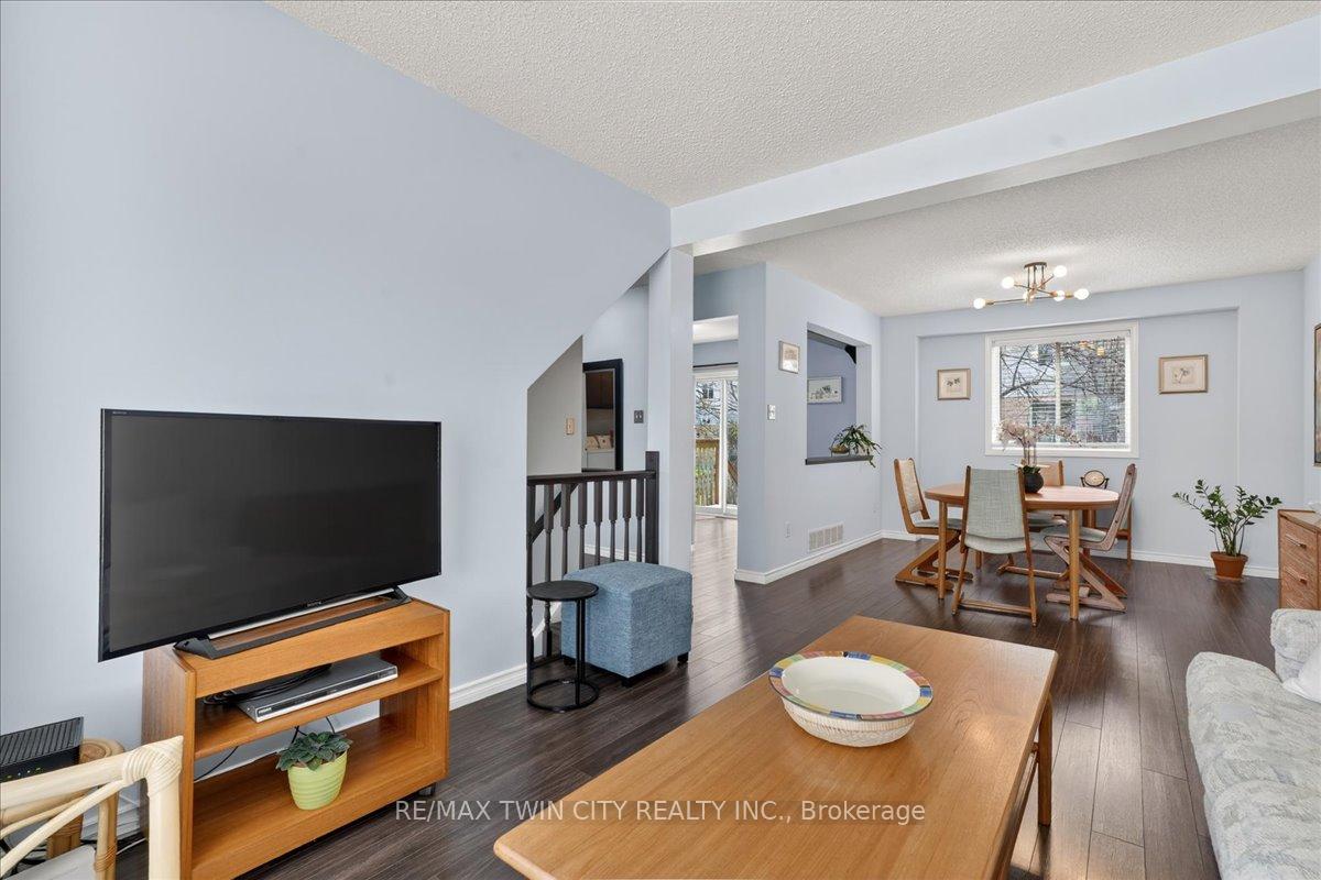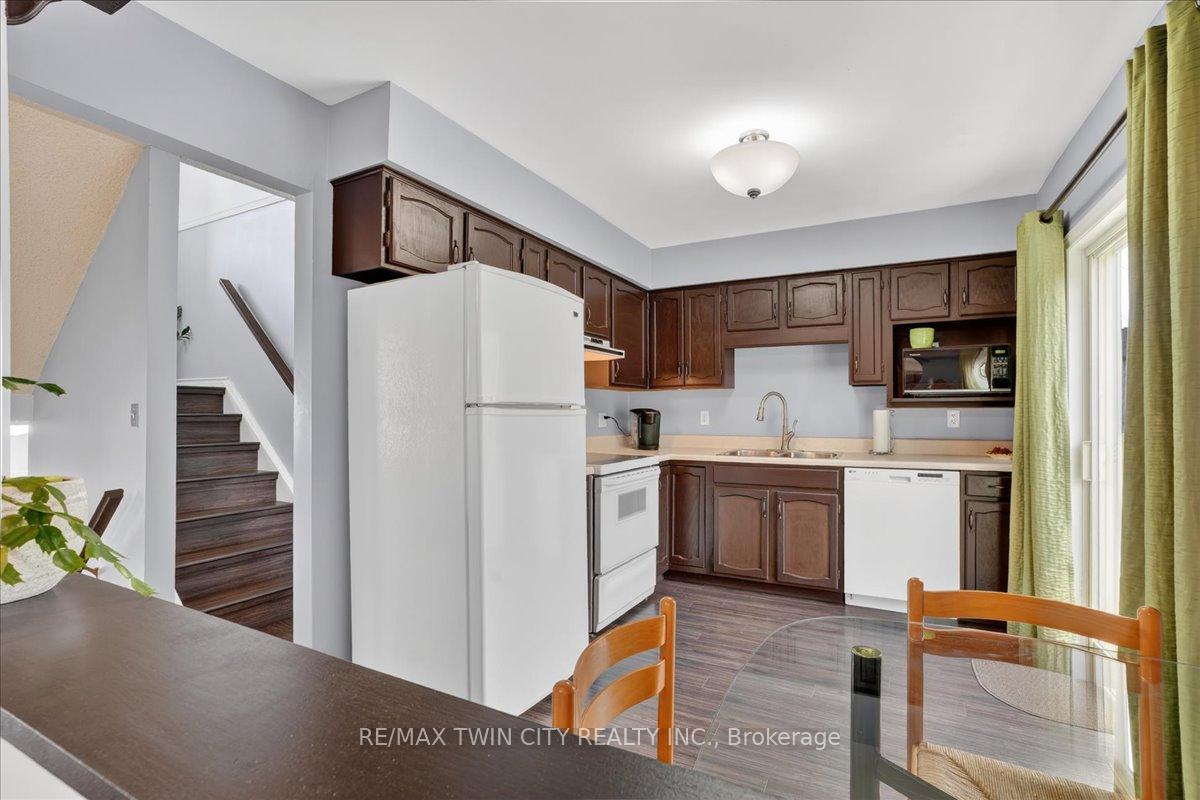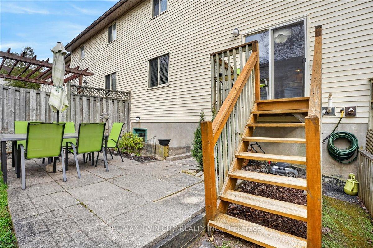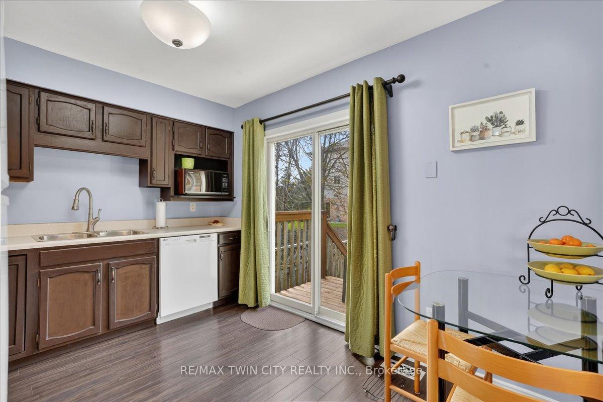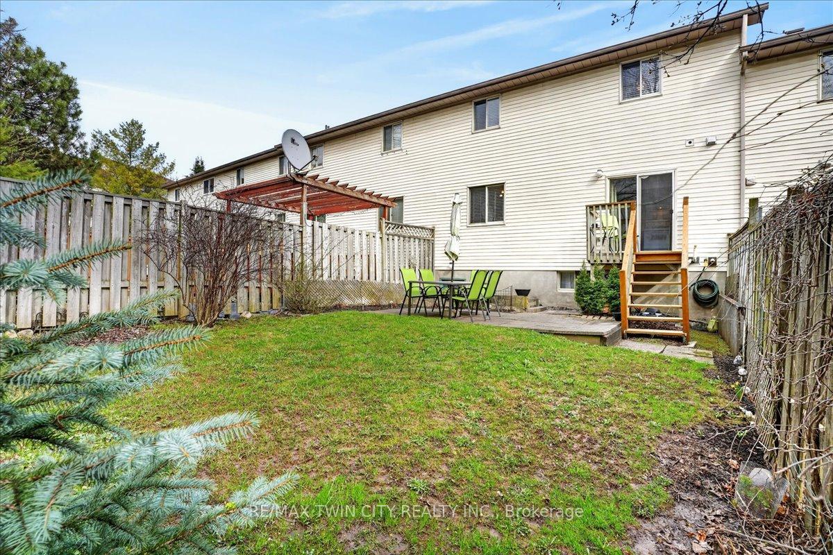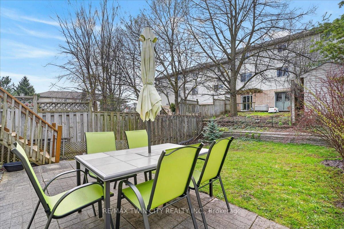 FREEHOLD TOWNHOME located in the highly sought after neighbourhood in Waterloo West within walking distance to a vibrant Boardwalk shopping, medical center, restaurants and transit, close to hi-tech employment centres. Immaculate and beautifully maintained 3 bedroom & 2 bathroom unit featuring bright & airy open concept Living/Dining room flooded with sunlight, spacious eat-in Kitchen with sliding doors to upper deck, patio & fenced yard. Two piece Powder room & Laundry room with built-in storage completes the main floor. The second floor offers 3 spacious bedrooms & updated 4 piece Bathroom. The lower level offers finished Recroom/Office and inside access to the garage and walk-up to backyard. Updates include hi-efficiency furnace & AC (2018), water heater owned (2017), 2 updated bathrooms & flooring. Carpet-free throughout and ready to move-in and enjoy, perfect for a growing family or downsizers. Steps away from schools, parks, bus routes and short drive to both universities, Costco, YMCA and library. Short drive to Highway 7/8.
