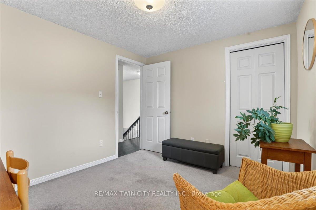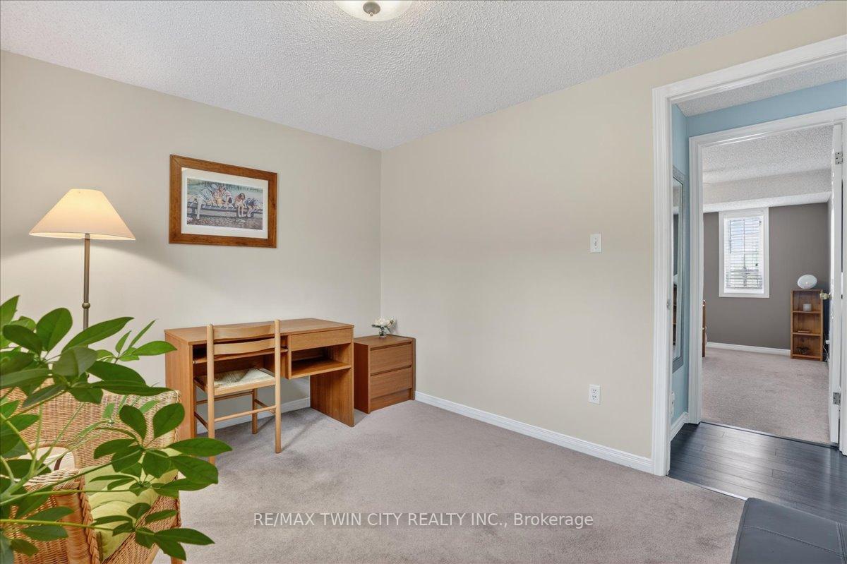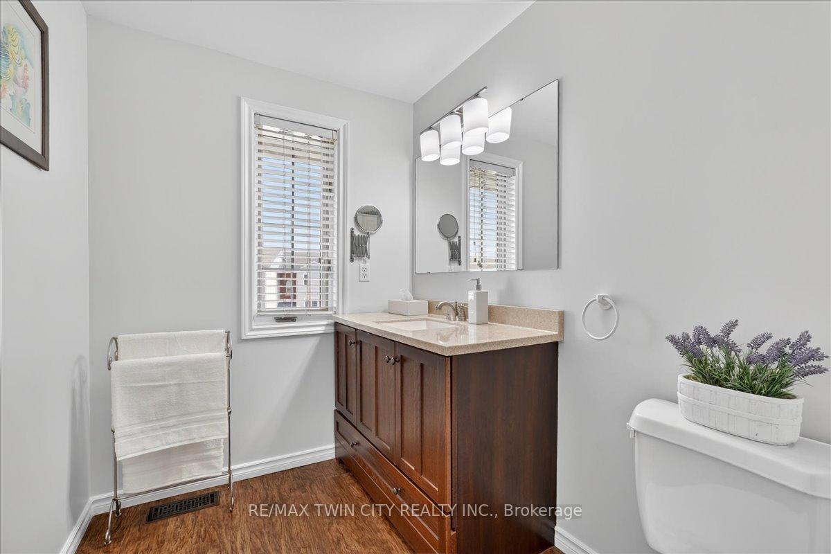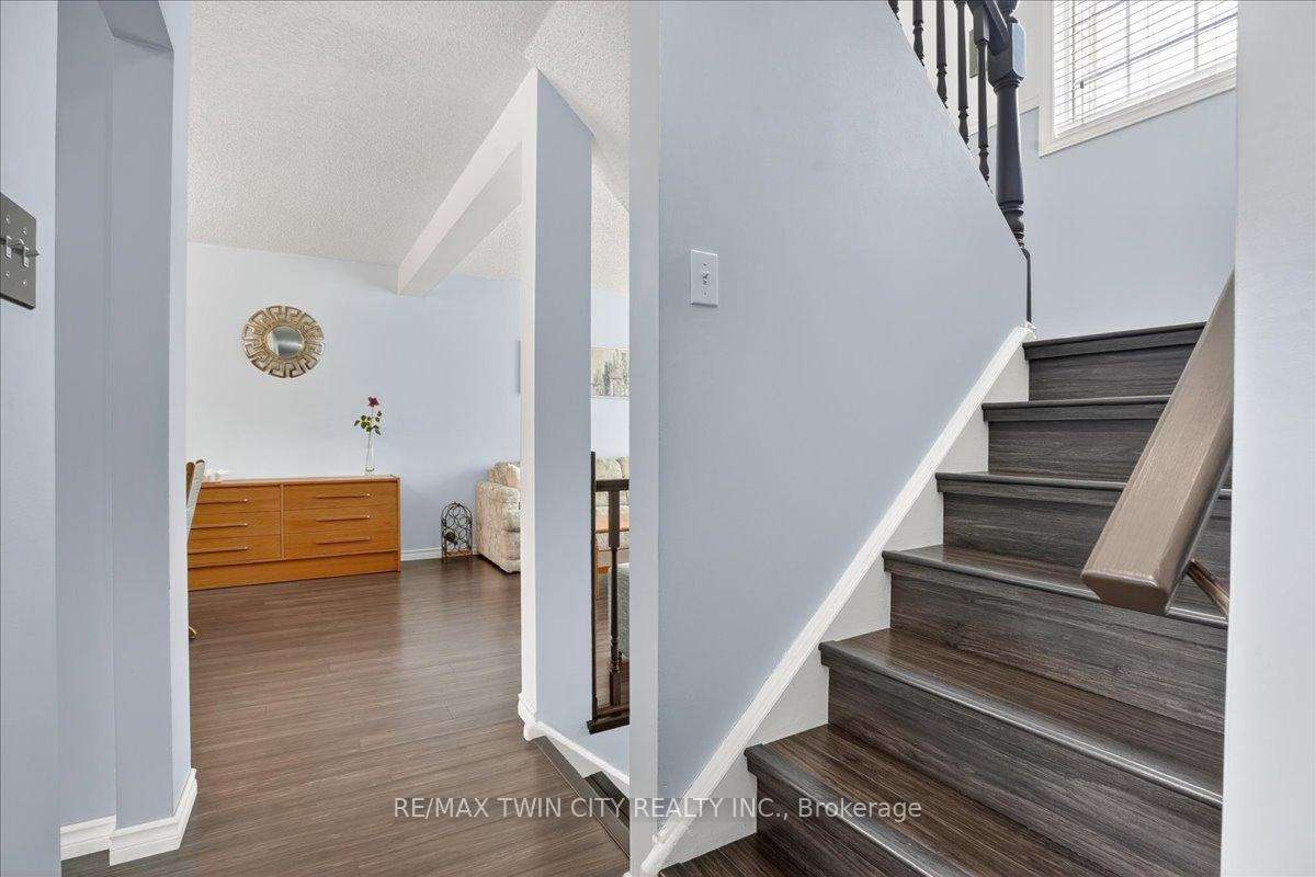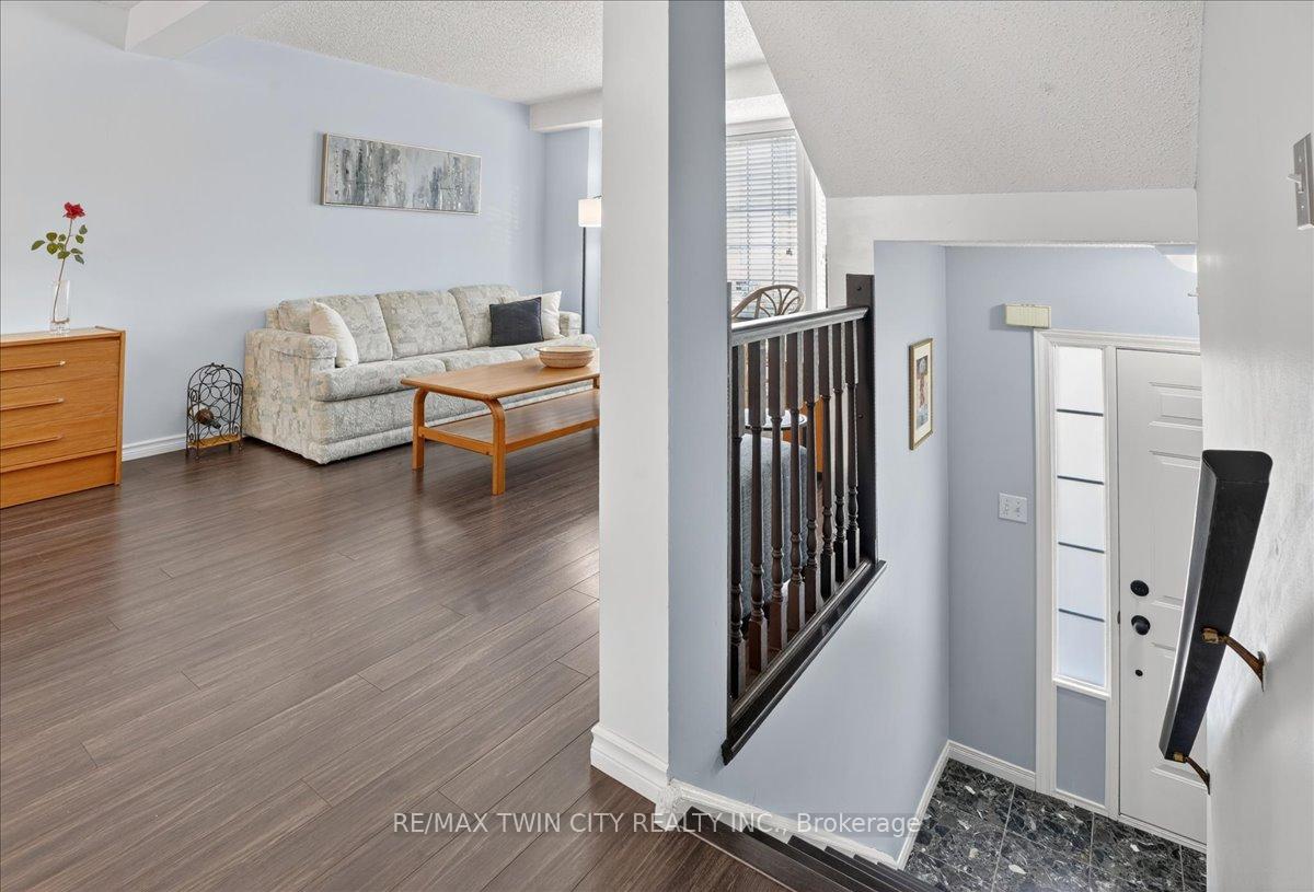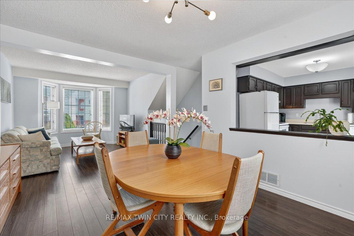 FREEHOLD TOWNHOME located in the highly sought after neighbourhood in Waterloo West within walking distance to a vibrant Boardwalk shopping, medical center, restaurants and transit, close to hi-tech employment centres. Immaculate and beautifully maintained 3 bedroom & 2 bathroom unit featuring bright & airy open concept Living/Dining room flooded with sunlight, spacious eat-in Kitchen with sliding doors to upper deck, patio & fenced yard. Two piece Powder room & Laundry room with built-in storage completes the main floor. The second floor offers 3 spacious bedrooms & updated 4 piece Bathroom. The lower level offers finished Recroom/Office and inside access to the garage and walk-up to backyard. Updates include hi-efficiency furnace & AC (2018), water heater owned (2017), 2 updated bathrooms & flooring. Carpet-free throughout and ready to move-in and enjoy, perfect for a growing family or downsizers. Steps away from schools, parks, bus routes and short drive to both universities, Costco, YMCA and library. Short drive to Highway 7/8.