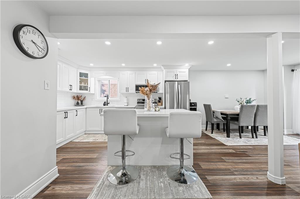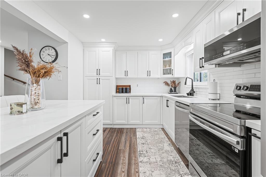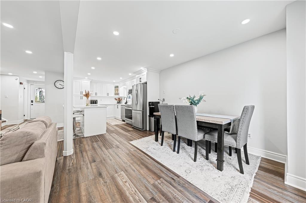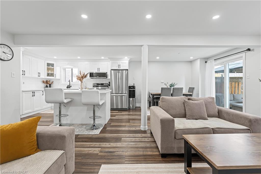 Welcome to 64 Glenbrook Crescent, located in the highly desirable neighbourhood of North Galt. This stunning 2-storey detach features over 1900 SF of total finished living space with a finished basement and loads of intentional upgrades. The open concept main level boasts a fully renovated kitchen, dining and living room- SS appliances, Quartz counters, waterproof vinyl flooring, all new paint, tile backsplash and potlights throughout. The upper level features three generously sized bedrooms and a newer four piece bathroom- perfect for your family’s comfort. The lower level is complete with a finished recreational room, laundry room and three piece bathroom. The basement also features a fourth bedroom with large egress window and side door entry offering the option for additional living space. Glass sliding doors from the dining room lead you to the fully fenced rear yard with all new fencing and entry gate, a custom shed with electricity and large windows, an anchored gazebo for dining and lounging- all surrounded by beautiful lush gardens. The exterior of this home is complete with a fully finished and insulated single car