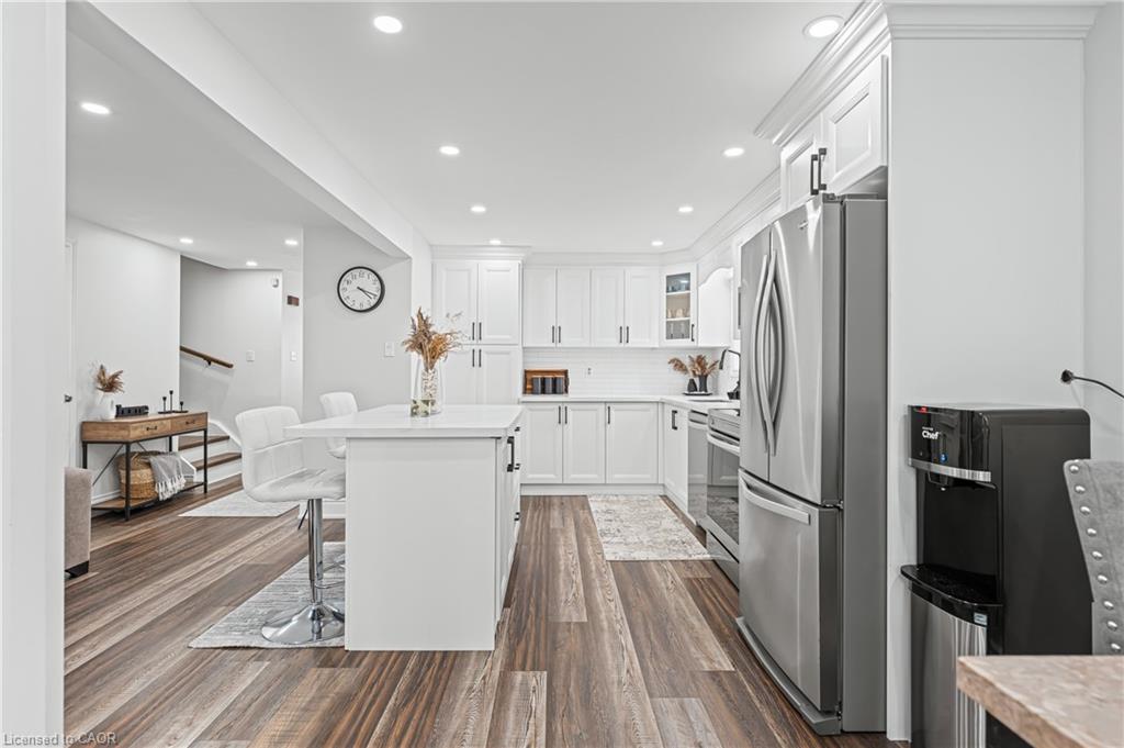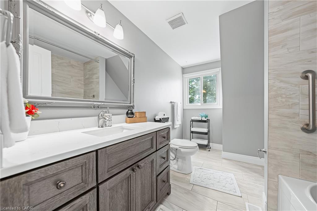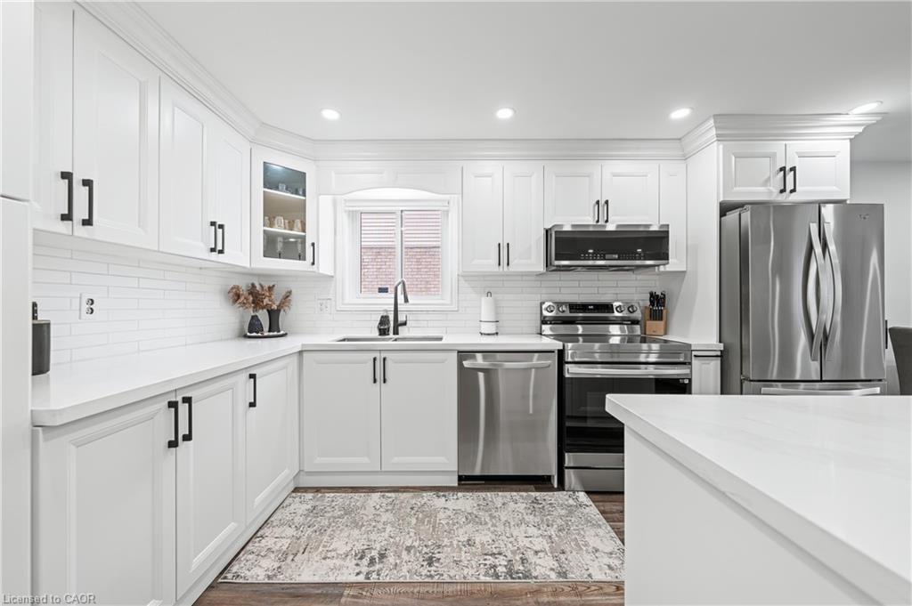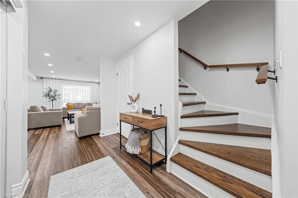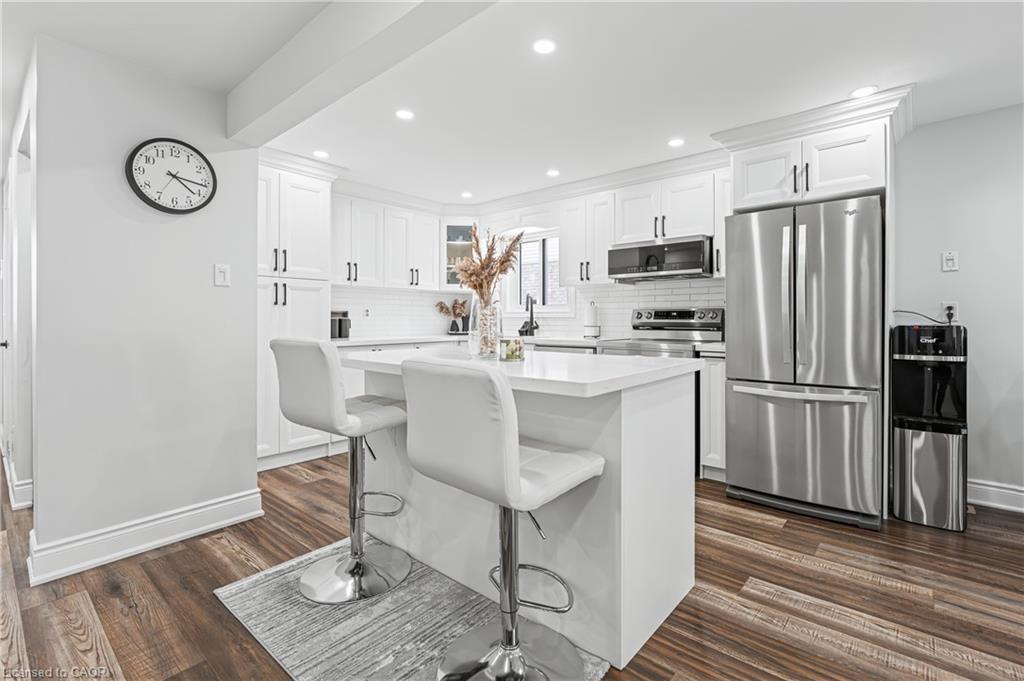 Welcome to 64 Glenbrook Crescent, located in the highly desirable neighbourhood of North Galt. This stunning 2-storey detach features over 1900 SF of total finished living space with a finished basement and loads of intentional upgrades. The open concept main level boasts a fully renovated kitchen, dining and living room- SS appliances, Quartz counters, waterproof vinyl flooring, all new paint, tile backsplash and potlights throughout. The upper level features three generously sized bedrooms and a newer four piece bathroom- perfect for your family’s comfort. The lower level is complete with a finished recreational room, laundry room and three piece bathroom. The basement also features a fourth bedroom with large egress window and side door entry offering the option for additional living space. Glass sliding doors from the dining room lead you to the fully fenced rear yard with all new fencing and entry gate, a custom shed with electricity and large windows, an anchored gazebo for dining and lounging- all surrounded by beautiful lush gardens. The exterior of this home is complete with a fully finished and insulated single car