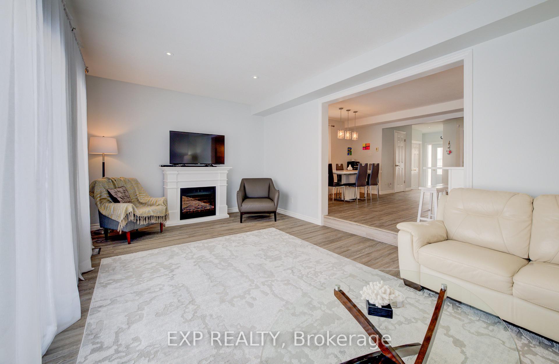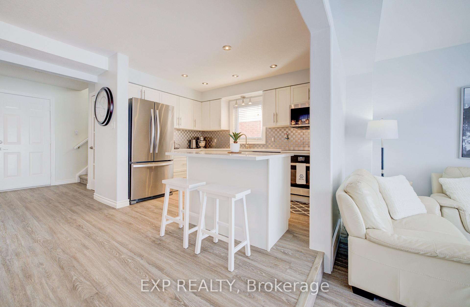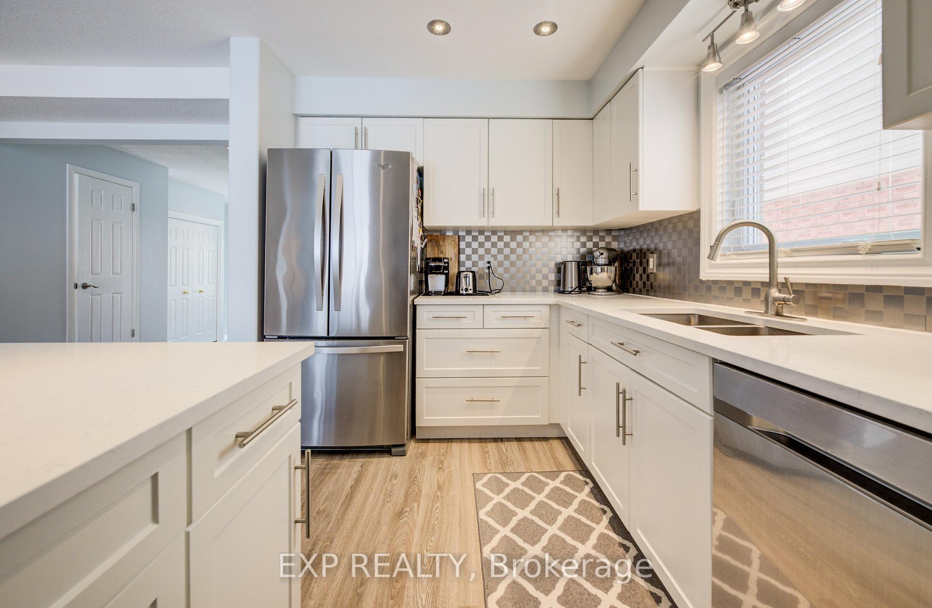 Welcome to 64 Hidden Creek Drive, Kitchener, a beautifully upgraded two-storey brick home located in one of the city’s most highly sought-after neighbourhoods. Perfectly situated close to top-rated schools, scenic walking trails, parks, public transit, and shopping and dining at The Boardwalk, this prime location offers the ideal blend of convenience and community. This stunning 3 bedroom, 3 bathroom home features a double car garage and a private double-wide driveway, providing ample parking for family and guests. Inside, you’ll find a bright open concept main floor designed for modern living and entertaining. The dining area seamlessly flows into the kitchen and living room, all enhanced by engineered hardwood flooring and an abundance of natural light from large windows. The contemporary kitchen is a true showpiece, complete with stainless steel appliances, quartz countertops, a centre island, stylish backsplash, and modern hardware. Pot lights throughout the kitchen and living room add warmth and sophistication. Sliding glass doors off the living room lead to a fully fenced backyard, perfect for relaxing, entertaining, or enjoying summer evenings. A convenient 2 piece bathroom completes the main level. Upstairs, plush carpeting adds comfort to three spacious bedrooms, each with large windows. The primary bedroom features a walk-in closet, offering both functionality and style. The finished basement extends your living space with a generous recreation room, dedicated office area, and a 3 piece bathroom, ideal for working from home, hosting guests, or creating a private retreat. With modern upgrades throughout, exceptional living space, and an unbeatable location, this home is move in ready.