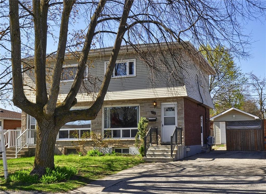 Freehold, semi detached home with oversized 13×28′ insulated shop/garage with hydro, centrally located in East Galt/Alison Park area. Easy access to Franklin and Dundas and amenities, parks, downtown Galt, hospital and schools close by. Separate side entrance makes it possible for in-law / mortgage helper downstairs, (basement area includes a bonus room currently used for storage). Lots of parking, double driveway. Fully fenced private back yard. Looking for a property with a shop? Look no further 🙂 Open floorplan and cozy family room below. Good sized bedrooms and bath above. Spacious eat in kitchen. Opportunity for 2nd bathroom, (drain is there). HVAC system recently updated to include a Carrier 40MHH high wall ductless heating/cooling system, updated, efficient, supplemental baseboard heaters and supplemental gas fireplace. Updated top to bottom in 2011/2012 including permitted garage, built to code. Owned water softener and Reverse Osmosis water treatment system with new filters included. Appliances included, closing flexible,