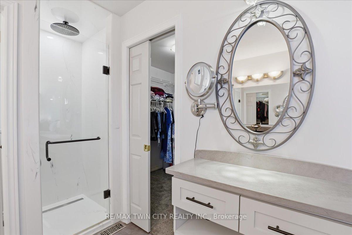 Immaculate 3 bedroom custom home with finished WALK-OUT BASEMENT in friendly, desirable Clair Hills neighbourhood. This lovely one-owner home has been meticulously maintained. Check out all these wonderful updates: kitchen, bathrooms, basement, hardwood flooring, furnace, air conditioner, roof, interlock driveway, garage doors, composite deck, gorgeous landscaping, attic insulation, and even upgraded electrical panel–it’s all been done for you! Fabulous entry with soaring ceiling in the foyer. Separate formal dining room – perfect for all those special occasions. Bright family room with cozy gas fireplace and a great view of the yard! Updated modern kitchen with custom cabinets, stainless appliances, gas stove, quartz countertops, reverse-osmosis water system, and a walk-in pantry too! Sunny dinette with walk-out to deck. Upstairs has 3 spacious bedrooms plus an office nook. Primary bedroom features vaulted ceilings and palladian window. Huge primary ensuite with separate toilet room, glass shower, jetted tub, and 2 vanities! Large walk-in closet with built-in storage. The other 2 bedrooms are spacious with great closets as well. Finished walk-out basement with large bright windows! Spacious rec room with modern fireplace, office area, large storage room, and 3 pc bathroom with bonus sauna! Great in-law potential too! Convenient main floor laundry/mudroom. And don’t forget about this yard! Large two-tiered composite deck with gas line for barbeque overlooking gorgeous landscaped perennial gardens! Relax in the sun or the shade–upper deck has awning and lower deck is sheltered! Beautiful curb appeal! Double interlock driveway, paths, and porch. Low maintenance front landscaping with shrubs and decorative stone! Full extended garage. Location! Location! Close to everything-great schools, universities, Stork Family YMCA, Costco, kilometres of walking and biking trails, and all the amenities at the Boardwalk. This home has it all–just move in!