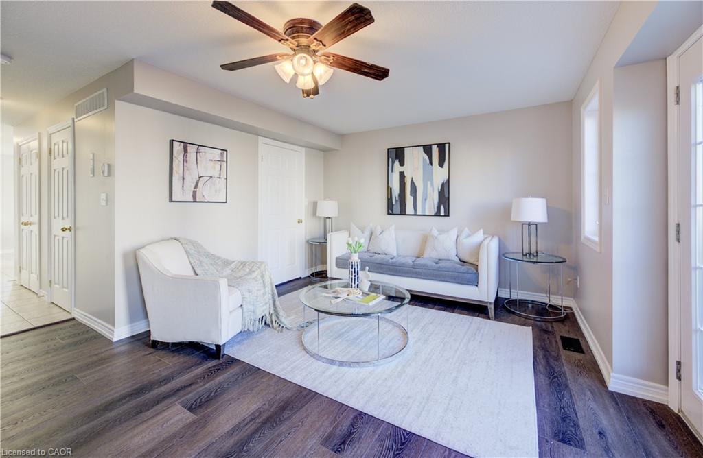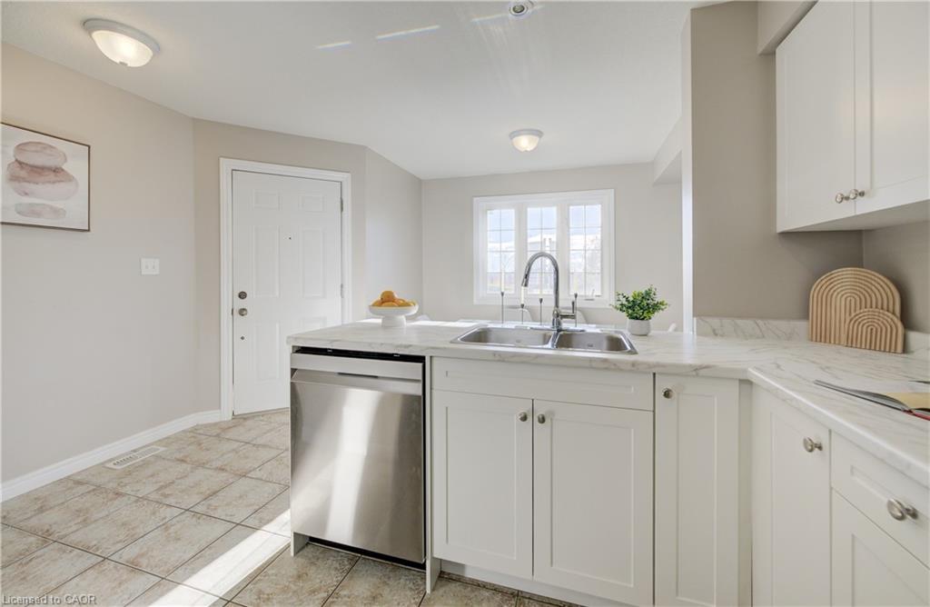 Beautifully Renovated 3-Bedroom Townhome Condo Steps from Guelph Lake! Nestled beside the breathtaking Guelph Lake Conservation Area, this 3-bedroom, 2-bathroom townhome condo offers the perfect balance of nature and convenience. Enjoy trails, a beach, swimming, and fishing just moments from your doorstep—all while living in a vibrant yet peaceful community. Inside, the home has been extensively updated for modern comfort. The kitchen boasts brand-new stainless steel appliances (stove, fridge, washer, dryer, range hood/microwave), complemented by fresh new cupboards. The main floor features a beautifully updated living room laminate floor, while all three bedrooms have been upgraded with new carpeting (August 2025) for a warm and inviting feel. Major updates provide years of peace of mind, including a stackable washer/dryer (2024), owned hot water tank (2024), and a water softener (2023). With shopping, excellent restaurants, and amenities just minutes away, this home combines natural beauty with everyday convenience. A truly move-in-ready opportunity!