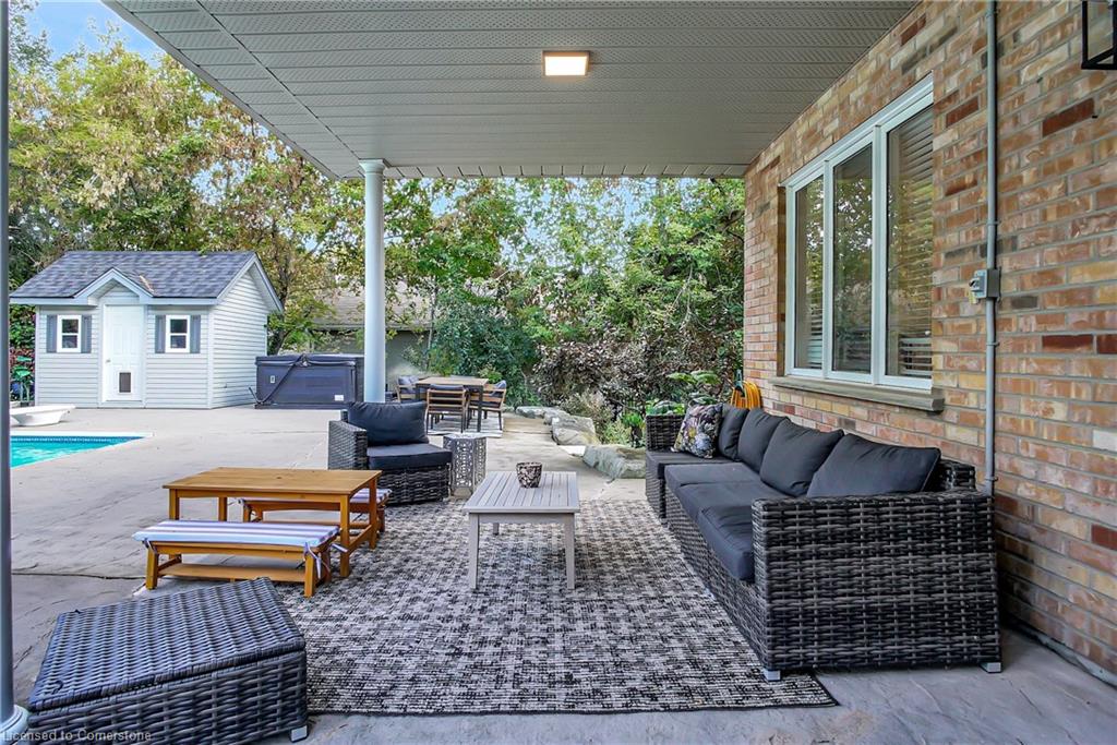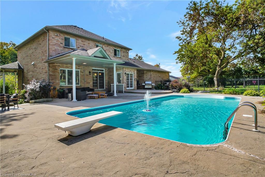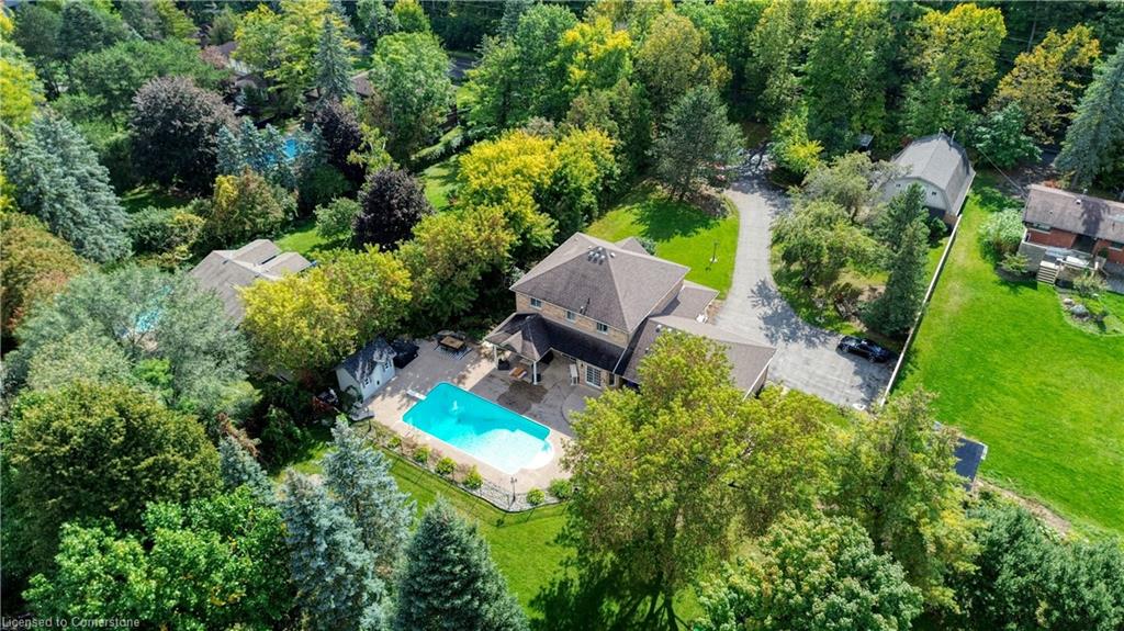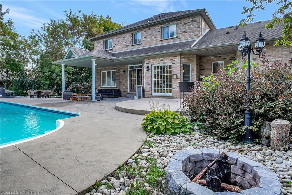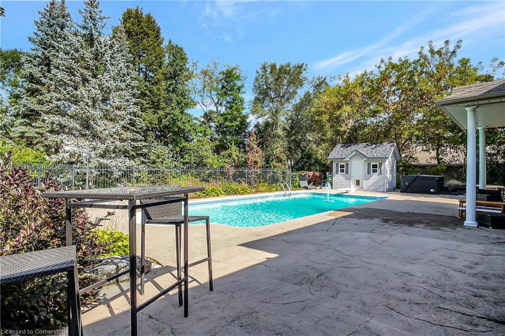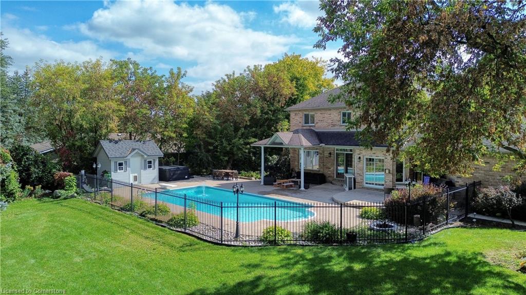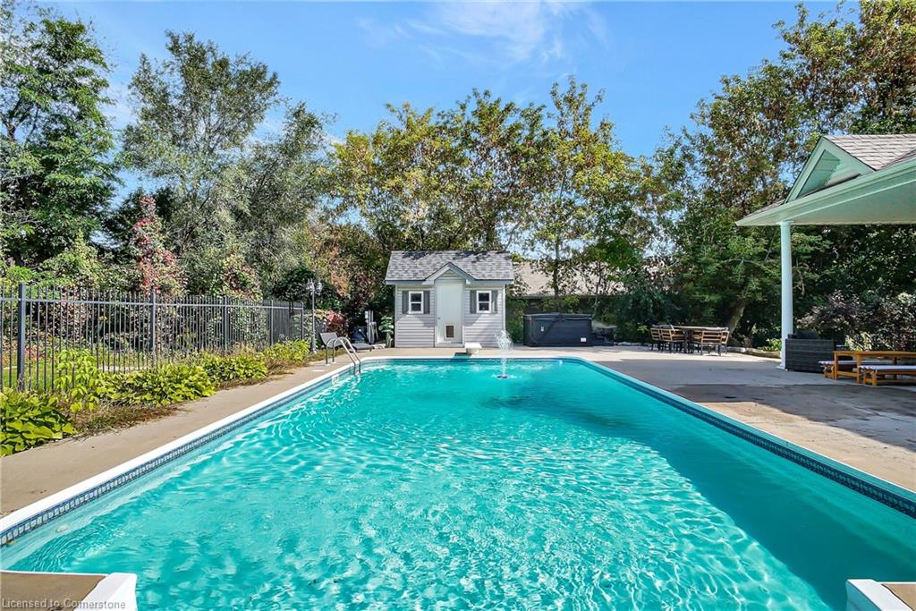 NESTLED BENEATH A LUSH CANOPY OF MATURE TREES, 645 Avenue Road is a stunning retreat in one of the region’s most coveted neighbourhoods. Spanning over 3,560sqft of living space, this impressive residence sits on nearly an acre of beautifully landscaped grounds, offering a perfect blend of privacy and elegance. A graceful approach through the meticulously manicured yard leads to the welcoming front entrance. Step inside to a radiant foyer that opens into an expansive, light-filled layout. The formal living and dining areas seamlessly connect to the outdoors, while the brand-new, well-appointed kitchen boasts a walk-in pantry, a stylish serving area, a striking backsplash, granite countertops, & a massive island with a breakfast bar. For added convenience, the main floor features 2 powder rooms—one perfectly situated near the garage. Upstairs, you’ll find 4 spacious bedrooms, including a serene primary suite with a generous walk-in closet and a beautifully designed 3pc ensuite. The fully finished lower level is ideal for future in-law living, complete with a kitchenette and wet bar, a sprawling recreation room with a cozy corner fireplace, a 5th bedroom, a 4th bathroom, an office space, & ample storage. Outside, the backyard is a true private oasis featuring a sparkling pool, a soothing hot tub, a charming playground, & breathtaking views. The property also offers exceptional practicality with a double garage, an oversized 26×36′ heated two-storey workshop, & ample parking. Additional Features & Upgrades: Engineered hardwood floors throughout the main level, LED smart lighting, new AC and furnace, new water softener, new fence, new pool pump, new garage doors, a 40-year shingle roof (2009), and a shop roof (2018). Enjoy the tranquility of this secluded lot while remaining just minutes from Highway 401, Shades Mill Conservation Area, & top-rated schools.