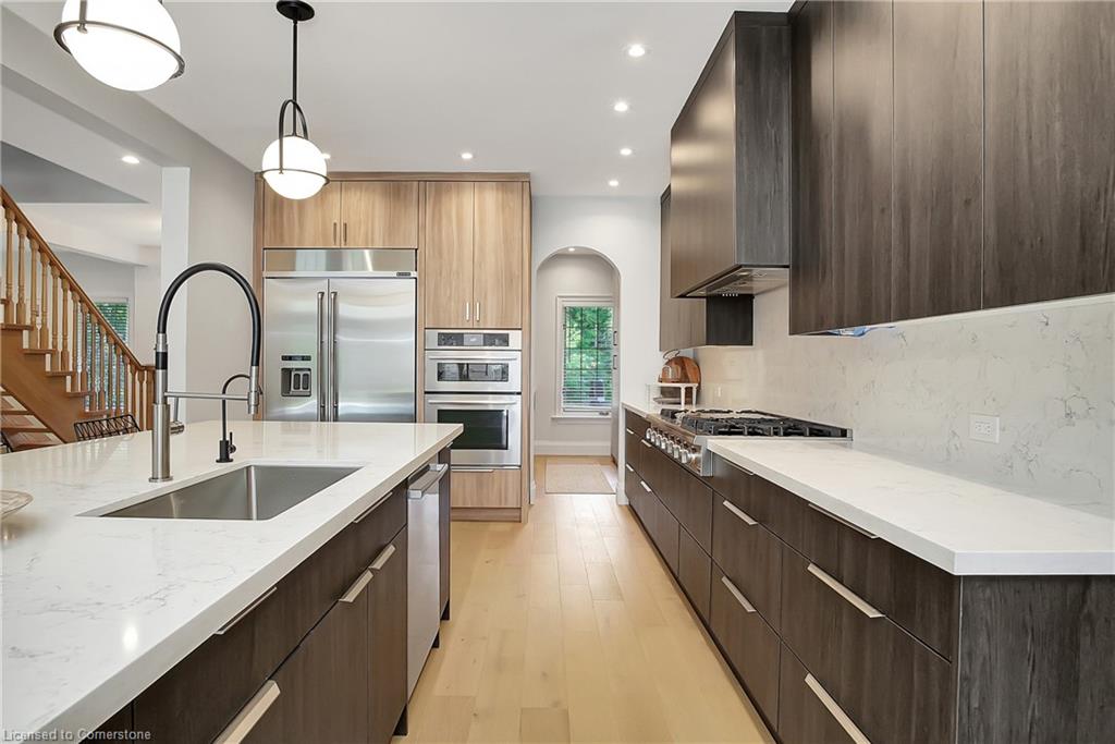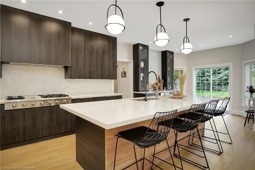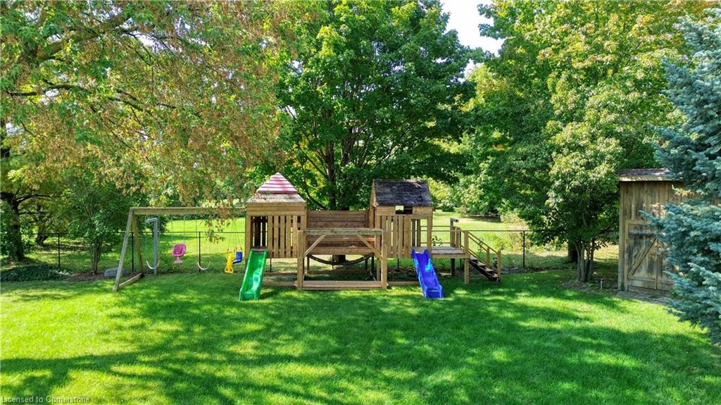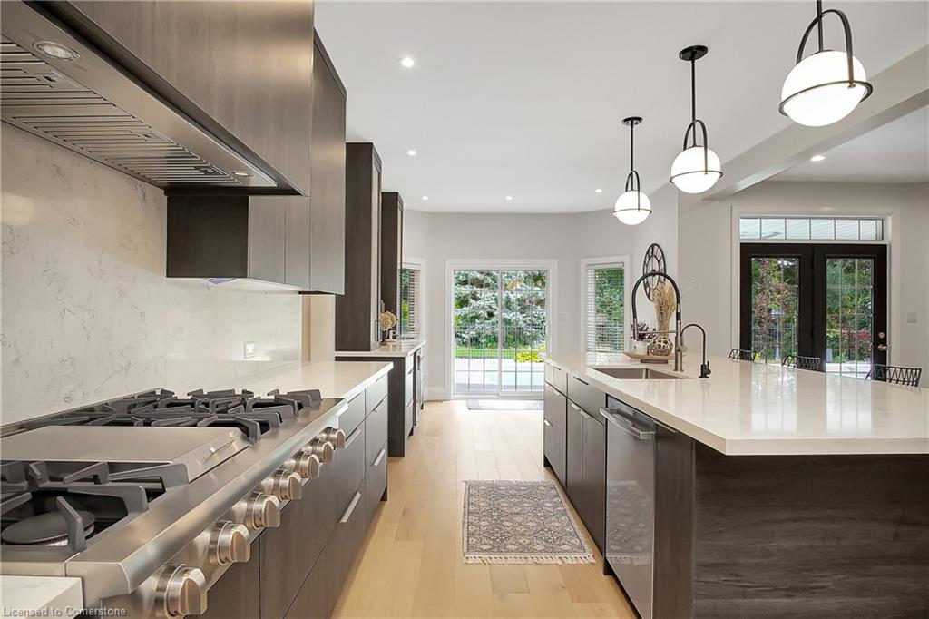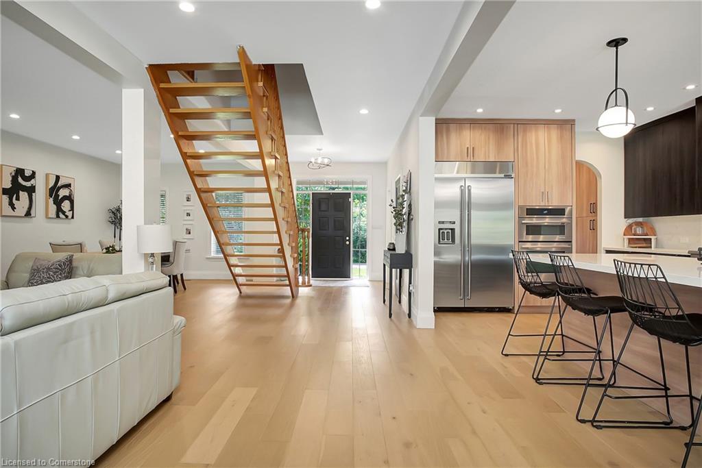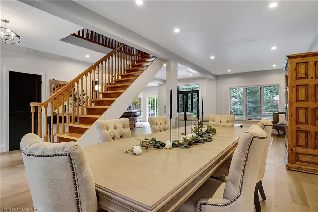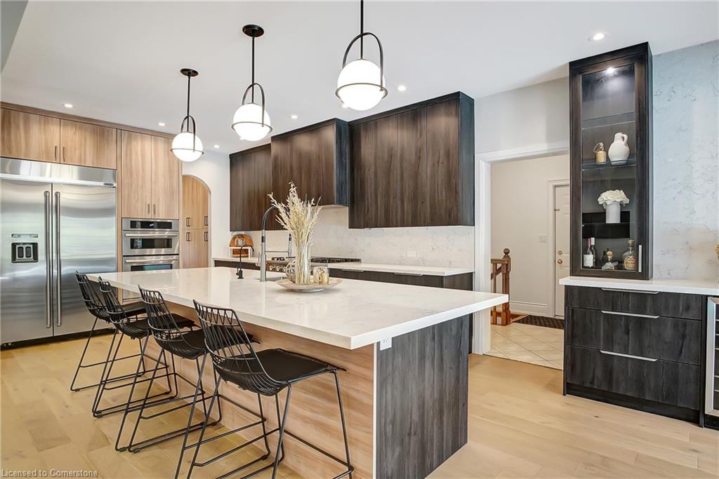 NESTLED BENEATH A LUSH CANOPY OF MATURE TREES, 645 Avenue Road is a stunning retreat in one of the region’s most coveted neighbourhoods. Spanning over 3,560sqft of living space, this impressive residence sits on nearly an acre of beautifully landscaped grounds, offering a perfect blend of privacy and elegance. A graceful approach through the meticulously manicured yard leads to the welcoming front entrance. Step inside to a radiant foyer that opens into an expansive, light-filled layout. The formal living and dining areas seamlessly connect to the outdoors, while the brand-new, well-appointed kitchen boasts a walk-in pantry, a stylish serving area, a striking backsplash, granite countertops, & a massive island with a breakfast bar. For added convenience, the main floor features 2 powder rooms—one perfectly situated near the garage. Upstairs, you’ll find 4 spacious bedrooms, including a serene primary suite with a generous walk-in closet and a beautifully designed 3pc ensuite. The fully finished lower level is ideal for future in-law living, complete with a kitchenette and wet bar, a sprawling recreation room with a cozy corner fireplace, a 5th bedroom, a 4th bathroom, an office space, & ample storage. Outside, the backyard is a true private oasis featuring a sparkling pool, a soothing hot tub, a charming playground, & breathtaking views. The property also offers exceptional practicality with a double garage, an oversized 26×36′ heated two-storey workshop, & ample parking. Additional Features & Upgrades: Engineered hardwood floors throughout the main level, LED smart lighting, new AC and furnace, new water softener, new fence, new pool pump, new garage doors, a 40-year shingle roof (2009), and a shop roof (2018). Enjoy the tranquility of this secluded lot while remaining just minutes from Highway 401, Shades Mill Conservation Area, & top-rated schools.