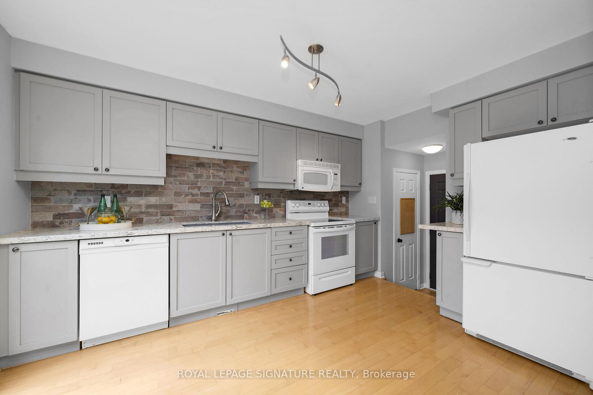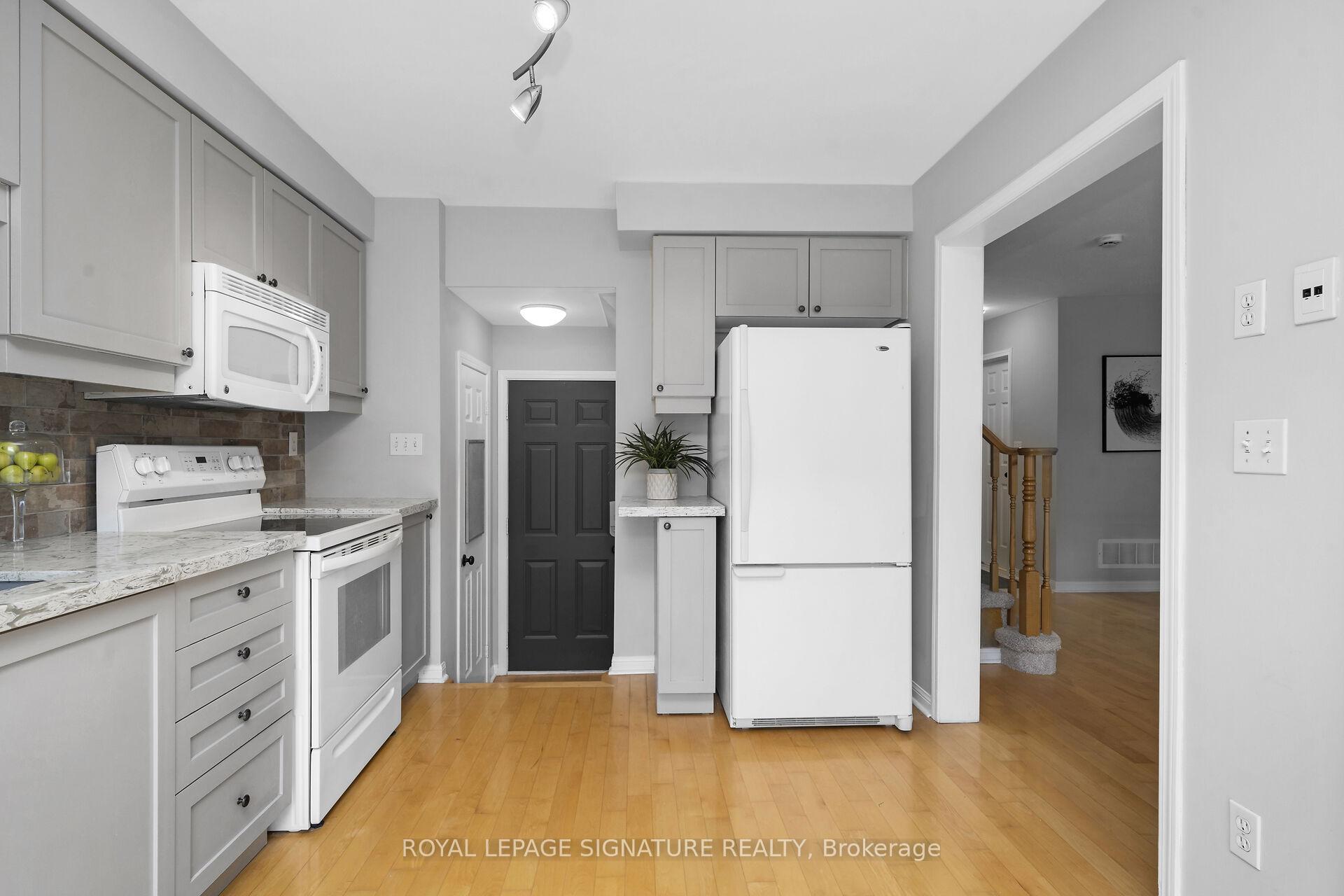 Welcome to Milton’s Hawthorne Village ! Located in the sought-after Beaty neighborhood, this 3-bedroom, Freehold Townhome is in the heart of a family-friendly neighborhood. It offers a perfect blend of comfort and style with a finished basement and many modern upgrades perfect for young families, first-time buyers or savvy investors. Located on a quiet street just minutes from top-rated schools, parks, amenities and GO transit. Freshly painted throughout, this home features an updated kitchen with granite counters, back splash, oversize sink, upgraded cabinetry with an extra pantry. Easy walkout access to a backyard deck perfect for entertaining. The open concept living/dining room showcases hardwood floors and a decorative fireplace for cozy nights in. A new furnace (2020), a large one-car garage, a smart main floor layout with no wasted space offer lots of natural light. Upstairs, you’ll find a spacious Primary bedroom with ensuite access, a walk-in closet with organizers, and luxury vinyl flooring carried throughout the second floor. A hardwood staircase leads down to the bright finished basement, complete with over-sized upgraded windows and a large recreation room for family enjoyment. This beautifully maintained, move-in ready, home delivers comfort, convenience, and long-term value. Don’t miss your chance to make it yours!