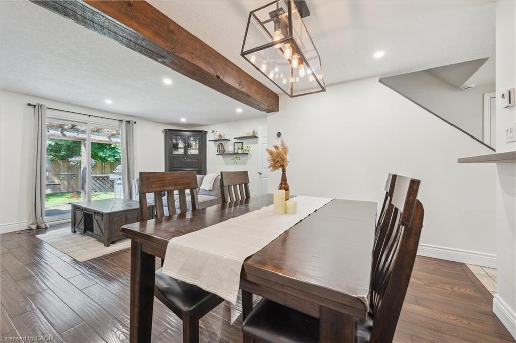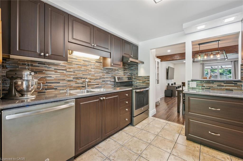 Run, don’t walk to this stylishly renovated 3-bedroom, 2-bath home located on a quiet street in sought-after Preston Heights. This move-in-ready gem is completely carpet free & showcases modern finishes throughout, including upgraded pot lights & lighting fixtures , engineered scraped hardwood flooring, wide baseboards & a contemporary tiled shower. Enjoy the convenience of natural gas heating & central air, rare upgrades in this neighbourhood. The kitchen features upgraded stainless appliances, backsplash, updated cabinetry, & a breakfast bar, while sliders from the living room open to a covered rear deck & a private, fully fenced backyard complete with a newer fence & shed, perfect for relaxing or entertaining. A single-car garage & double-wide driveway provide parking for up to 3 vehicles. Located close to schools, Costco, restaurants, shopping, & with quick access to Hwy 401 and 7/8, this home offers both comfort & convenience.
