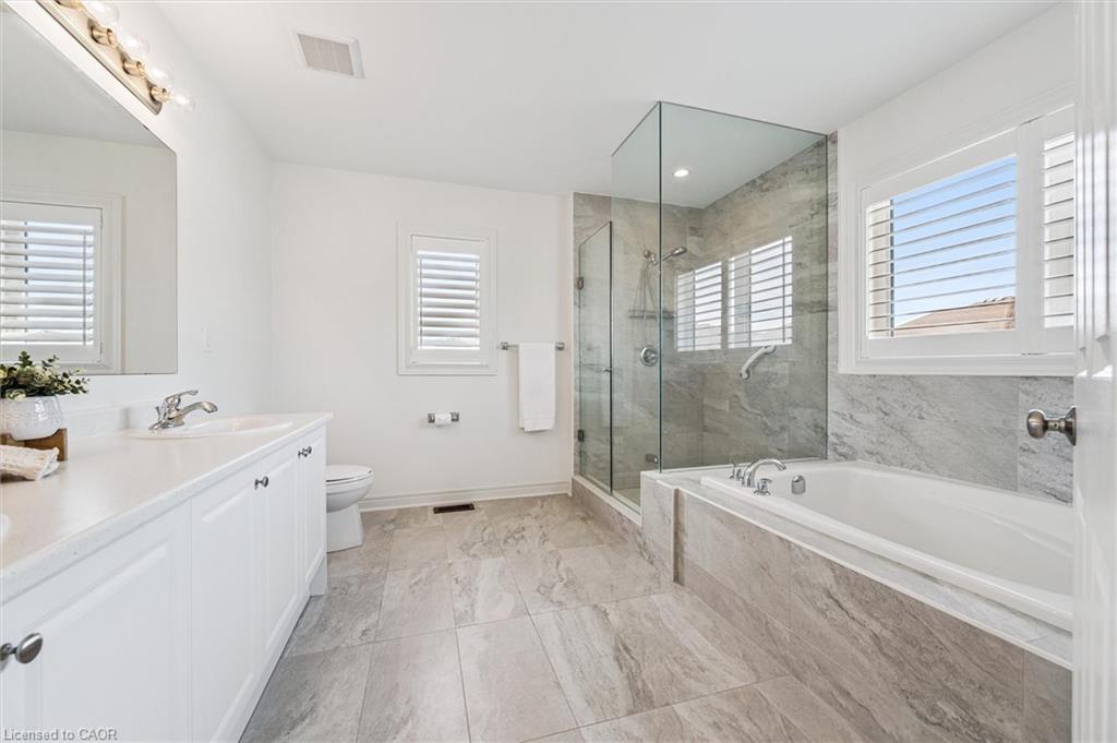 Welcome to the prestigious Fairgrounds subdivision in the north end of Paris, Brant — a community proudly known as “Canada’s Prettiest Little Town.” This exceptional multi-generational home offers an impressive blend of space, comfort, and refined living in one of Ontario’s most charming communities. Featuring 4 + 1 bedrooms and 5 bathrooms, this beautifully designed residence offers almost 3,100 sq. ft. above grade plus a fully finished basement, delivering nearly 4,400 sq. ft. of total living space – ideal for large or extended families. The main floor showcases rich hardwood flooring, a welcoming family room with gas fireplace, elegant formal dining room, and a private main floor office – perfect for working from home. At the heart of the home is the chef’s kitchen, fully equipped with appliances and designed for both everyday living and entertaining, while California shutters throughout the main and second floor add timeless sophistication throughout. Upstairs features four spacious bedrooms and convenient second floor laundry. The luxurious primary suite offers his and her closets and a spa-inspired ensuite. The three additional bedrooms are generously sized, with two sharing a convenient Jack and Jill bathroom, while the fourth enjoys its own private ensuite – providing ideal comfort and privacy for family or guests. The fully finished basement further expands the living space with additional bedrooms and versatile areas, perfect for extended family, guests, or a private in law setup. Outside, enjoy a double concrete aggregate driveway, fully fenced yard, and a gas line hookup for your BBQ, making outdoor entertaining easy. Homes of this size and flexibility rarely come available in this highly sought-after neighbourhood. Experience the space, comfort, and lifestyle your family deserves.