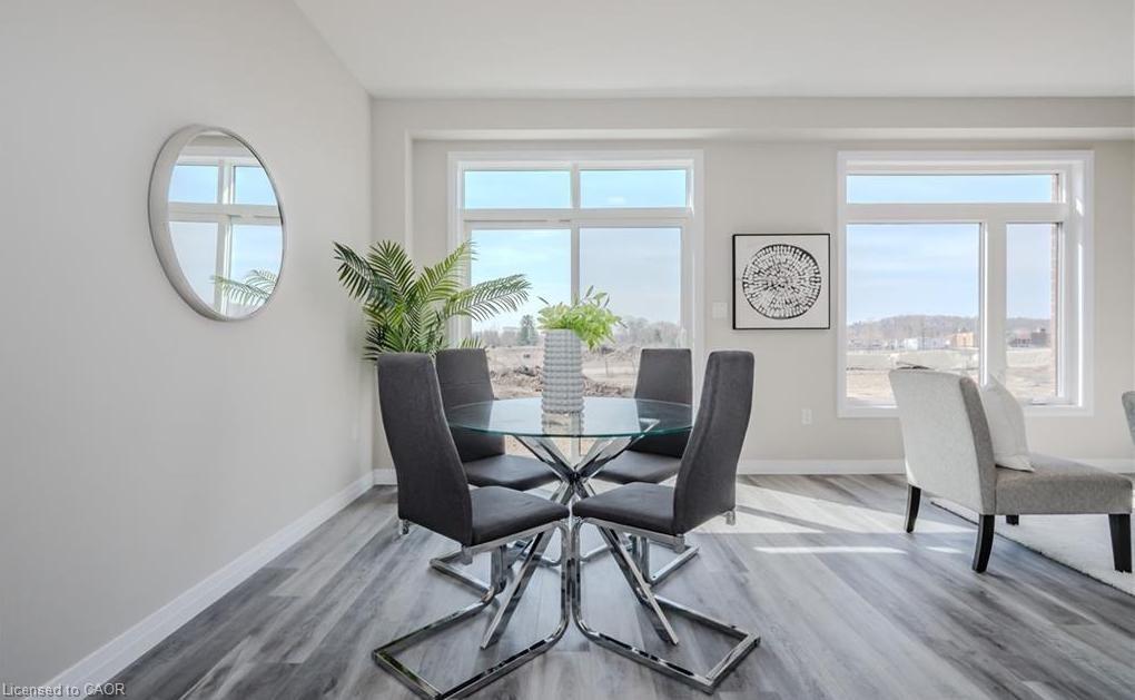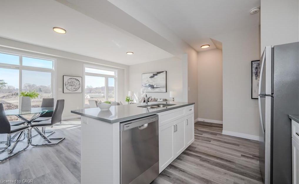 Imagine living in a serene town, just minutes from the city and the 401. Welcome to Windsong! Nestled in the charming village of Ayr, this beautiful condo town backs onto green space and provides all the modern conveniences families need. Don’t be fooled by the small town setting, this home is packed with value. Inside, you’ll find stunning features like 9′ ceilings on the main floor, stone countertops throughout, kitchen islands, luxury vinyl flooring, ceramic tiles, walk-in closets, air conditioning, and a 6-piece appliance package, just to name a few. Plus, these brand-new homes are ready for you to move in immediately and come with NO CONDO FEES for the first 2 YEARS and a $5,000 CREDIT towards Closing Costs!! Don’t miss out, schedule an appointment to visit our model homes today! Please note that photos are of Unit 79, this unit has the same finishes but the layout is reversed.