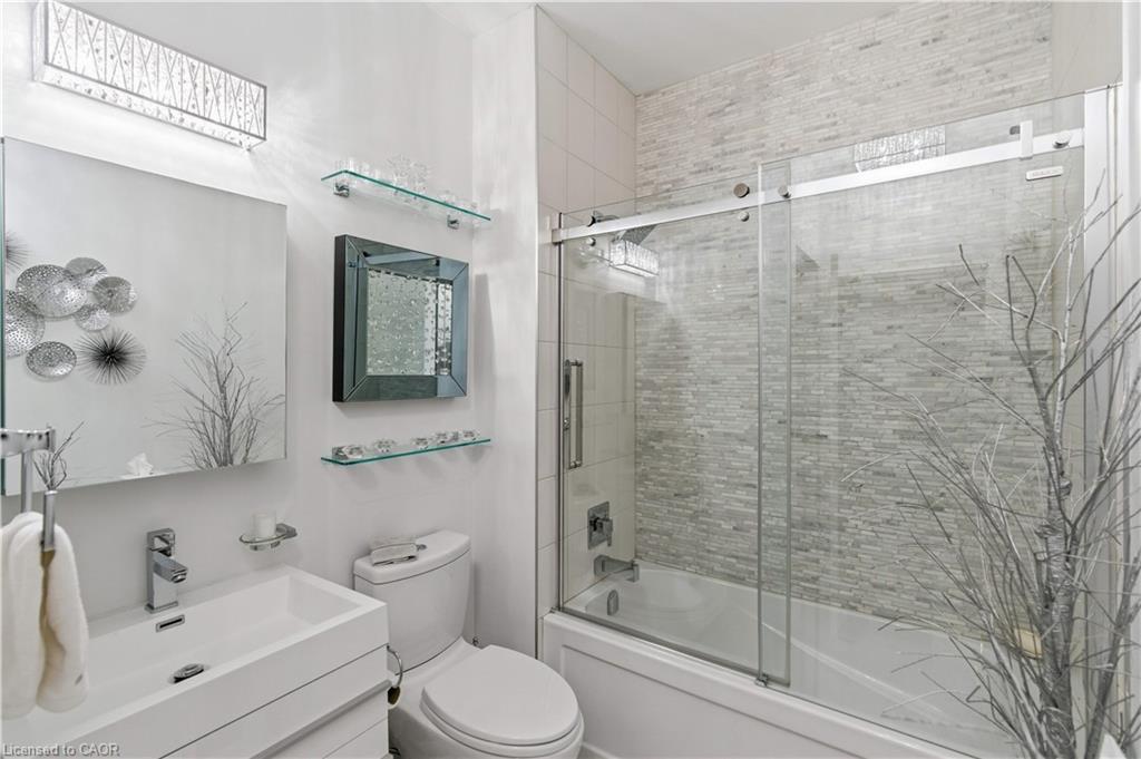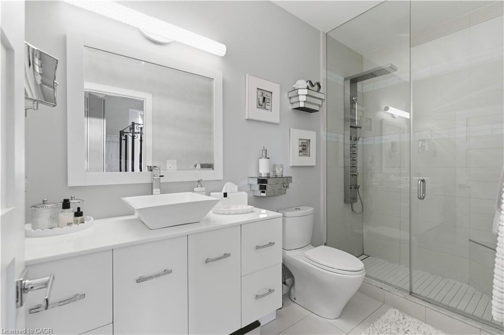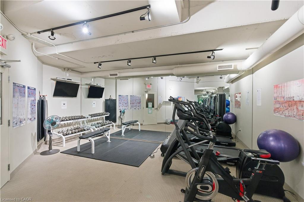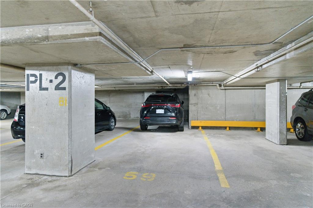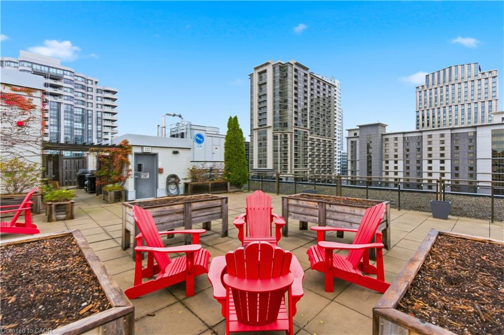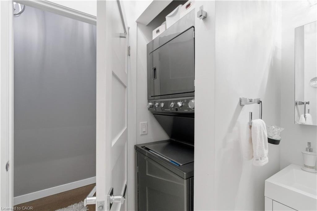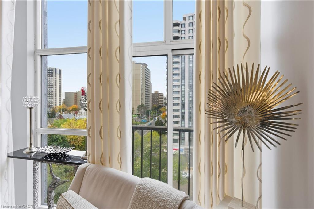 Welcome to Core Lofts – Hamilton’s premier loft condominium, ideally situated in the city’s coveted Durand neighbourhood. Once a former Bell Canada office building, this landmark conversion seamlessly blends industrial character w/ sophisticated urban design. This exceptional 1143 sq ft, 2-bdrm, 2-bath penthouse offers an elevated living experience w/ western exposure. Polished concrete floors, soaring 12.5′ ceil & expansive windows create a striking open-concept environment filled w/ natural light. The custom-reno’d kitch is a true showpiece, feat bespoke cabinetry, quartz counters, a stylish tiled backsplash, S/S app (incl a beverage fridge) & a large centre island w/ dual overhang seating for up to 8. The spacious liv rm opens to a Juliette balcony overlooking the city skyline, while the primary retreat feat an oversized closet, custom oversized wardrobe & a luxe upgraded 3-pc ensuite w/ an oversized glass shower & modern finishes. A 2nd bedroom, currently utilized as a den, provides flexibility for a home office or guest suite. The beautifully updated 4-pc main bath feat a tub/shower combo w/ a glass enclosure. Add highlights incl in-suite laundry, upgraded lighting, a tandem 2-car parking space (#59 PL-2 Lvl A), & an oversized storage locker (#23 on penthouse lvl). Steps away from access to a rooftop terrace w/ panoramic views of the city & topography, complete with BBQ areas & multiple seating zones. Add amenities incl a well-equipped gym, a stylish lobby, & a modern meeting room. Recent notable building improvements incl elevators, HVAC systems, & improved entry security. The location is second to none – steps to vibrant James St, the GO Station for easy commuting to Toronto, restaurants, shops, St. Joseph’s Hospital, & the Downtown Arts District. Walk to parks, trails, cafés, & everything downtown has to offer. This rare penthouse combines timeless industrial style, urban convenience, & luxe comfort – truly one of Hamilton’s most impressive loft residences.