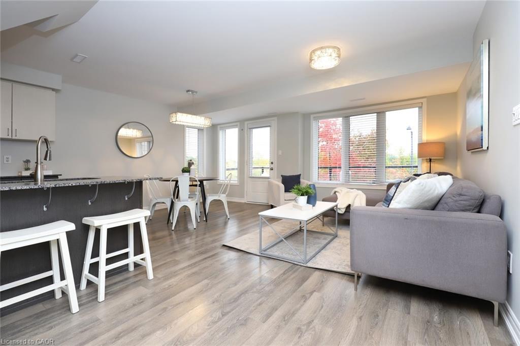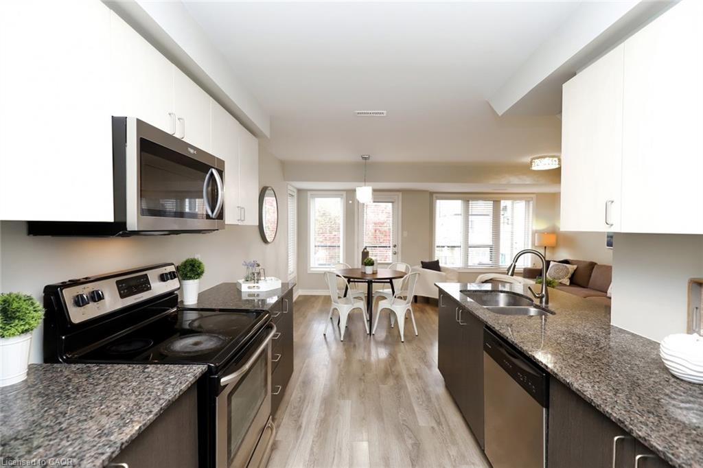 Stylish 3-Bedroom End Unit with 2 Parking Spots & Ravine Views – Move-In Ready! Fall in love with this bright and modern all-brick townhome in the desirable Wildflowers community! With two private balconies overlooking peaceful ravine views, this freshly updated and freshly painted end-unit offers the perfect blend of comfort, style and convenience. Enjoy cooking in the designer kitchen featuring granite counters, stainless steel appliances and built-in microwave. The brand new hardwood stairs and new luxury vinyl plank flooring throughout the entire upper level add a sleek, modern touch and easy-care finish. Upstairs, you’ll find three spacious bedrooms and a full bathroom – ideal for families, professionals or anyone seeking extra space for a home office. The open-concept main level is perfect for entertaining or relaxing with a view. With very low condo fees ($292/month), two owned parking spots, and the option to rent out one of the parking spaces for additional income (a popular choice among residents), this home offers unbeatable flexibility and value. Located just minutes walk to RBJ Schlegel Park, where you’ll find soccer fields, a multi-purpose turf sports field, cricket pitch, sports courts, playgrounds, a sand play area, splash pad, and outdoor fitness zone – plus nearby restaurants and shopping centres – this home truly checks every box for modern, active living. Freshly updated, beautifully bright, move-in ready and flexible with closing date – don’t miss your chance to make this home yours!