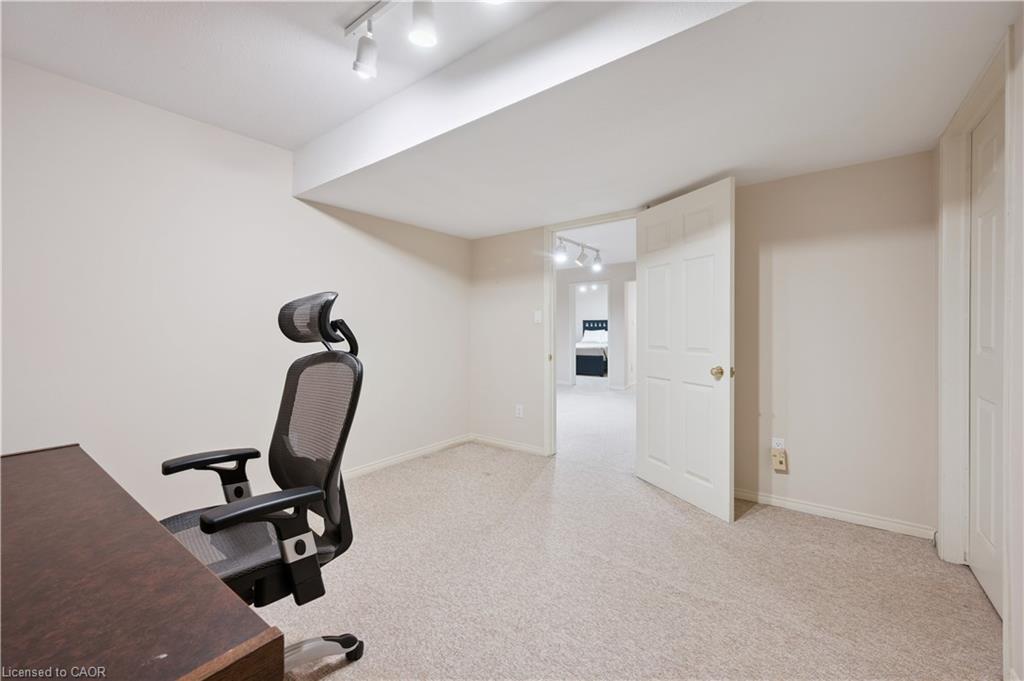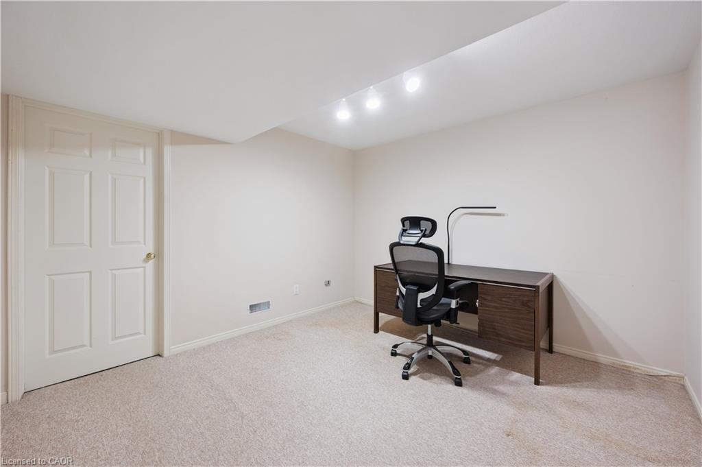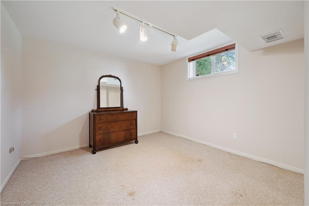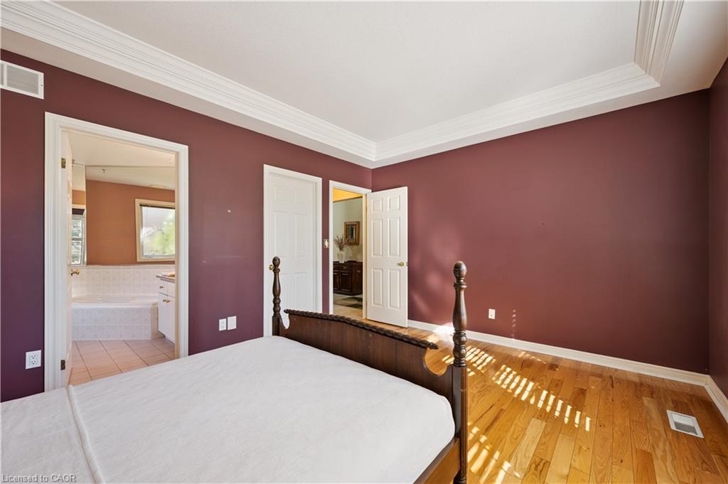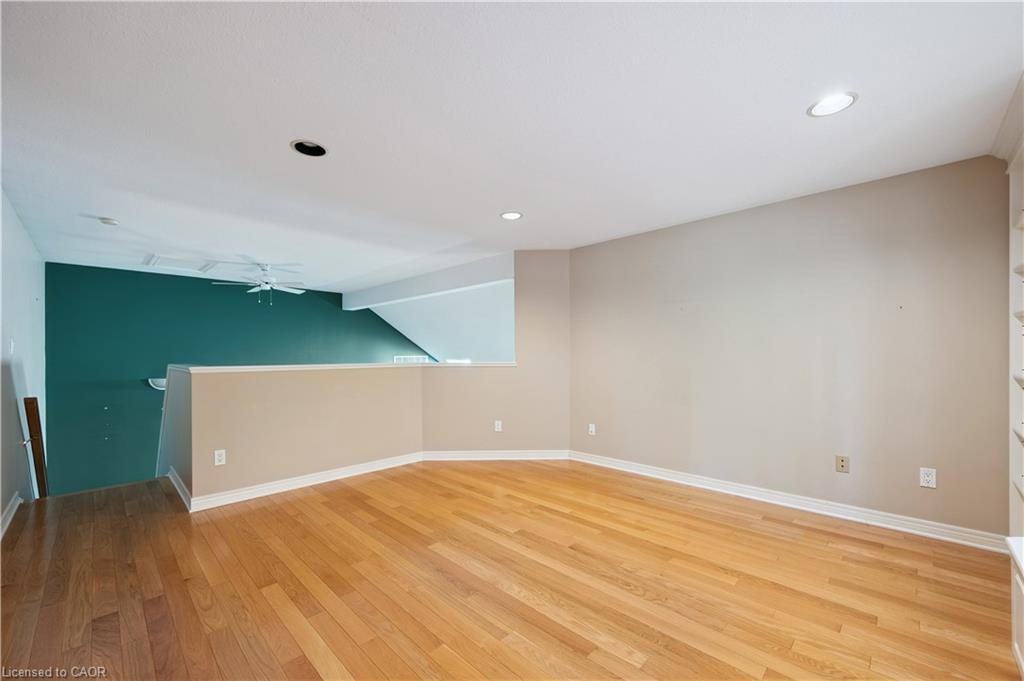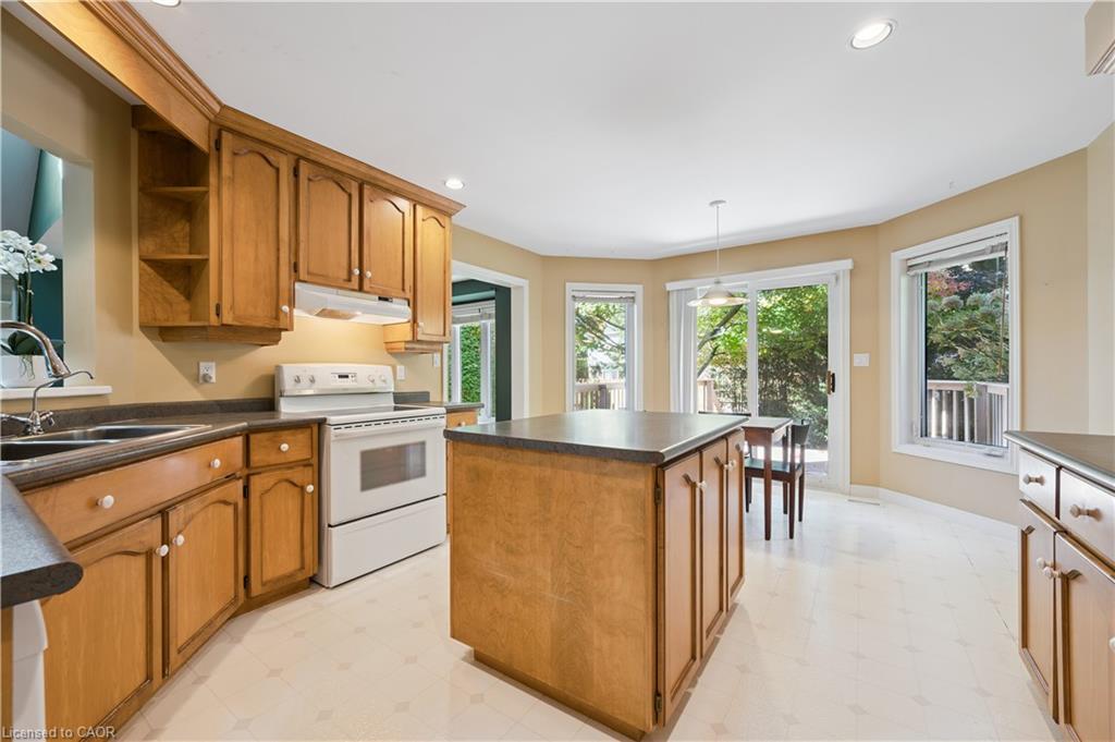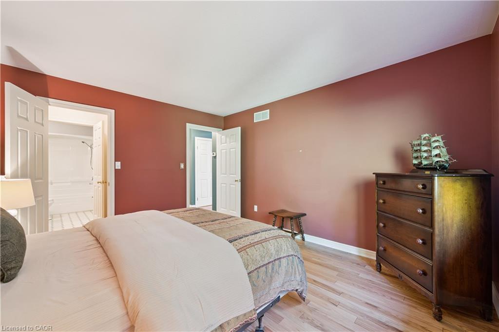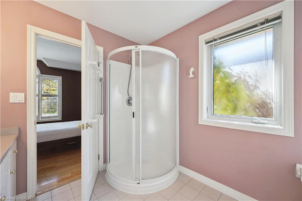 Welcome to this beautifully maintained bungaloft in Guelph’s highly sought-after Kortright East neighbourhood – where comfort, functionality, and charm come together seamlessly.The main floor offers a bright and spacious layout featuring two bedrooms, including a primary suite with a walk-in closet and private ensuite bathroom. A second bedroom with its own 3-piece bath provides flexibility for guests or family. Enjoy the ease of main floor laundry, vaulted ceilings with skylights, and a cozy gas fireplace that anchors the sun-filled living room.Downstairs, the finished basement extends your living space with two additional bedrooms, a den, office, and a 2-piece bath with shower rough-in-perfect for a growing family, home business, or multigenerational living with separate basement entrance through the garage. Ample storage throughout ensures everything has its place.Step outside to a private backyard surrounded by mature trees, ideal for relaxing or entertaining. A double car garage and spacious driveway complete this exceptional property.Located in a quiet, established community close to parks, trails, top-rated schools, shopping, and transit, this home offers the perfect blend of tranquility and convenience.