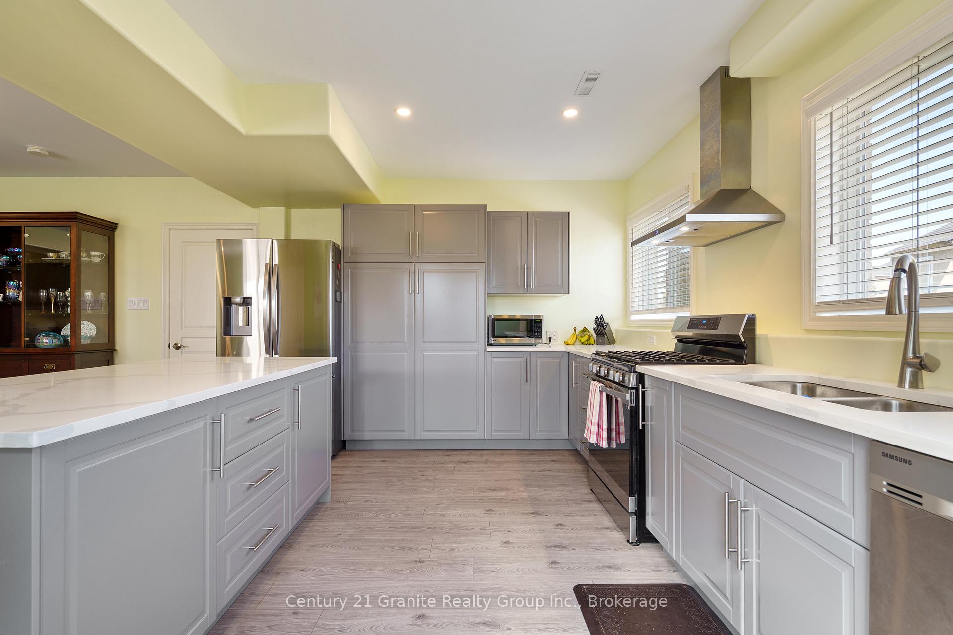 A Rare Find in Binbrook! This spacious 4,000 sq. ft. corner lot home offers exceptional living with a 3-car garage and an expansive layout perfect for families or multi-generational living. The main floor features 3 generously sized bedrooms, 2 bathrooms, a bright and open living room with walkout access to a deck overlooking the large backyard, and a huge kitchen ideal for entertaining. Convenient main-floor laundry. The fully finished walkout basement is a self-contained unit but accessible from the main floor, complete with 2 bedrooms, 1 bathroom, its own laundry, and a brand-new kitchen featuring quartz countertops. Perfect for extended family, guests, or rental income, this home provides endless possibilities. A rare opportunity to own a property that combines size, versatility, and modern updates in a sought-after Binbrook location.