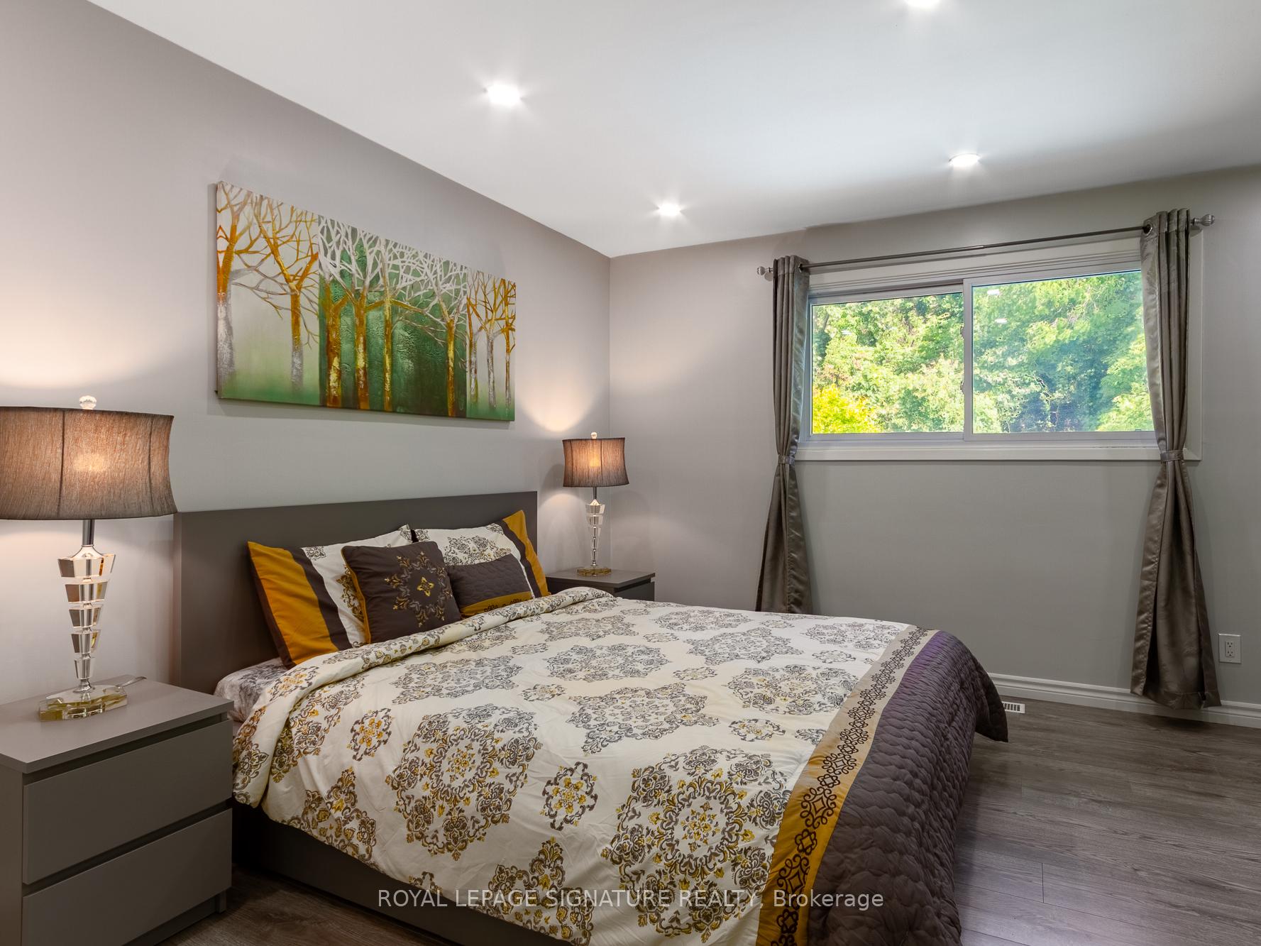 Welcome to this exceptional, fully renovated multigenerational bungalow backing onto a tranquil ravine in one of Kitchener’s most sought-after neighborhoods! Perfectly located just a short walk to Stanley Park Conservation Area, top-rated schools, and close to all amenities, this unique detached home offers beautifully finished living space designed for modern family living or investment potential. The main level features a bright open-concept layout with a stunning upgraded kitchen, complete with quartz countertops, a breakfast island, and new stainless steel appliances. The dining area boasts vaulted ceilings and a skylight, flooding the space with natural light. The expansive living room is perfect for entertaining or relaxing and offers flexible design options. With 4 spacious bedrooms and 3 full bathrooms on the main level, this home easily accommodates a large or growing family. Step outside to your private backyard oasis featuring a large in-ground pool and breathtaking ravine views enjoy the feel of a secluded retreat while being in the heart of the city! Additional upgrades include: New flooring and fresh paint throughout, Roof (2014), Roof repaired (2022), A/C (2021), Furnace (2023), all appliances (2022). Don’t miss this rare opportunity to own a turn-key, move-in-ready home in a family-friendly area known for excellent schools and close proximity to both Wilfrid Laurier University and the University of Waterloo, as well as Conestoga College.