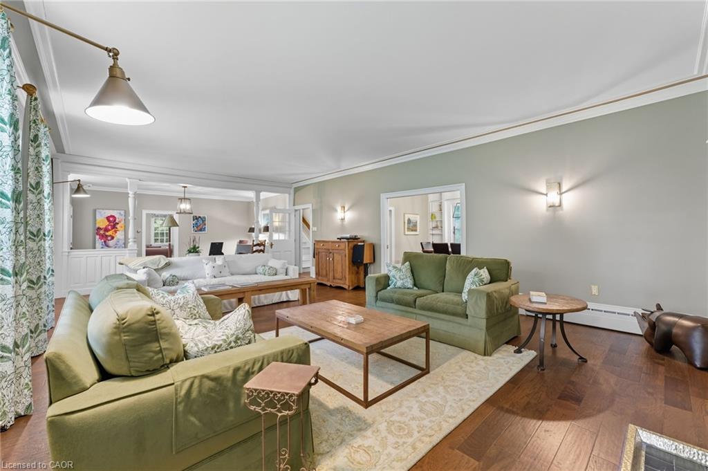 Discover a rare opportunity to own a designated heritage home in the heart of historic Blair Village. Originally constructed in 1832, this distinguished manor blends rich architectural history with thoughtful and tasteful modern restorations, completed in 2021.Spanning over 4,500 sq. ft. of finished living space, the home welcomes you with grand principal rooms, exquisite millwork, and timeless craftsmanship throughout. Designed for elegant living and effortless entertaining, the residence features 4+ bedrooms, each offering spacious proportions, abundant natural light, and classic heritage charm.A well-appointed butler’s pantry with custom built-in cabinetry and a second dishwasher provides exceptional convenience for hosting and entertaining. This versatile space also offers the option to add a secondary laundry, making it as functional as it is beautiful.An unfinished two-level bonus area presents endless possibilities, whether envisioned as a private gym, theatre room, wine cellar, or a chic speakeasy, it’s a rare opportunity to customize a part of this heritage estate to suit your lifestyle.The three-season screened sunroom off the primary bedroom creates a serene, breezy retreat, perfect for quiet morning coffees or summer evenings overlooking the grounds.Set on a stunning 2.4-acre property, the estate is graced by a river that gently flows through the land, adding to its natural beauty and privacy. A stone barn and original bakeshop further enhance the property’s character and offer potential for creative use or future restoration.This exceptional home celebrates the grandeur of a bygone era, while embracing the comfort and elegance of modern living. Just minutes from city amenities, yet immersed in the tranquil charm of Blair Village, this is a landmark estate unlike any other and must be seen to be truly appreciated.