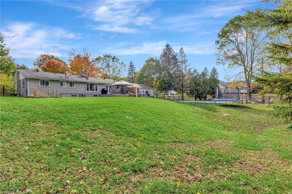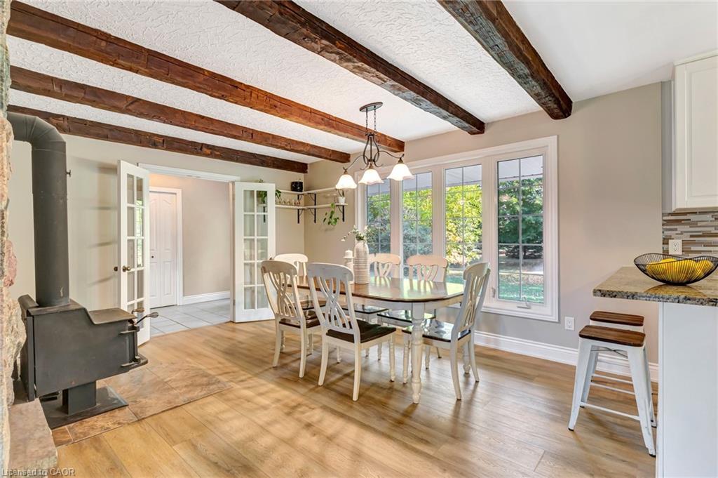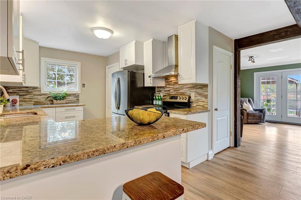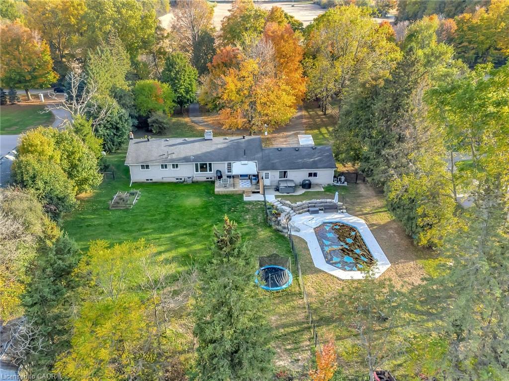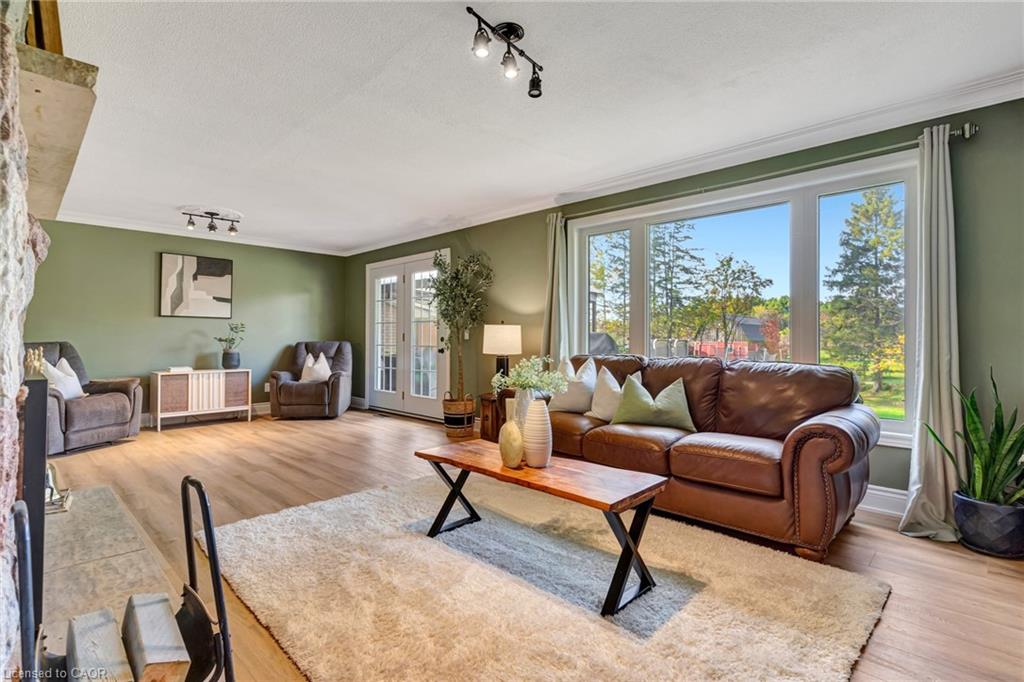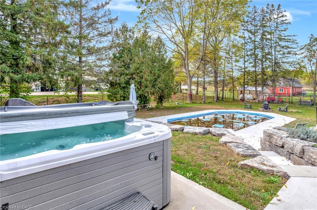 A rare opportunity to own a beautifully updated bungalow on a full acre of land in the desirable community of Puslinch. Just minutes from Cambridge, Guelph, and the 401, this property offers the peace of country living with easy access to city conveniences. This home features 1,763 sq. ft. of living space on the main floor and an additional 888 sq. ft. of finished space in the basement. A welcoming foyer off the large covered porch leads into the updated dining room, kitchen, and living room. These spaces are thoughtfully laid out and distinguished by a stone fireplace that provides additional heat during the cooler months. The dining room sits beside the kitchen, overlooking the mature trees out front. With plenty of prep and storage space, the kitchen layout is ideal for cooking enthusiasts and busy families alike. Just off the dining room, the living room features French doors that open to a private backyard with an inground pool, hot tub, and greenspace perfect for campfires, veggie gardens, or flower beds. The finished lower level includes a large recreation area and a fourth room ideal for an office or hobby space. With main-floor laundry, a powder room, and an attached two-car garage, this home combines functionality and charm in an ideal rural setting, perfect for those seeking more land, less noise, and a life surrounded by natural beauty.