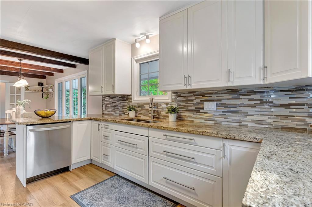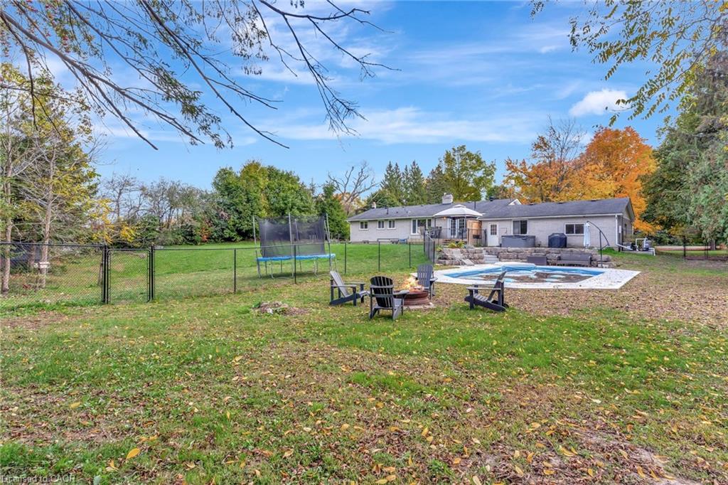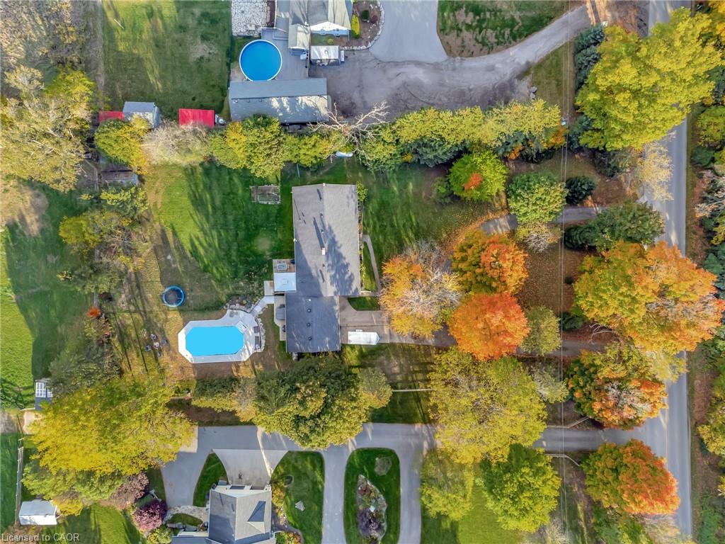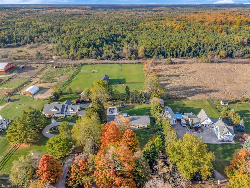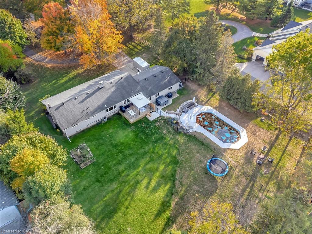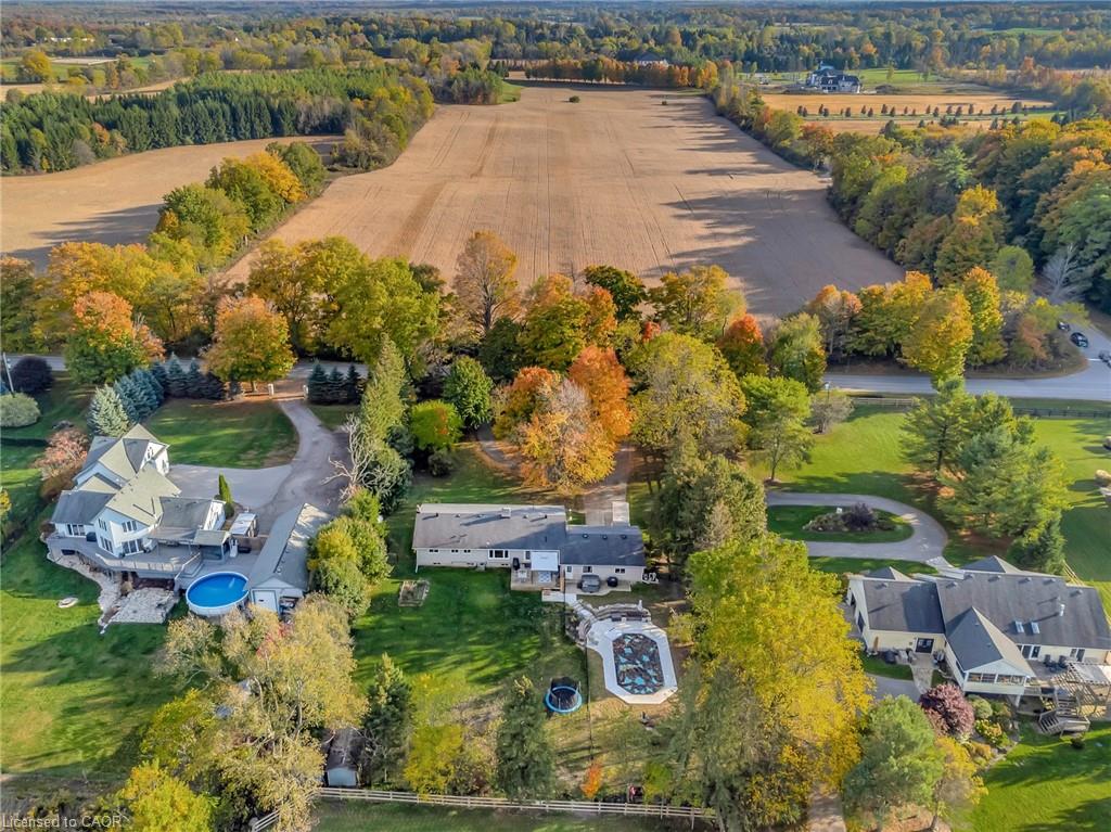 A rare opportunity to own a beautifully updated bungalow on a full acre of land in the desirable community of Puslinch. Just minutes from Cambridge, Guelph, and the 401, this property offers the peace of country living with easy access to city conveniences. This home features 1,763 sq. ft. of living space on the main floor and an additional 888 sq. ft. of finished space in the basement. A welcoming foyer off the large covered porch leads into the updated dining room, kitchen, and living room. These spaces are thoughtfully laid out and distinguished by a stone fireplace that provides additional heat during the cooler months. The dining room sits beside the kitchen, overlooking the mature trees out front. With plenty of prep and storage space, the kitchen layout is ideal for cooking enthusiasts and busy families alike. Just off the dining room, the living room features French doors that open to a private backyard with an inground pool, hot tub, and greenspace perfect for campfires, veggie gardens, or flower beds. The finished lower level includes a large recreation area and a fourth room ideal for an office or hobby space. With main-floor laundry, a powder room, and an attached two-car garage, this home combines functionality and charm in an ideal rural setting, perfect for those seeking more land, less noise, and a life surrounded by natural beauty.