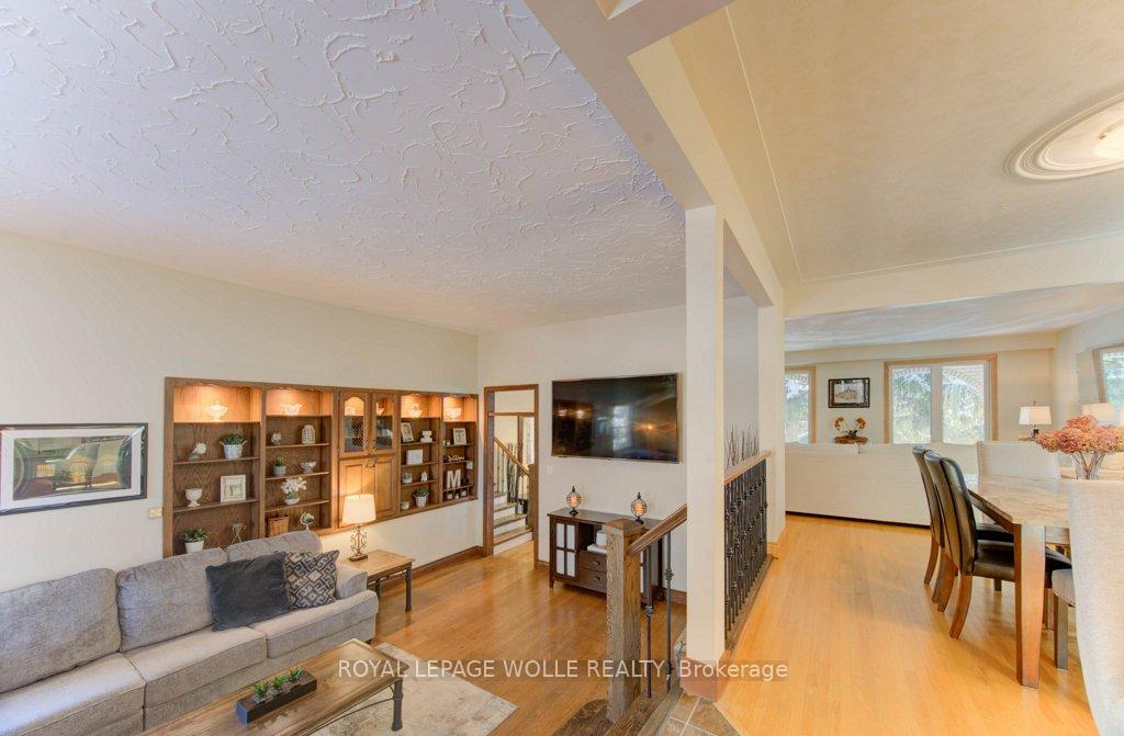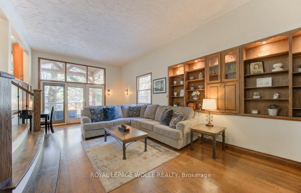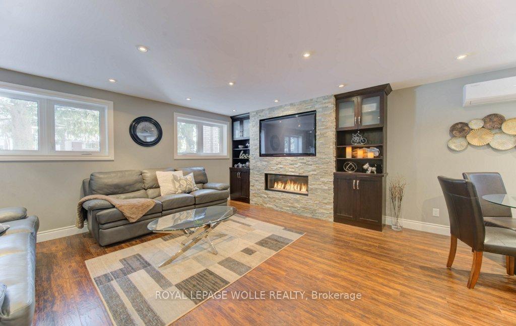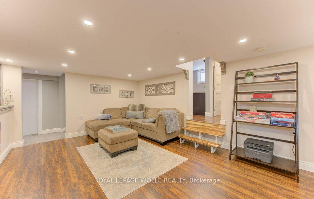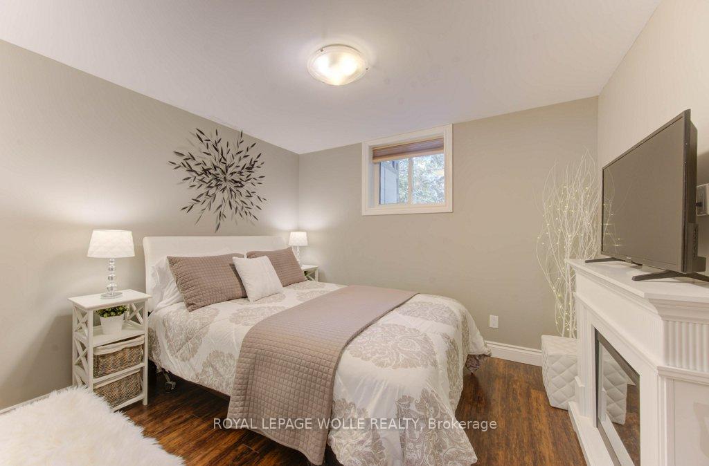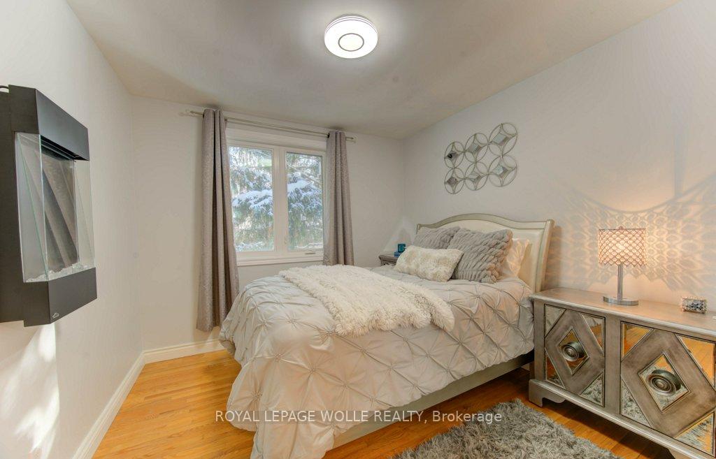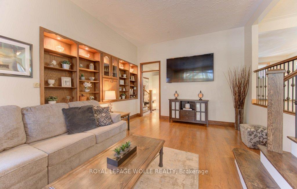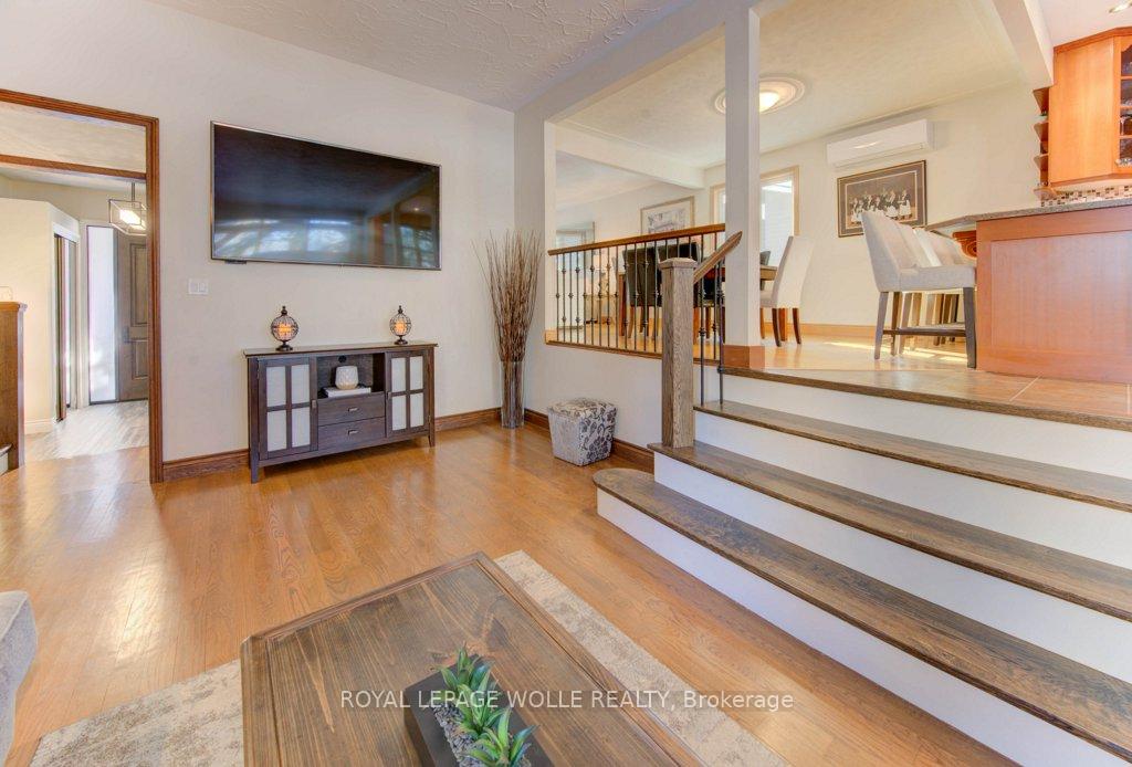 This tastefully updated, open-concept home is nestled in the desirable Westmount neighbourhood-ideally situated between Kitchener and Waterloo for seamless commuting and everyday ease. Only minutes from Uptown Waterloo, Belmont Village, and The Boardwalk, the location provides quick access to shops, dining, and essential amenities, all while being set within a warm, established community surrounded by walking trails and mature, tree-lined streets. Inside, the home makes a striking first impression with its oversized front door, lofty ceilings, and newer energy-efficient windows that bathe the interior in natural light and offer views of the scenic quarter-acre, wooded lot. The generous floor plan includes formal living and dining spaces that flow into a well-equipped kitchen with quartz countertops and an expansive great room-perfect for hosting guests or spending time with family. The fully finished basement extends the living space even further, featuring a custom wet bar, a high-efficiency gas fireplace, and a flexible recreation area ideal for movie nights, game-day gatherings, or simply unwinding. Significant plumbing and electrical upgrades add peace of mind and everyday practicality. Step outside to a backyard built for leisure and relaxation. A multi-tiered deck with wraparound steps, a welcoming patio with fire pit, a delightful treehouse, and a shed wired for electricity create an outdoor haven that feels like your own private escape. Exterior improvements-including updated roofing, soffit, fascia, downspouts, and heat pumps/AC-ensure the home is as functional as it is attractive. Impeccably maintained and centrally located, this home delivers the perfect combination of comfort, style, community, and convenience.