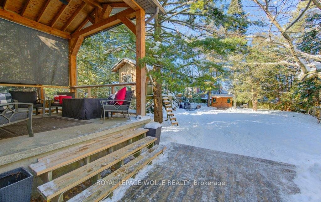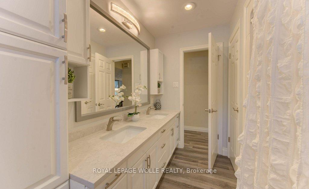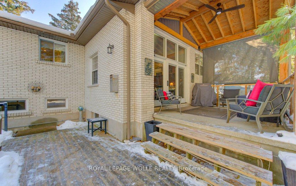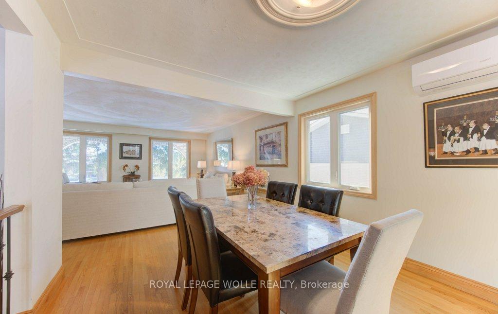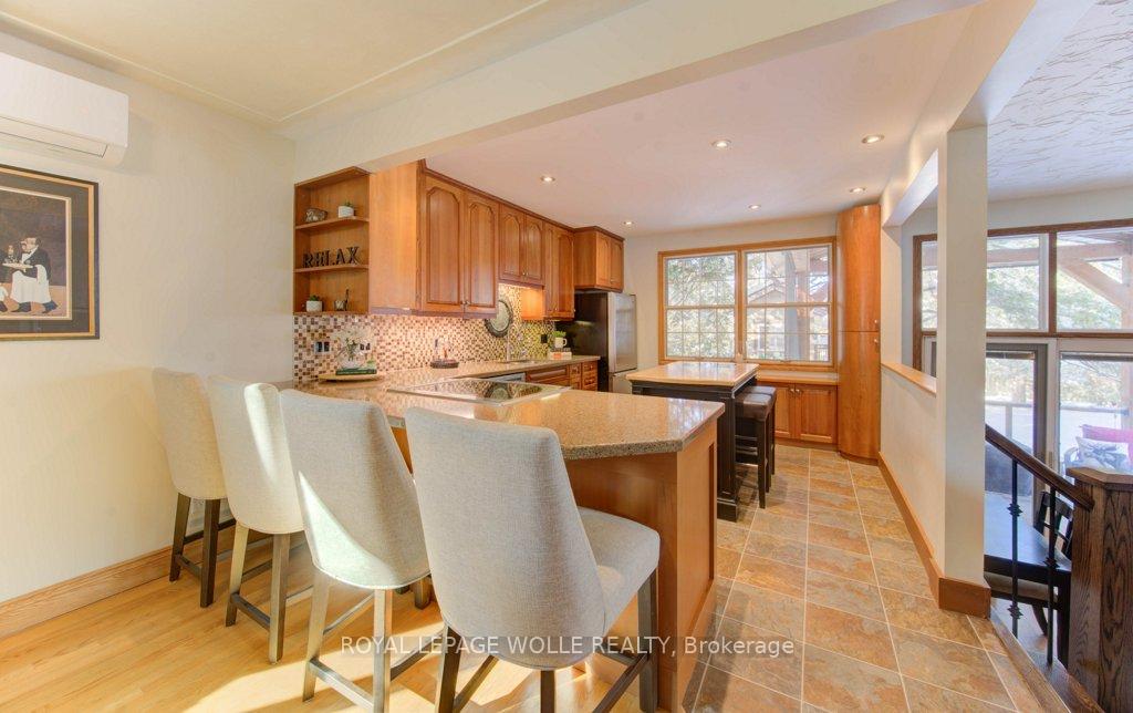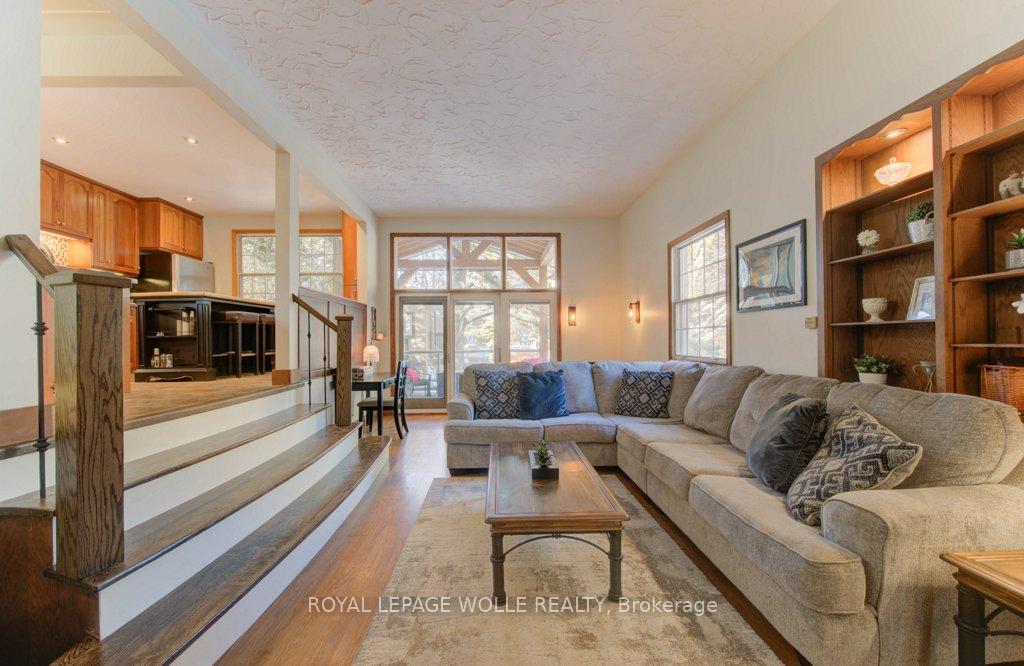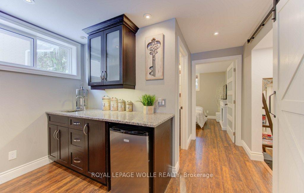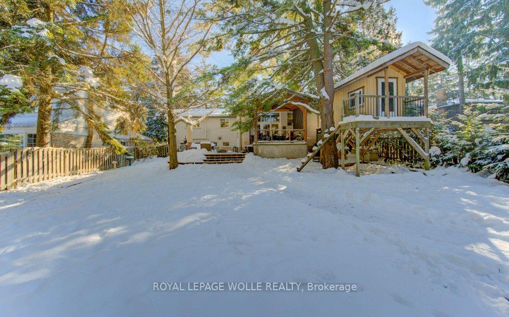 This tastefully updated, open-concept home is nestled in the desirable Westmount neighbourhood-ideally situated between Kitchener and Waterloo for seamless commuting and everyday ease. Only minutes from Uptown Waterloo, Belmont Village, and The Boardwalk, the location provides quick access to shops, dining, and essential amenities, all while being set within a warm, established community surrounded by walking trails and mature, tree-lined streets. Inside, the home makes a striking first impression with its oversized front door, lofty ceilings, and newer energy-efficient windows that bathe the interior in natural light and offer views of the scenic quarter-acre, wooded lot. The generous floor plan includes formal living and dining spaces that flow into a well-equipped kitchen with quartz countertops and an expansive great room-perfect for hosting guests or spending time with family. The fully finished basement extends the living space even further, featuring a custom wet bar, a high-efficiency gas fireplace, and a flexible recreation area ideal for movie nights, game-day gatherings, or simply unwinding. Significant plumbing and electrical upgrades add peace of mind and everyday practicality. Step outside to a backyard built for leisure and relaxation. A multi-tiered deck with wraparound steps, a welcoming patio with fire pit, a delightful treehouse, and a shed wired for electricity create an outdoor haven that feels like your own private escape. Exterior improvements-including updated roofing, soffit, fascia, downspouts, and heat pumps/AC-ensure the home is as functional as it is attractive. Impeccably maintained and centrally located, this home delivers the perfect combination of comfort, style, community, and convenience.