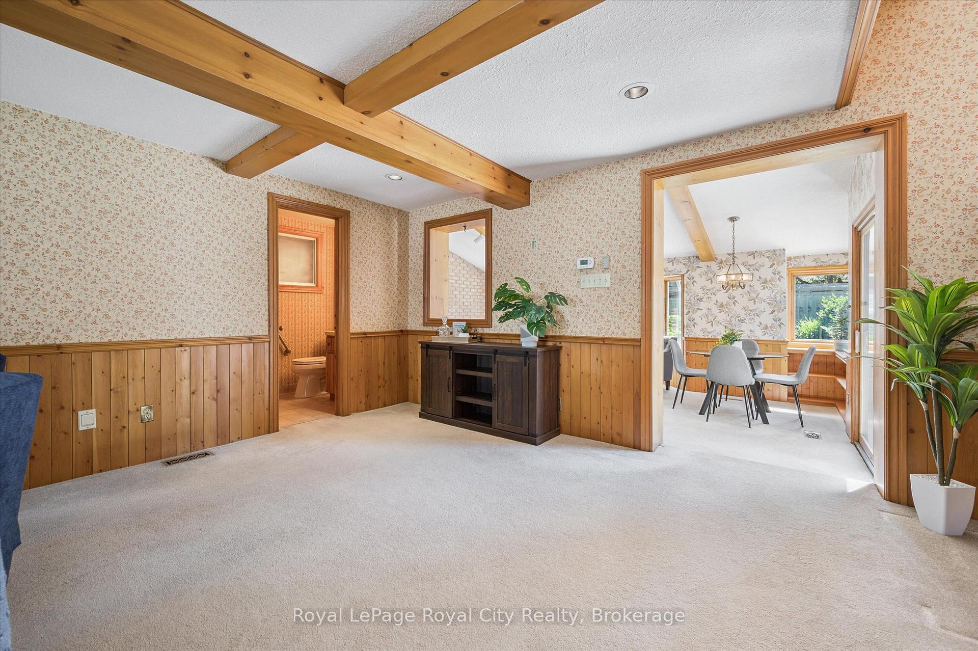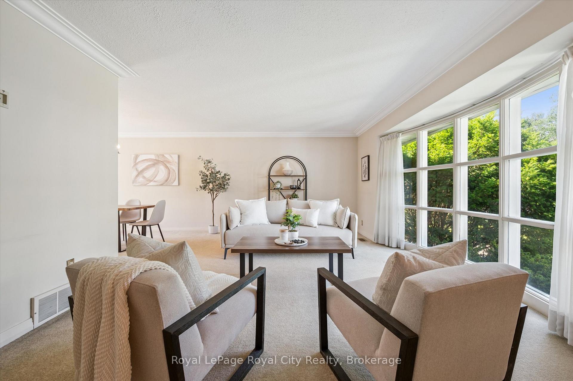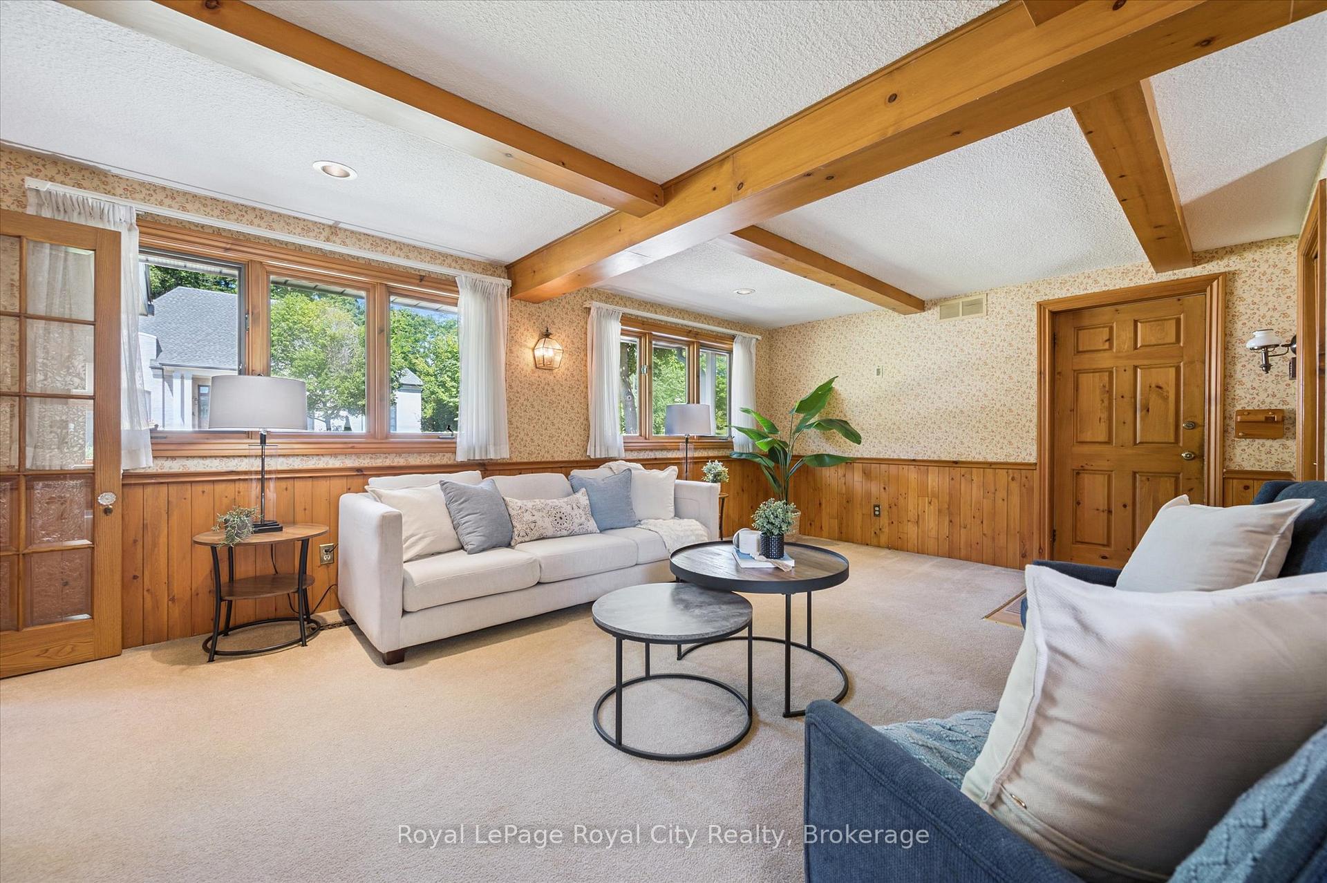 Endless Potential in a Prime Location! Set on a generous lot at the end of a quiet, dead-end street lined with multi-million dollar homes, this well-maintained property is ready to be transformed into your dream residence. With timeless architectural details and a spacious layout, the possibilities here are truly exciting. The main level offers three distinct living areas: a front living room with a large bay window, an expansive family room with wood-beamed ceiling, and a cozy sunroom featuring exposed brick and a fireplace. A convenient powder room and interior access to the double garage add function to form. Upstairs, you’ll find three bedrooms and two full bathrooms, including a private primary ensuite. The partially finished basement provides even more space – imagine your home office, gym, or media room. Step outside to a large, private backyard with mature landscaping, a deck, and beautiful old-growth trees. Just steps from the Speed River, downtown Guelph, and the University, the location alone makes this an exceptional opportunity. Don’t miss your chance to unlock the potential in this remarkable property!