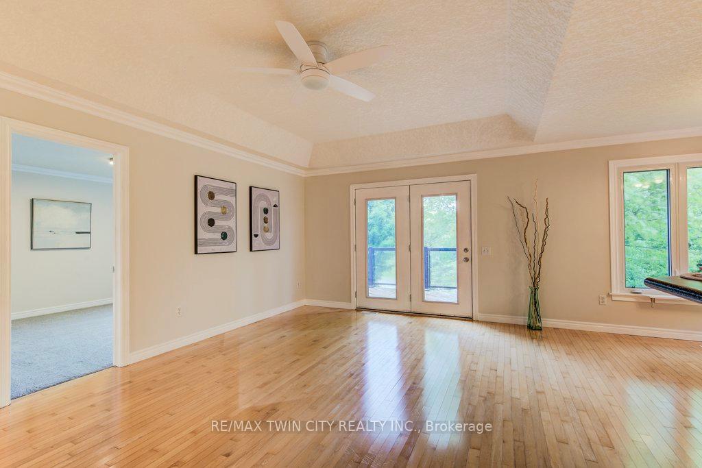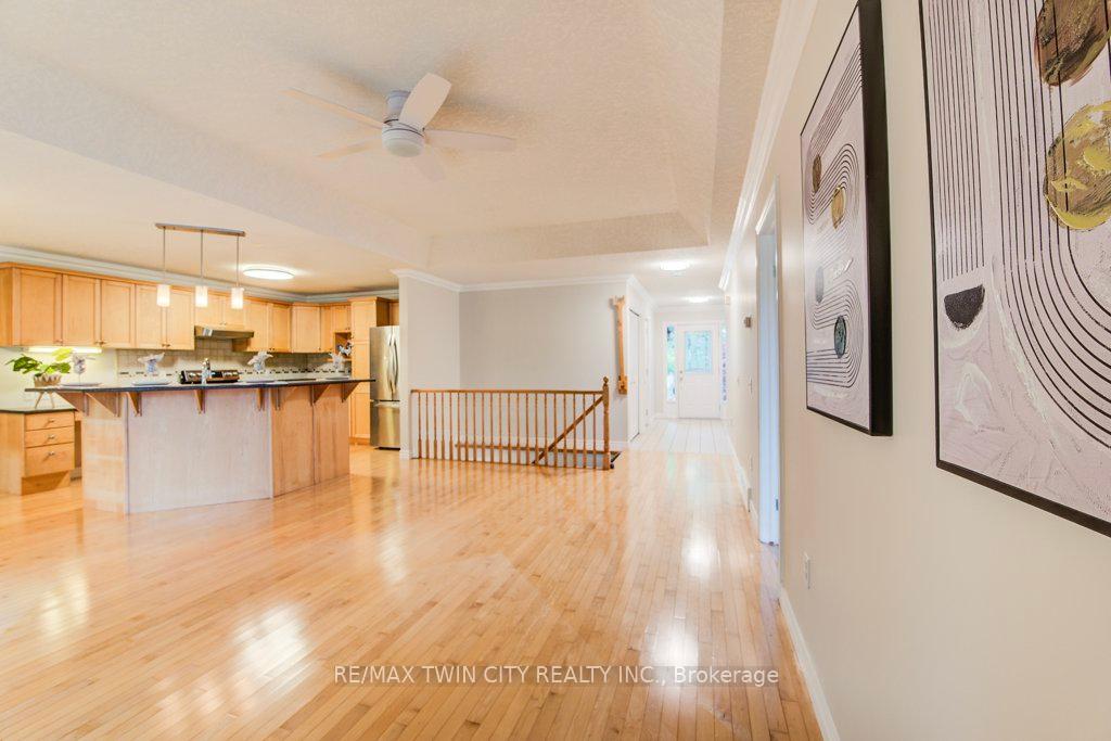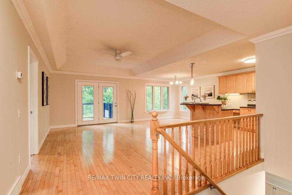 Prestigious Rosewood Estates A Rare Retreat in Waterloo! Nestled in the sought-after Clair Hills community, this exceptional walkout bungalow backs onto the tranquil Rosewood Pond and offers a rare blend of elegance, comfort, and accessibility. Featuring 2+1 bedrooms, 3 bathrooms, and nearly 2,000 sq. ft. of beautifully finished living space, this residence is designed for both style and practicality. Freshly painted and updated with new carpeting, the home is truly move-in ready. The main floor features rich maple hardwood and ceramic tile flooring, with an open-concept living and dining area that flows seamlessly to a raised deck with glass railings perfect for enjoying serene pond views and lush natural surroundings. The spacious primary suite overlooks the water and includes a private 4-piece en-suite, while the second bedroom with built-in Murphy bed provides flexible use as a guest room or home office. The bright, fully finished walkout basement offers a cozy gas fireplace, oversized windows, and direct access to the backyard ideal for entertaining or quiet relaxation. A third bedroom with en-suite privileges and a generous utility/storage area complete the lower level. Accessibility features include widened interior doorways, lowered light switches, and a widened staircase to the lower level that can accommodate a future lift if desired. Set on a quiet, low-traffic street, the property also offers a double garage, ample parking, and a manageable backyard designed for easy upkeep. Homes combining this level of layout, accessibility, and location are seldom available. Don’t miss your opportunity to own this extraordinary Rosewood Estates retreat! Call for your private showing today.