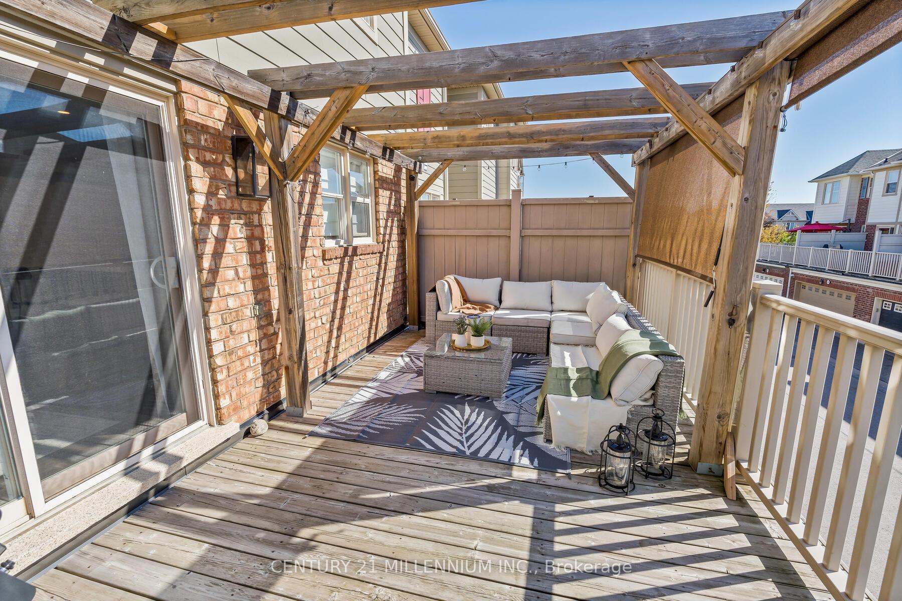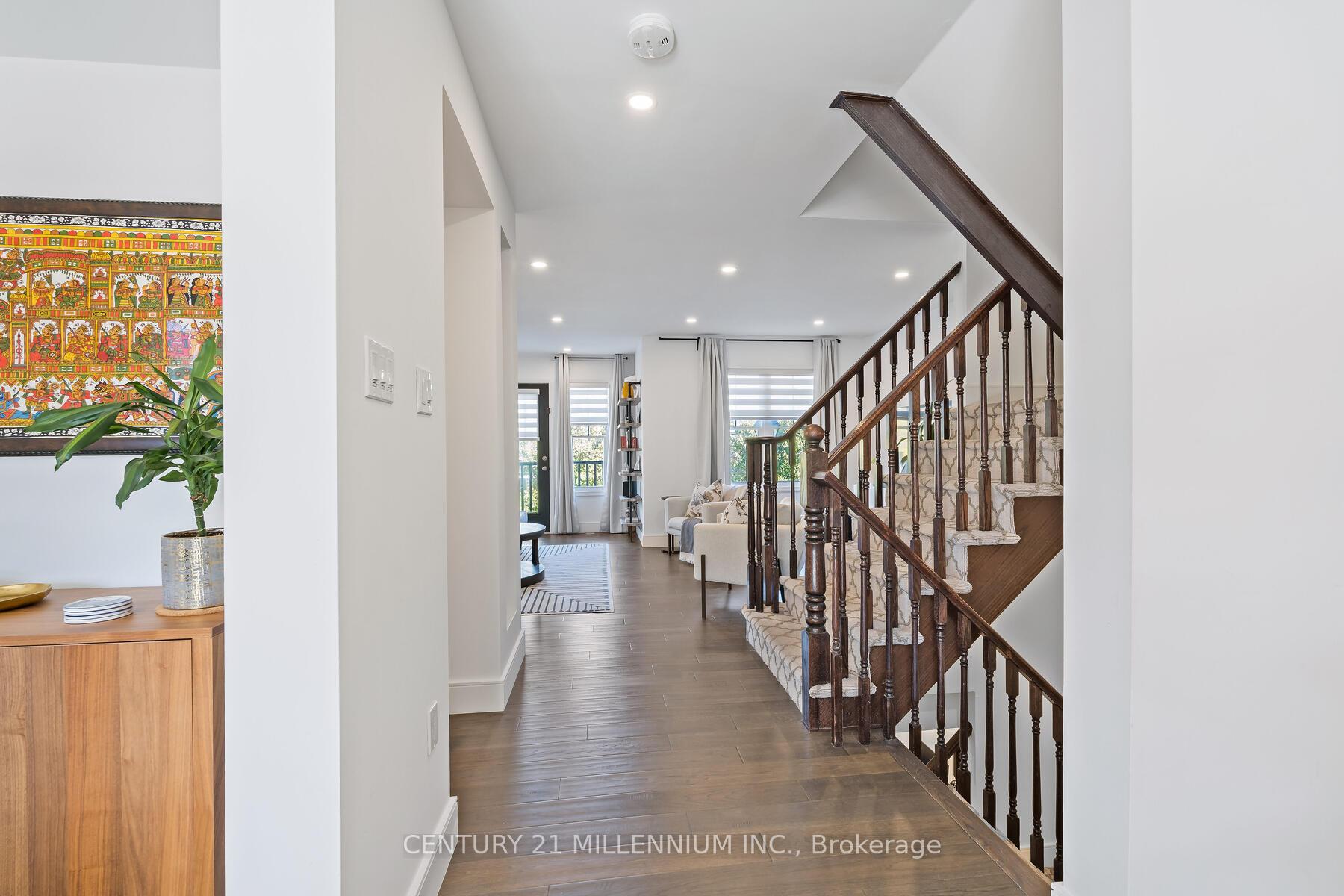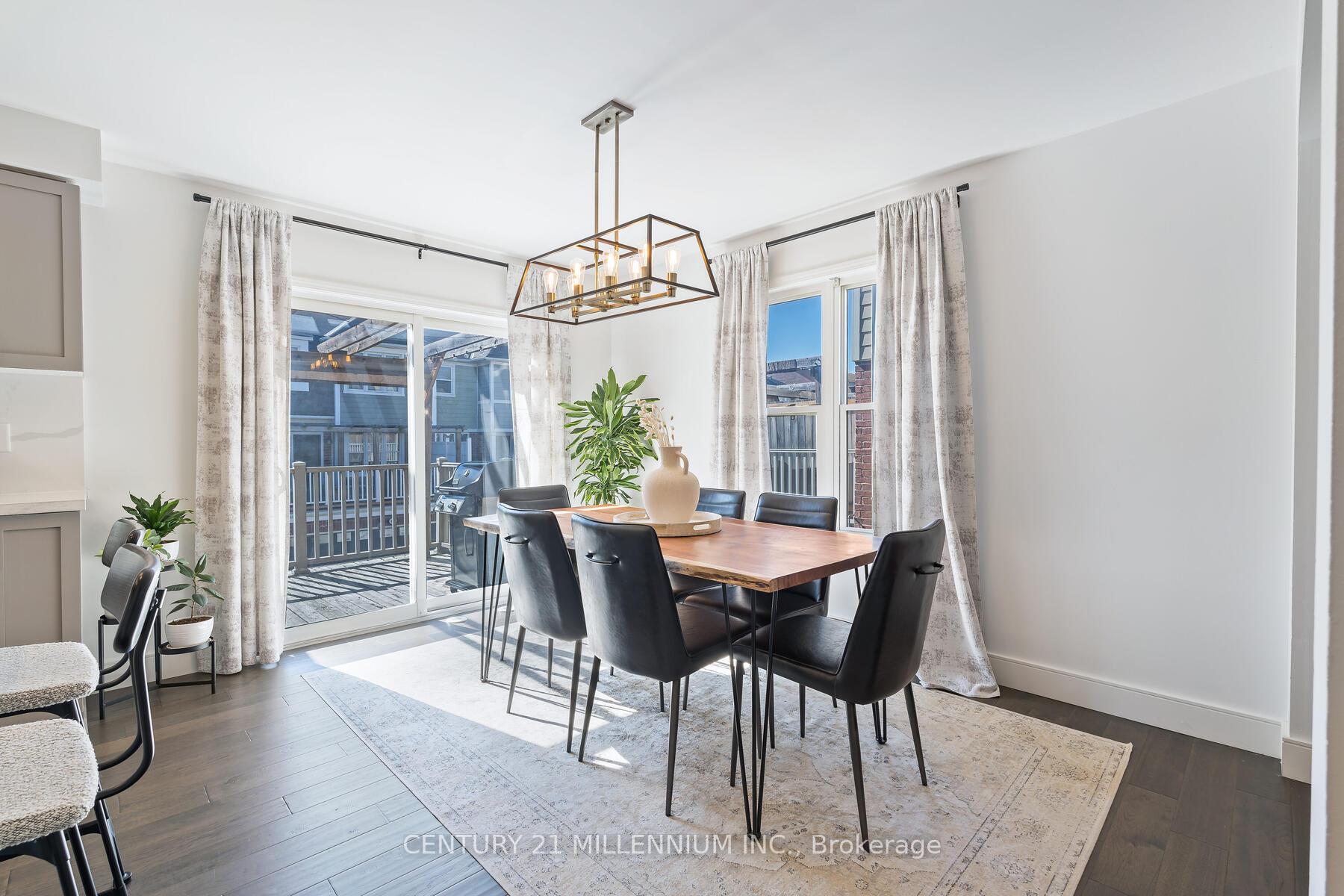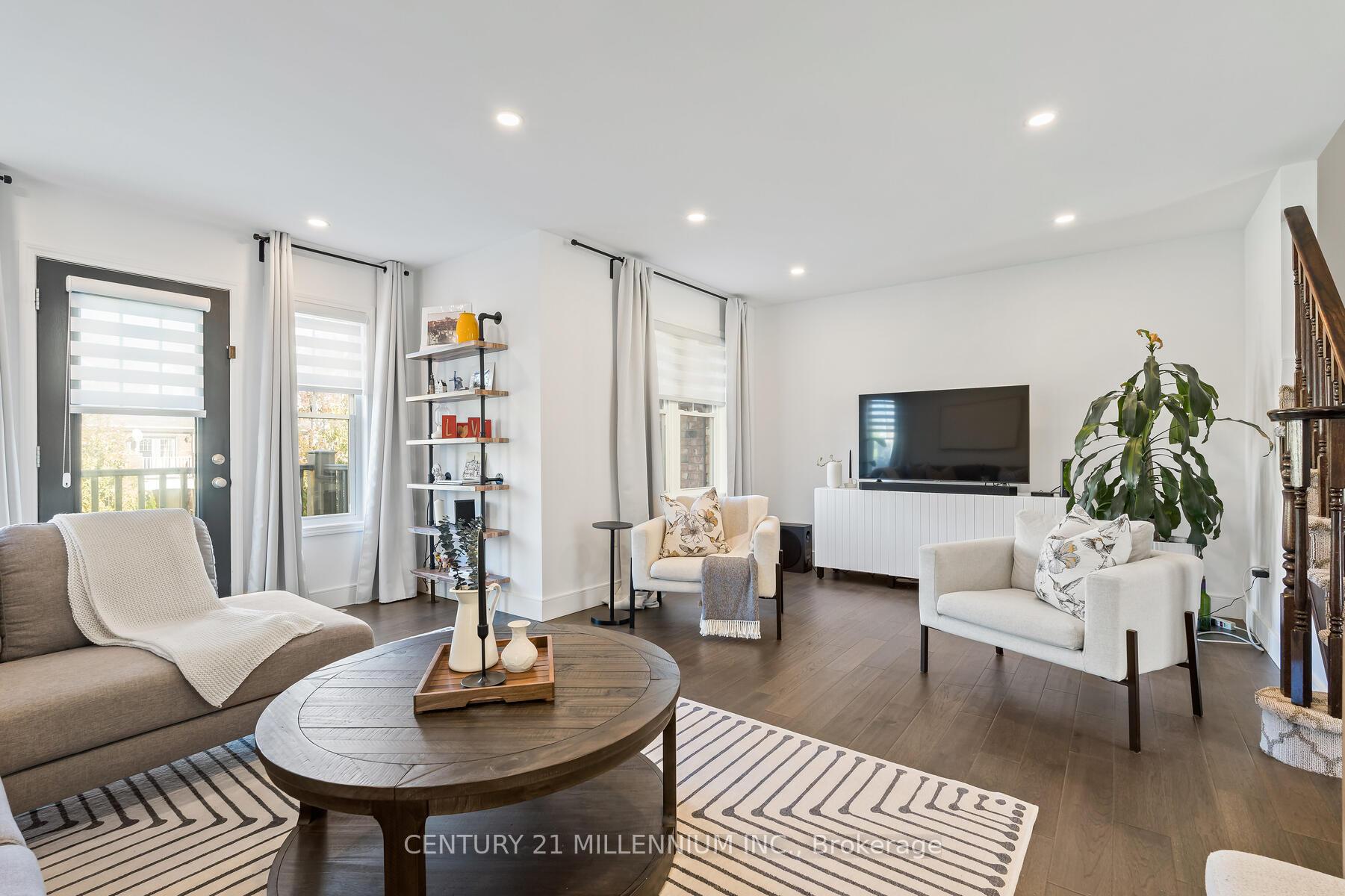 Every inch of this residence speaks to refined designer living. The main floor showcases elegant tray ceilings, oversized baseboards, and custom blinds that frame sun-drenched windows. The versatility of this layout expands your options for hosting, relaxing, or working in comfort. From the moment you step inside, you’ll notice the details: smooth ceilings with LED pot lights, elegant light fixtures, and rich hardwood floors throughout. The gourmet kitchen, complete with a gas stove, newer appliances, and a sleek breakfast island, is as functional as it is stunning ideal for both culinary creations and stylish entertaining. With rare dual walkouts, this home blurs the line between indoor elegance and outdoor leisure. From the living room, step out onto a chic front terrace, the perfect spot for a quiet espresso or simply a moment of reflection. From the dining room, seamless access to a deck with a custom pergola creates an intimate retreat for effortless al fresco dining, summer barbecues, and relaxed lounging. Every angle of this home has been designed to elevate the way you live and entertain. Upstairs, generously sized bedrooms provide sun filled serene retreats. The professionally landscaped front yard adds curb appeal, while the rare double-car garage makes life that much easier. And when it comes to lifestyle, you’re just steps from a vibrant community park featuring picturesque walking trails, a pond, splash pad, playground, soccer fields & basketball courts Move in and start living the life that you have been dreaming of.