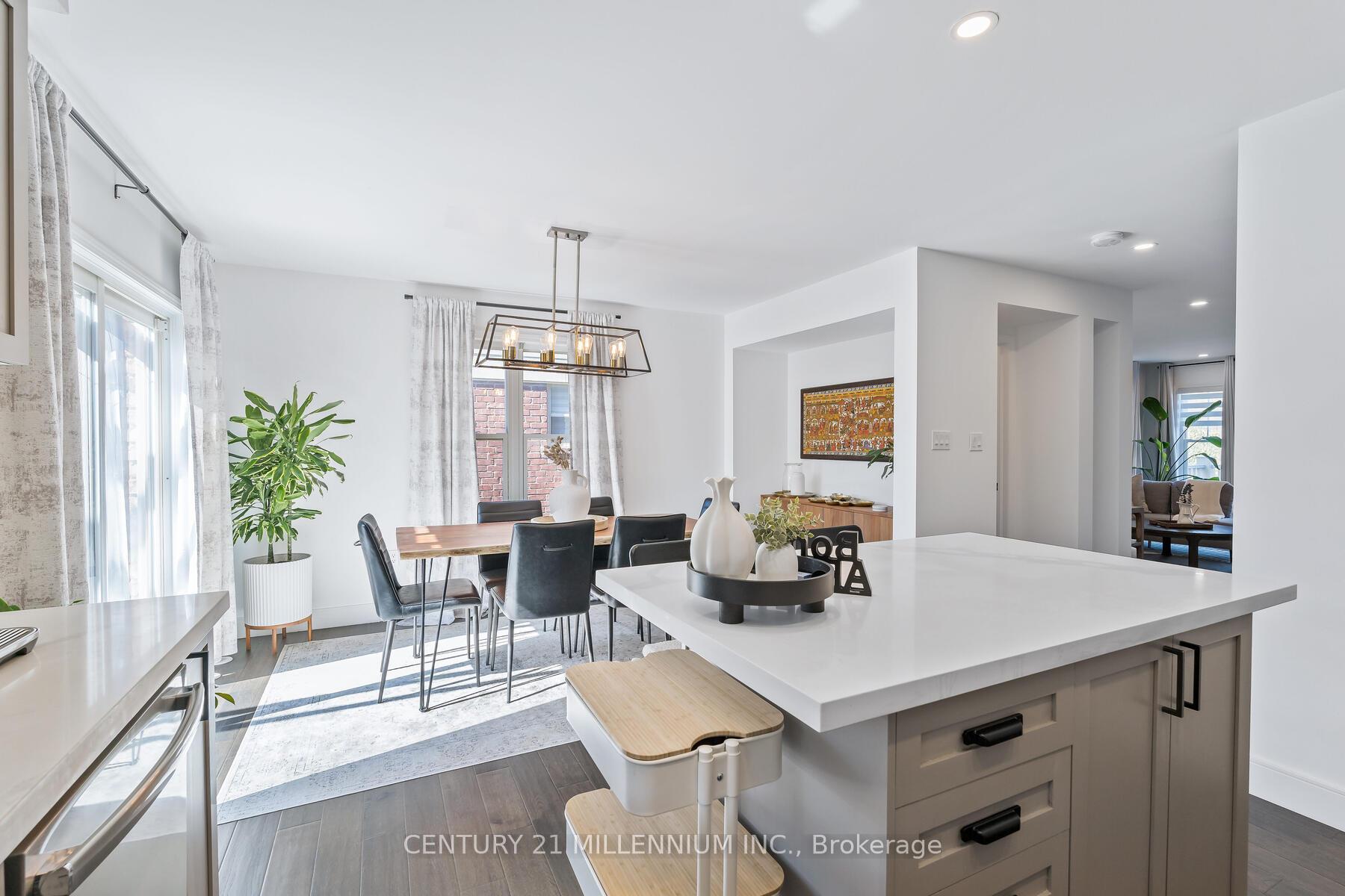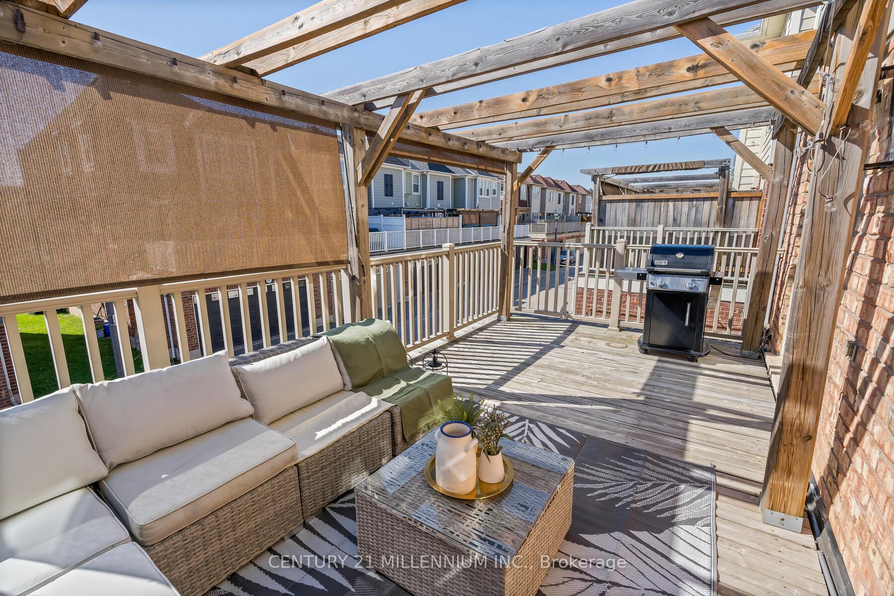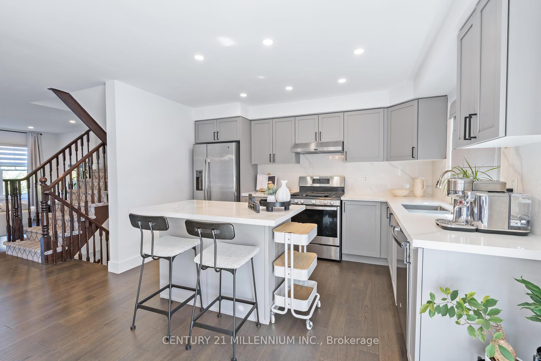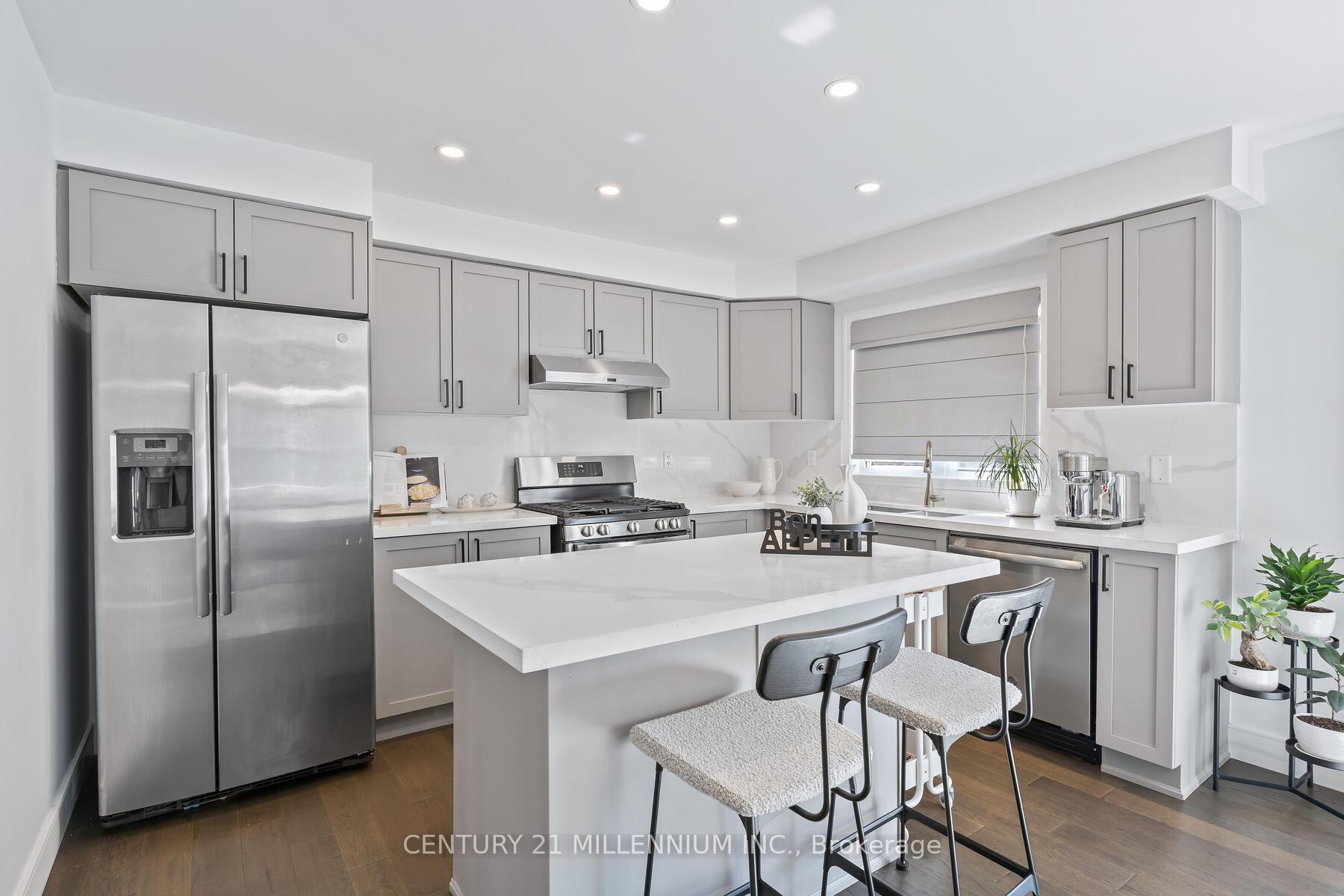 Every inch of this residence speaks to refined designer living. The main floor showcases elegant tray ceilings, oversized baseboards, and custom blinds that frame sun-drenched windows. The versatility of this layout expands your options for hosting, relaxing, or working in comfort. From the moment you step inside, you’ll notice the details: smooth ceilings with LED pot lights, elegant light fixtures, and rich hardwood floors throughout. The gourmet kitchen, complete with a gas stove, newer appliances, and a sleek breakfast island, is as functional as it is stunning ideal for both culinary creations and stylish entertaining. With rare dual walkouts, this home blurs the line between indoor elegance and outdoor leisure. From the living room, step out onto a chic front terrace, the perfect spot for a quiet espresso or simply a moment of reflection. From the dining room, seamless access to a deck with a custom pergola creates an intimate retreat for effortless al fresco dining, summer barbecues, and relaxed lounging. Every angle of this home has been designed to elevate the way you live and entertain. Upstairs, generously sized bedrooms provide sun filled serene retreats. The professionally landscaped front yard adds curb appeal, while the rare double-car garage makes life that much easier. And when it comes to lifestyle, you’re just steps from a vibrant community park featuring picturesque walking trails, a pond, splash pad, playground, soccer fields & basketball courts Move in and start living the life that you have been dreaming of.
