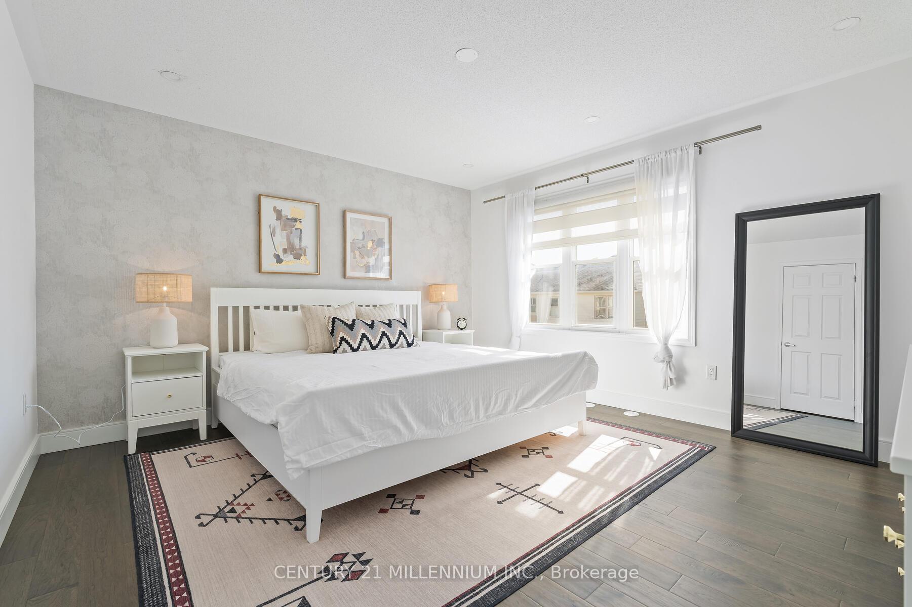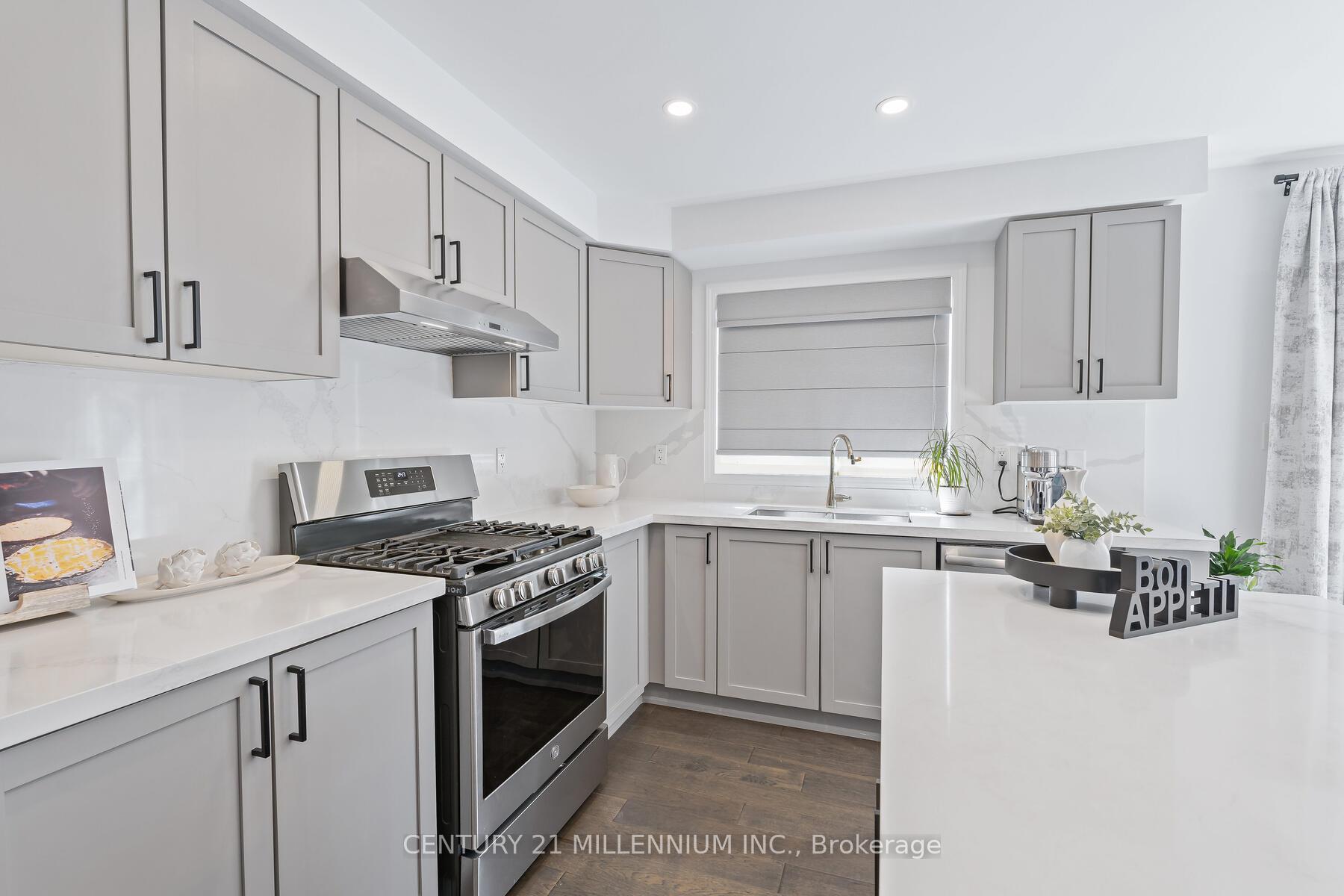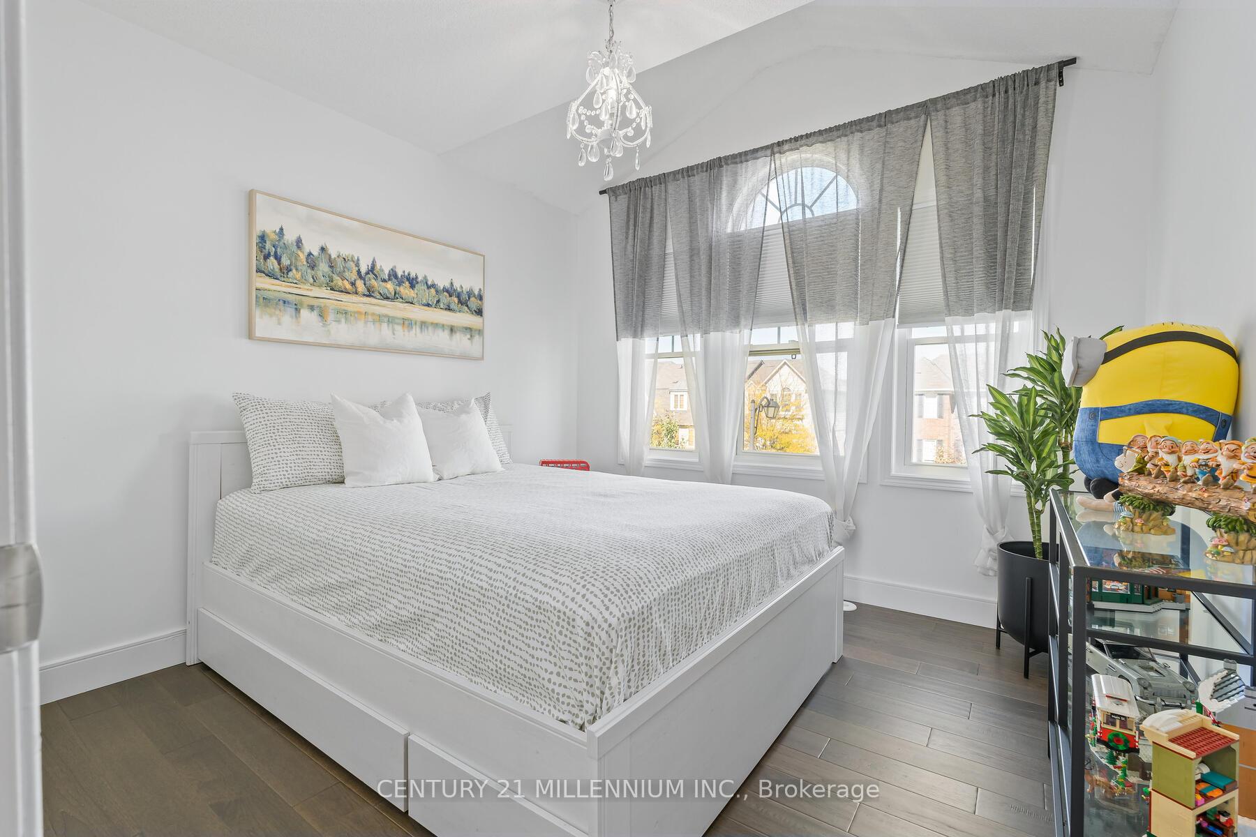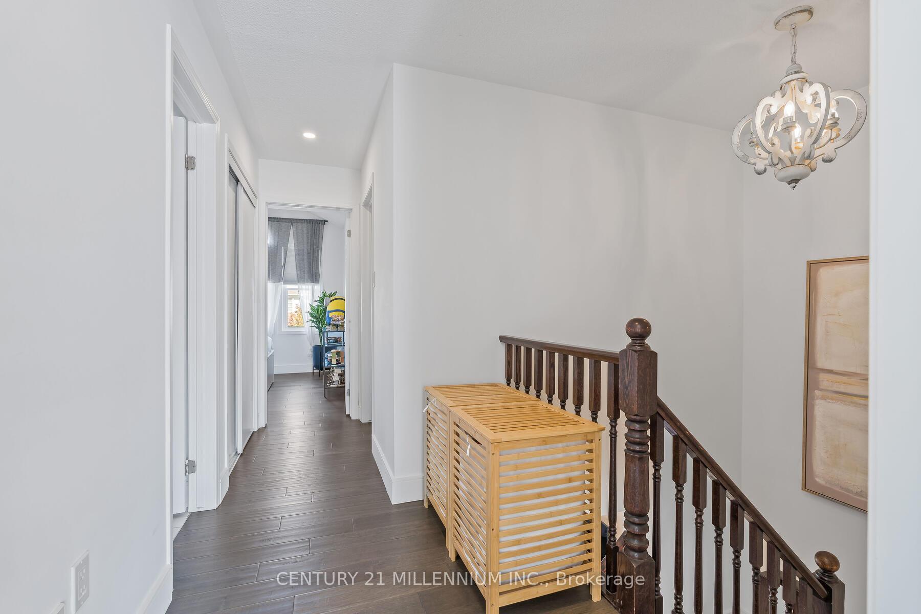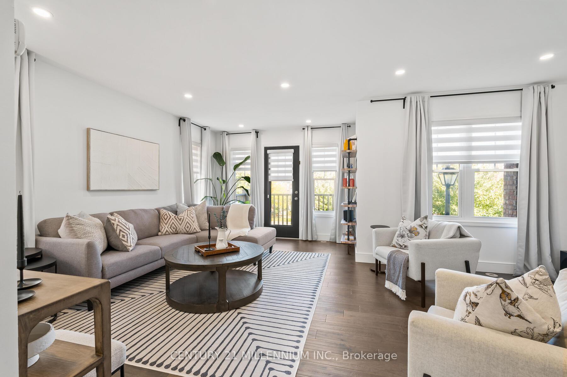 Every inch of this residence speaks to refined designer living. The main floor showcases elegant tray ceilings, oversized baseboards, and custom blinds that frame sun-drenched windows. The versatility of this layout expands your options for hosting, relaxing, or working in comfort. From the moment you step inside, you’ll notice the details: smooth ceilings with LED pot lights, elegant light fixtures, and rich hardwood floors throughout. The gourmet kitchen, complete with a gas stove, newer appliances, and a sleek breakfast island, is as functional as it is stunning ideal for both culinary creations and stylish entertaining. With rare dual walkouts, this home blurs the line between indoor elegance and outdoor leisure. From the living room, step out onto a chic front terrace, the perfect spot for a quiet espresso or simply a moment of reflection. From the dining room, seamless access to a deck with a custom pergola creates an intimate retreat for effortless al fresco dining, summer barbecues, and relaxed lounging. Every angle of this home has been designed to elevate the way you live and entertain. Upstairs, generously sized bedrooms provide sun filled serene retreats. The professionally landscaped front yard adds curb appeal, while the rare double-car garage makes life that much easier. And when it comes to lifestyle, you’re just steps from a vibrant community park featuring picturesque walking trails, a pond, splash pad, playground, soccer fields & basketball courts Move in and start living the life that you have been dreaming of.