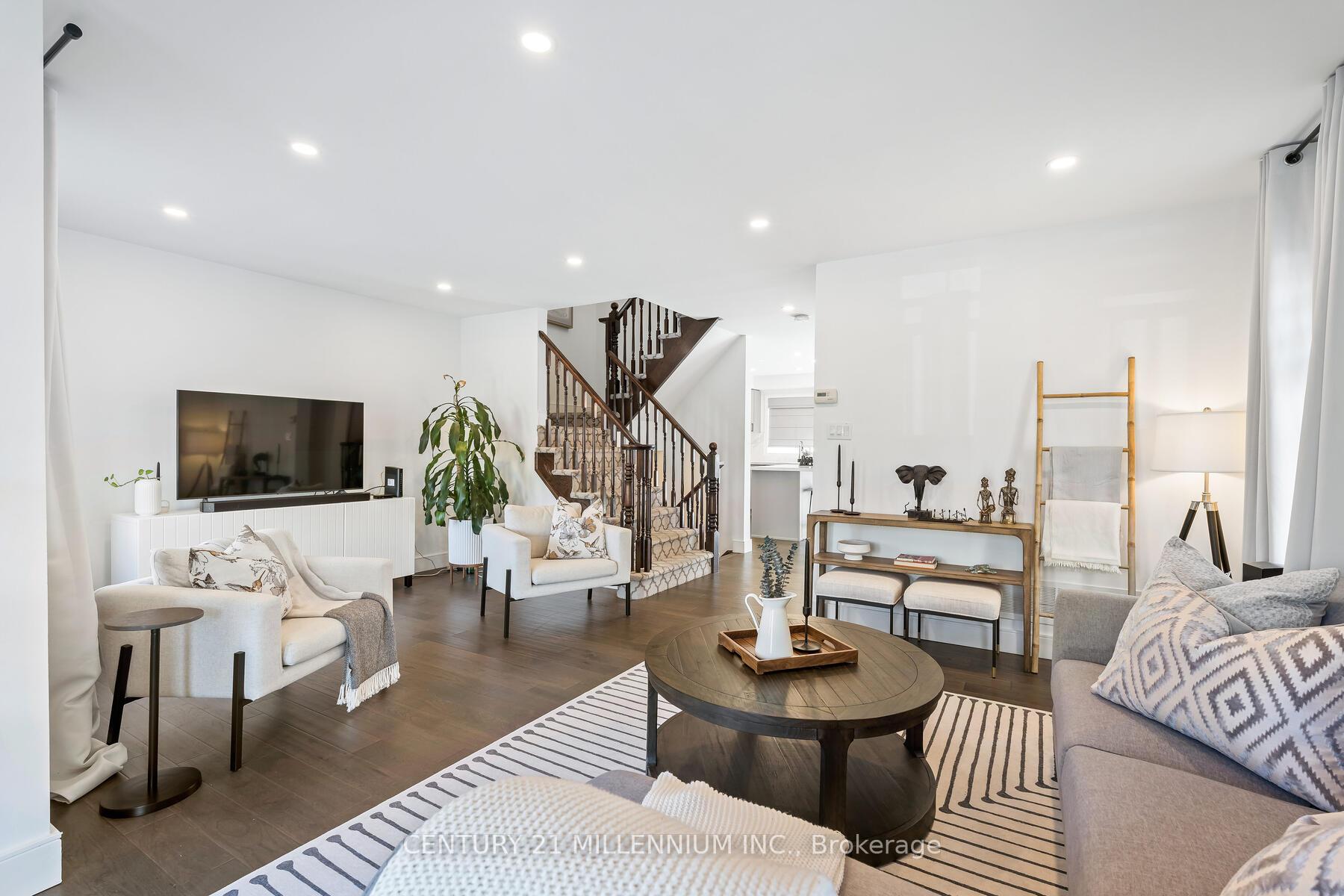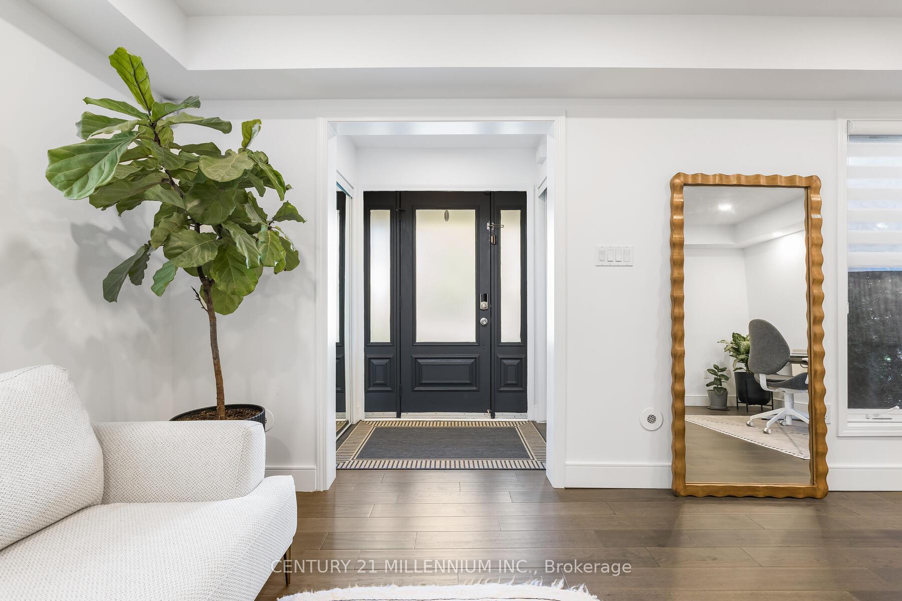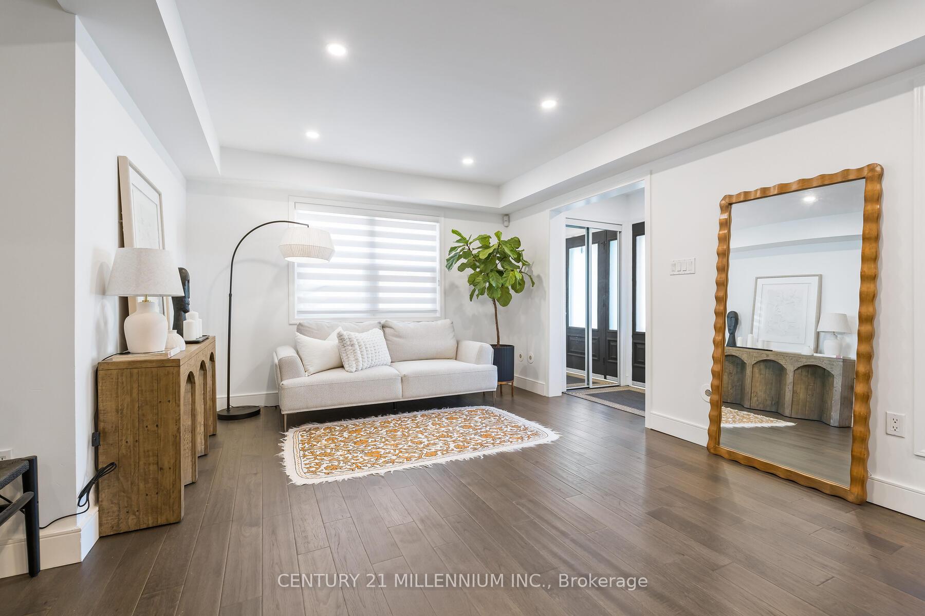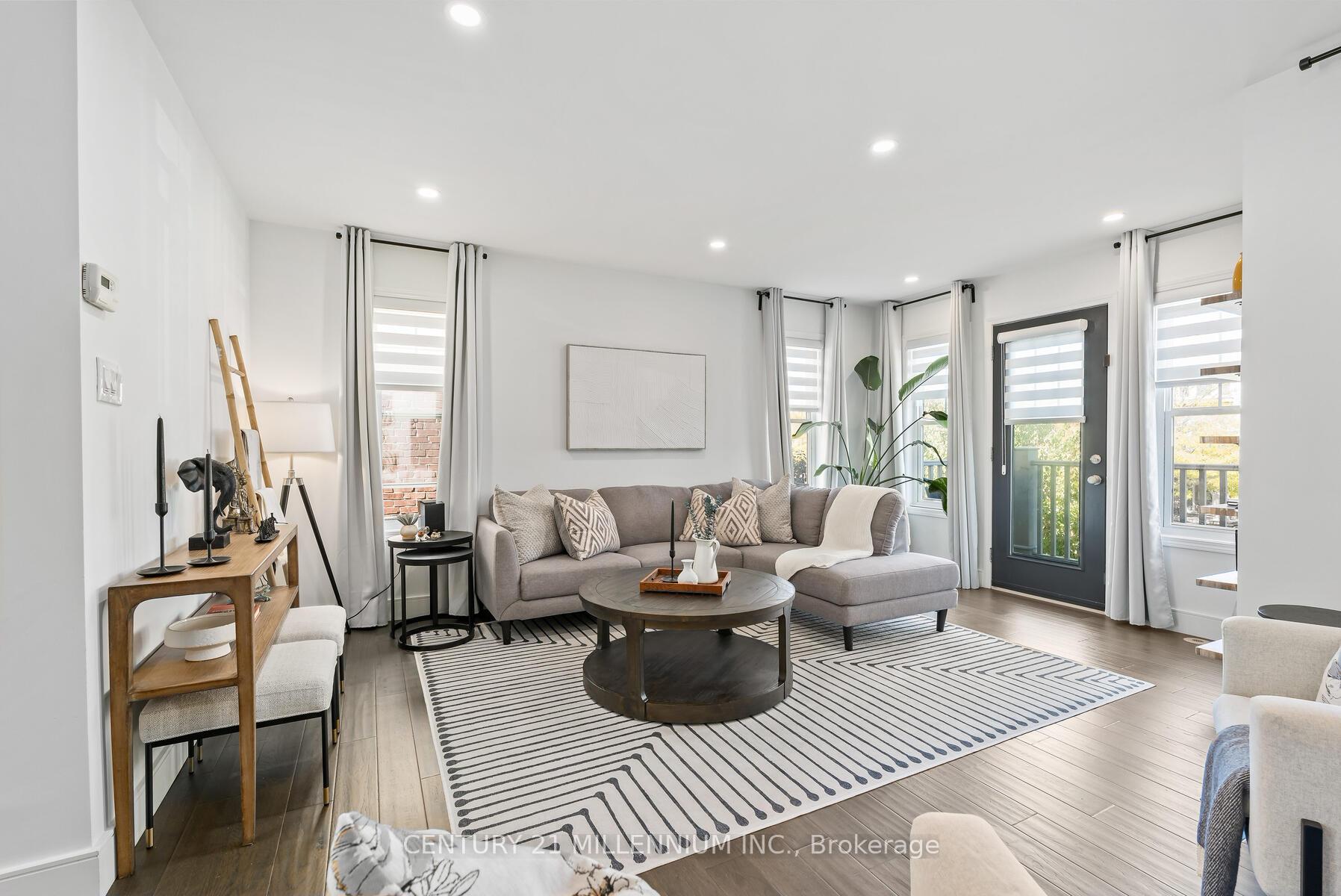 Every inch of this residence speaks to refined designer living. The main floor showcases elegant tray ceilings, oversized baseboards, and custom blinds that frame sun-drenched windows. The versatility of this layout expands your options for hosting, relaxing, or working in comfort. From the moment you step inside, you’ll notice the details: smooth ceilings with LED pot lights, elegant light fixtures, and rich hardwood floors throughout. The gourmet kitchen, complete with a gas stove, newer appliances, and a sleek breakfast island, is as functional as it is stunning ideal for both culinary creations and stylish entertaining. With rare dual walkouts, this home blurs the line between indoor elegance and outdoor leisure. From the living room, step out onto a chic front terrace, the perfect spot for a quiet espresso or simply a moment of reflection. From the dining room, seamless access to a deck with a custom pergola creates an intimate retreat for effortless al fresco dining, summer barbecues, and relaxed lounging. Every angle of this home has been designed to elevate the way you live and entertain. Upstairs, generously sized bedrooms provide sun filled serene retreats. The professionally landscaped front yard adds curb appeal, while the rare double-car garage makes life that much easier. And when it comes to lifestyle, you’re just steps from a vibrant community park featuring picturesque walking trails, a pond, splash pad, playground, soccer fields & basketball courts Move in and start living the life that you have been dreaming of.