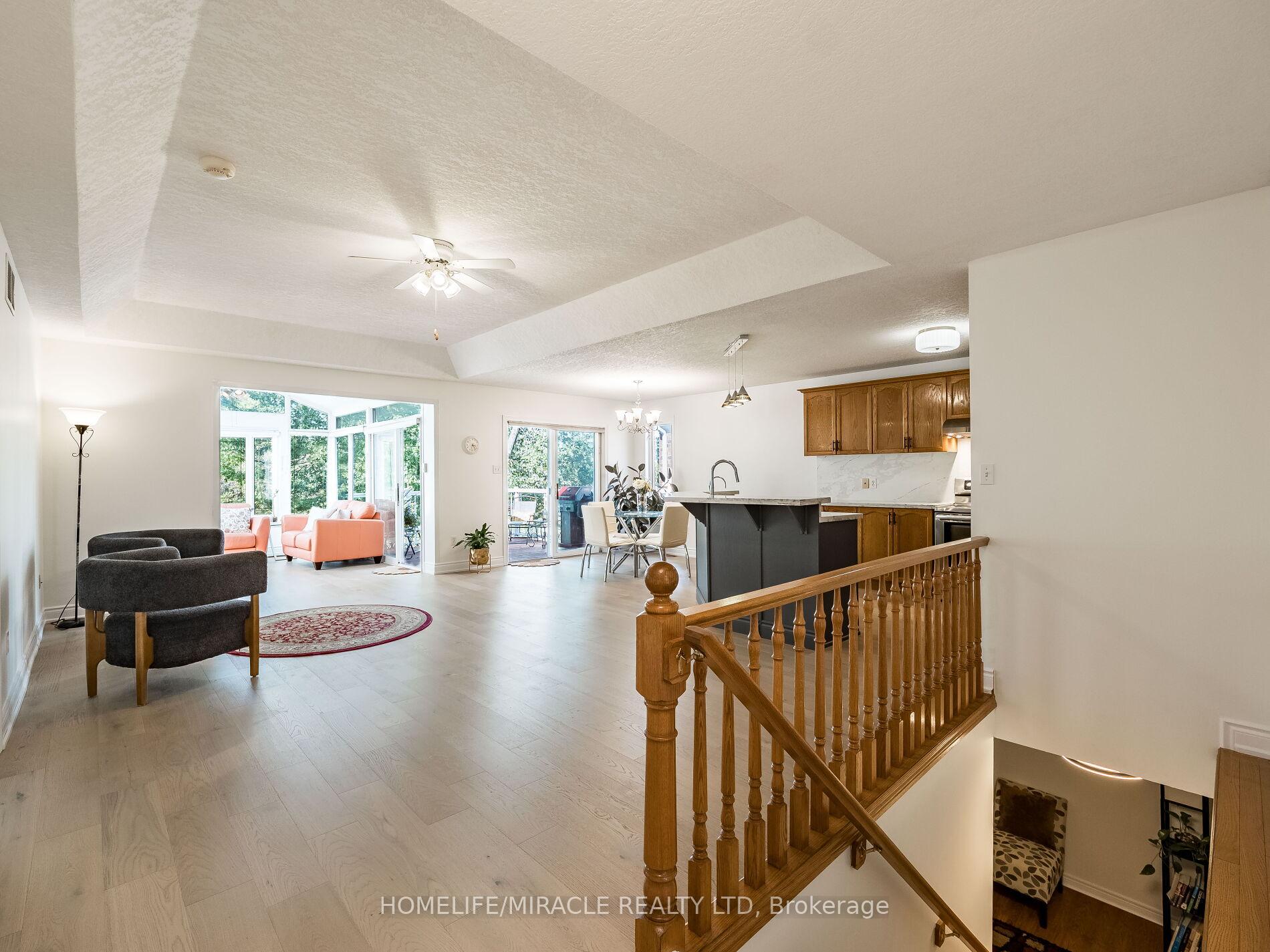 Luxury Walkout Bungalow with Million-Dollar View in Prestigious Rosewood Community, Clair Hills. Experience refined living in this elegant all-brick bungalow, offering a seamless blend of space, style, and natural surroundings in one of Waterloos most sought-after neighbourhoods. This exceptional all-brick 2+2 bedroom, 3 full bath walkout bungalow offers impeccably finished living space with stunning, unobstructed views of the ravine and pond. Set in one of Waterloos most desirable neighbourhoods, this home is a rare blend of elegance, comfort, and natural beauty an ideal retreat right in the city. Designed for comfort and style, the main level welcomes you with rich hardwood flooring, elegant coffered ceilings, and an abundance of natural light. It features two bedrooms, a bright kitchen seamlessly flowing into the living and dining areas, and convenient main floor laundry. A standout feature is the sun-drenched tropical-style sunroom, complete with vaulted ceilings, skylights, and an electric fireplace perfect for any season. Step through the sliding glass doors onto the upper deck to enjoy breakfast with the sounds of nature or unwind under the stars. The walkout basement extends the living space with two generously sized bedrooms and an open-concept Great room featuring a gas fireplace, alongside dedicated areas for reading and fitness. Sliding doors open to a covered lower deck offering tranquil views of the pond and surrounding mature trees an ideal space to relax or entertain. Close to the University of Waterloo, top-rated schools, shopping centers, walking trails, medical facilities, places of worship, and movie theaters, this home perfectly balances comfort, privacy, and convenience. Featuring double decks and a stunning natural setting, this rare gem wont last long.