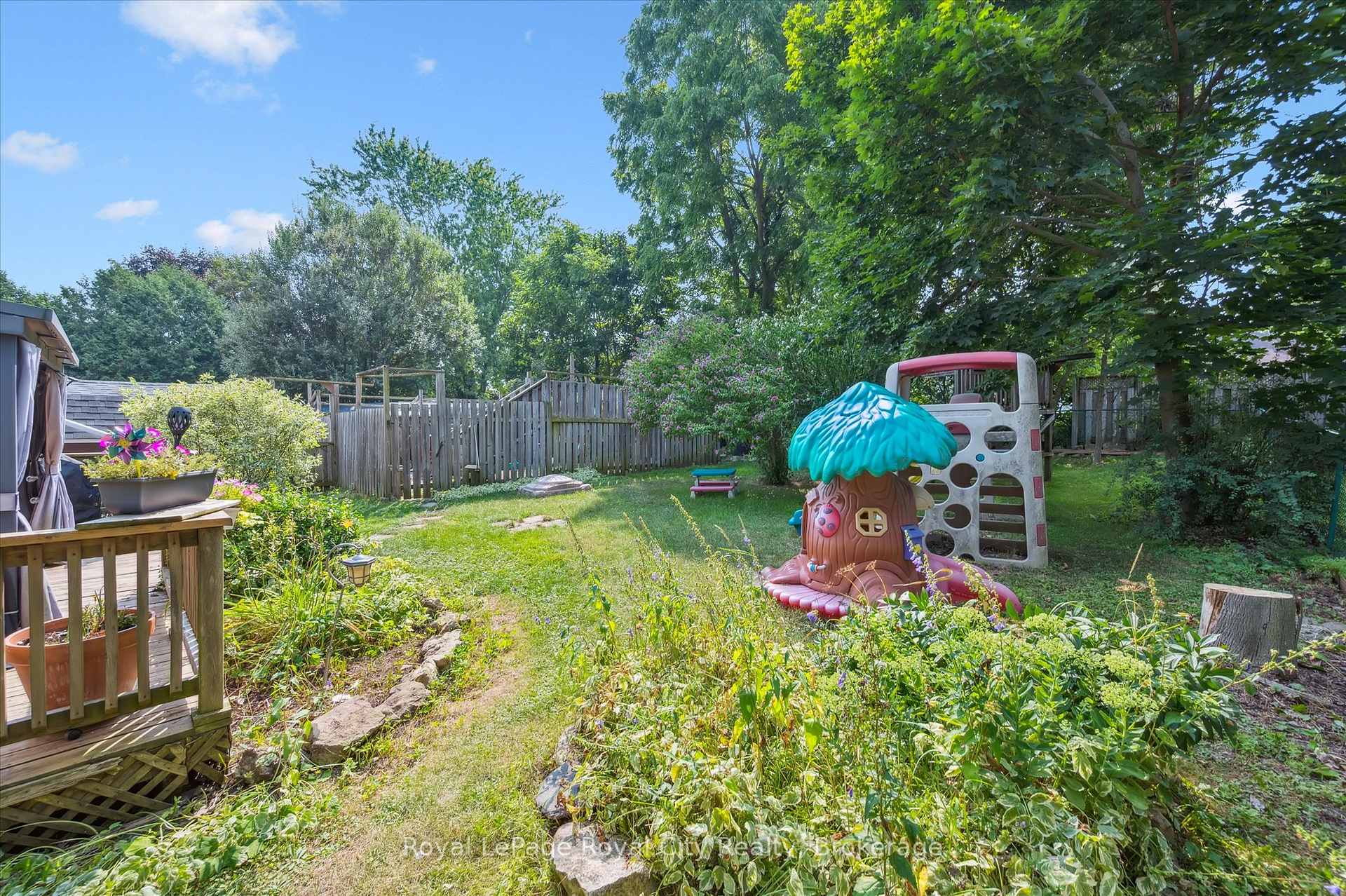 This distinctive stone cottage- originally built in 1880- was thoughtfully expanded in 1994 with a spacious two-storey addition to meet the needs of modern family living. Ideally situated in the heart of downtown Guelph, this exceptional home offers a rare blend of historic character and contemporary comfort that is nestled on a generous lot with parking for four vehicles and the potential to build a garage or workshop. The main floor offers a warm and inviting layout, featuring a bright living room within the addition, a spacious eat-in kitchen, formal dining room, office, and a cozy sunroom- a fantastic space to unwind with your morning coffee or a favourite book. You will also find two well-appointed bedrooms, including the primary suite, a full 4-piece bathroom, and an enclosed porch, all contributing to a functional and versatile main level. The second-storey addition includes four additional, well-sized bedrooms and a second 4-piece bathroom, providing ample space for growing families or guests, while the partially finished basement extends the living area with a recreation room, perfect for movie nights, a games room, or a childrens play area. Step outside to enjoy the large deck and fully fenced backyard with mature trees, offering a peaceful setting for entertaining, gardening, or play. With over 2,600 square feet of living space, this home is ideal for growing families seeking charm, modern livability, and unbeatable walkability. Just steps from the heart of downtown Guelph and walking trails along the Speed River, this property is truly one of a kind.