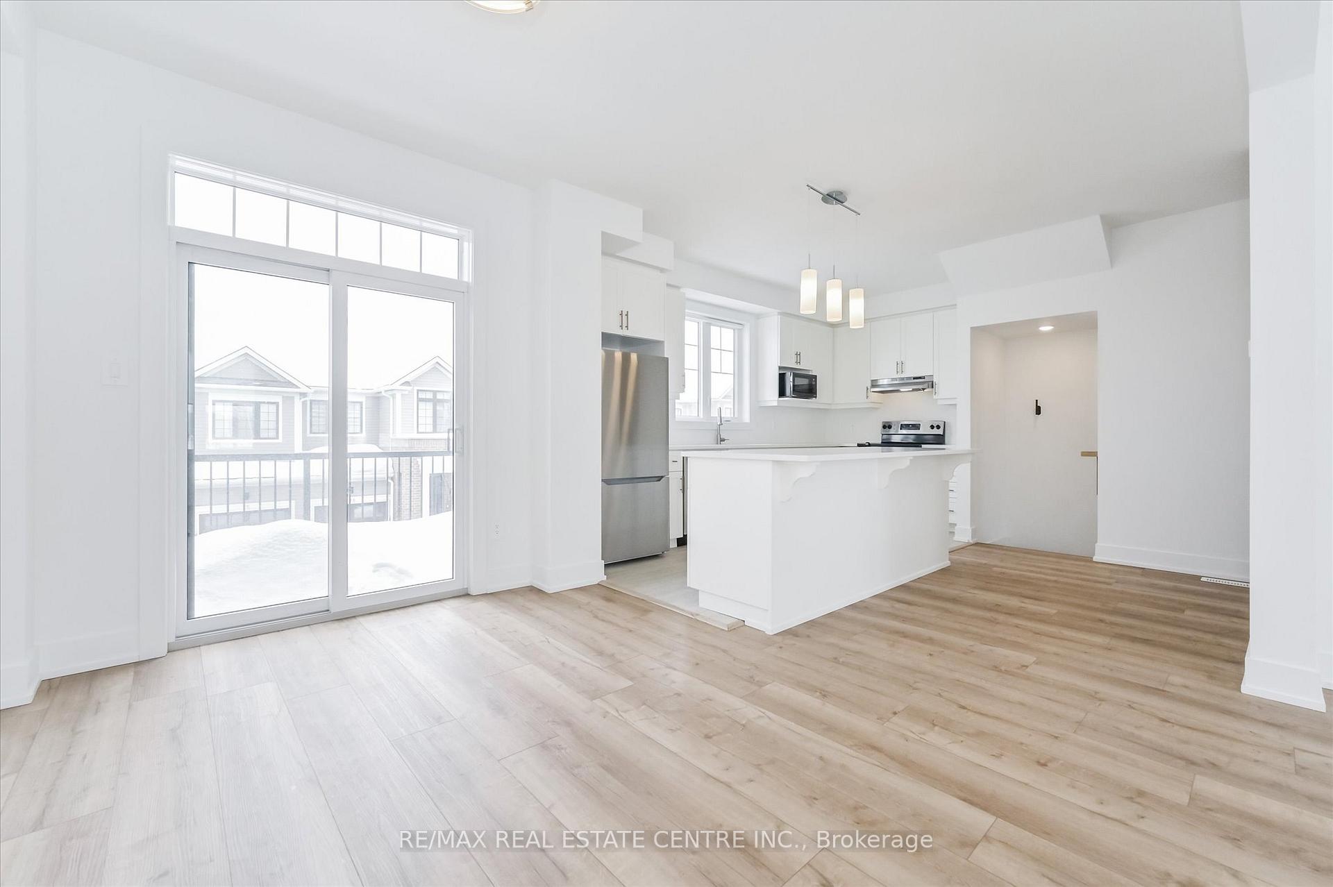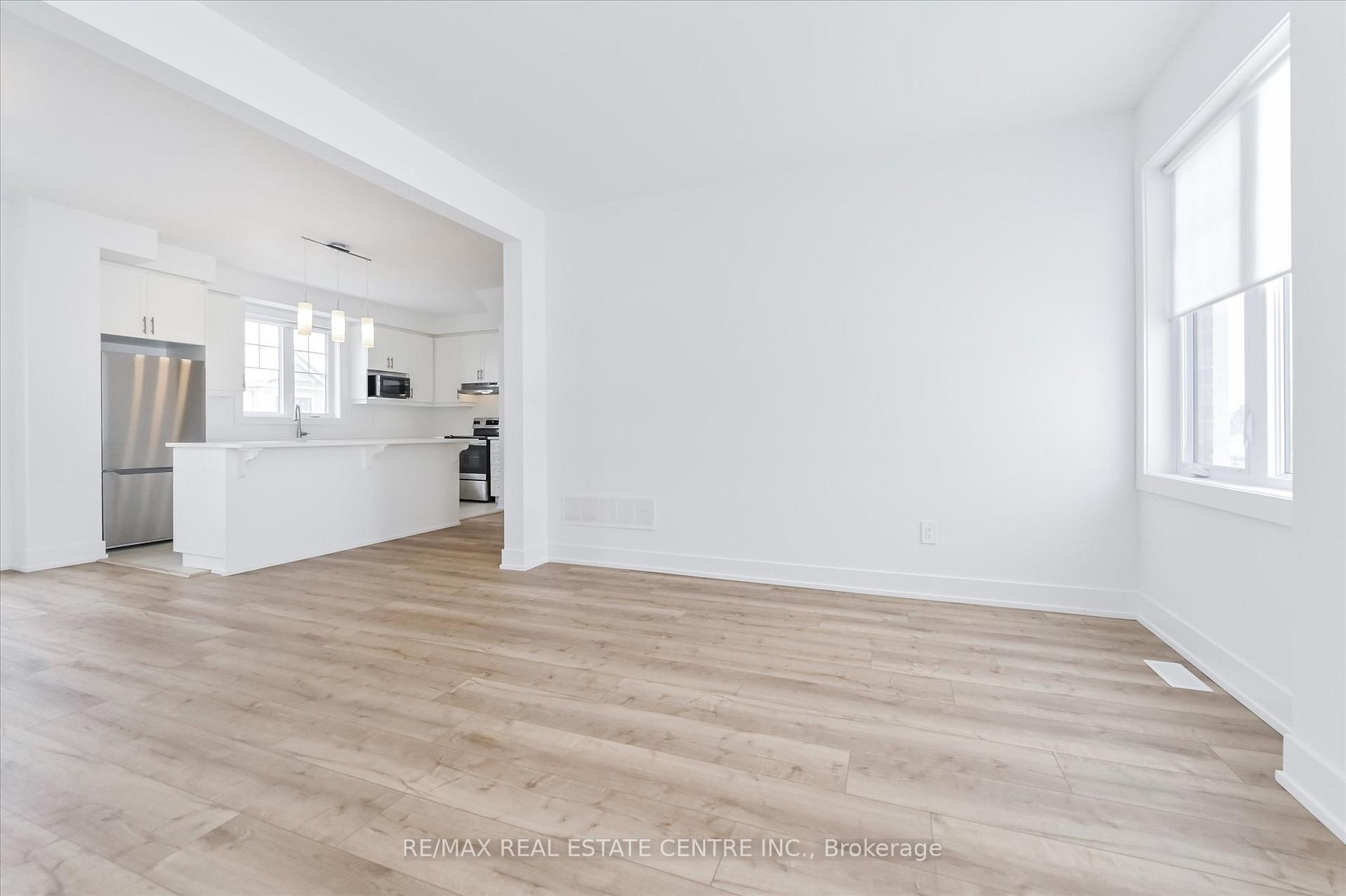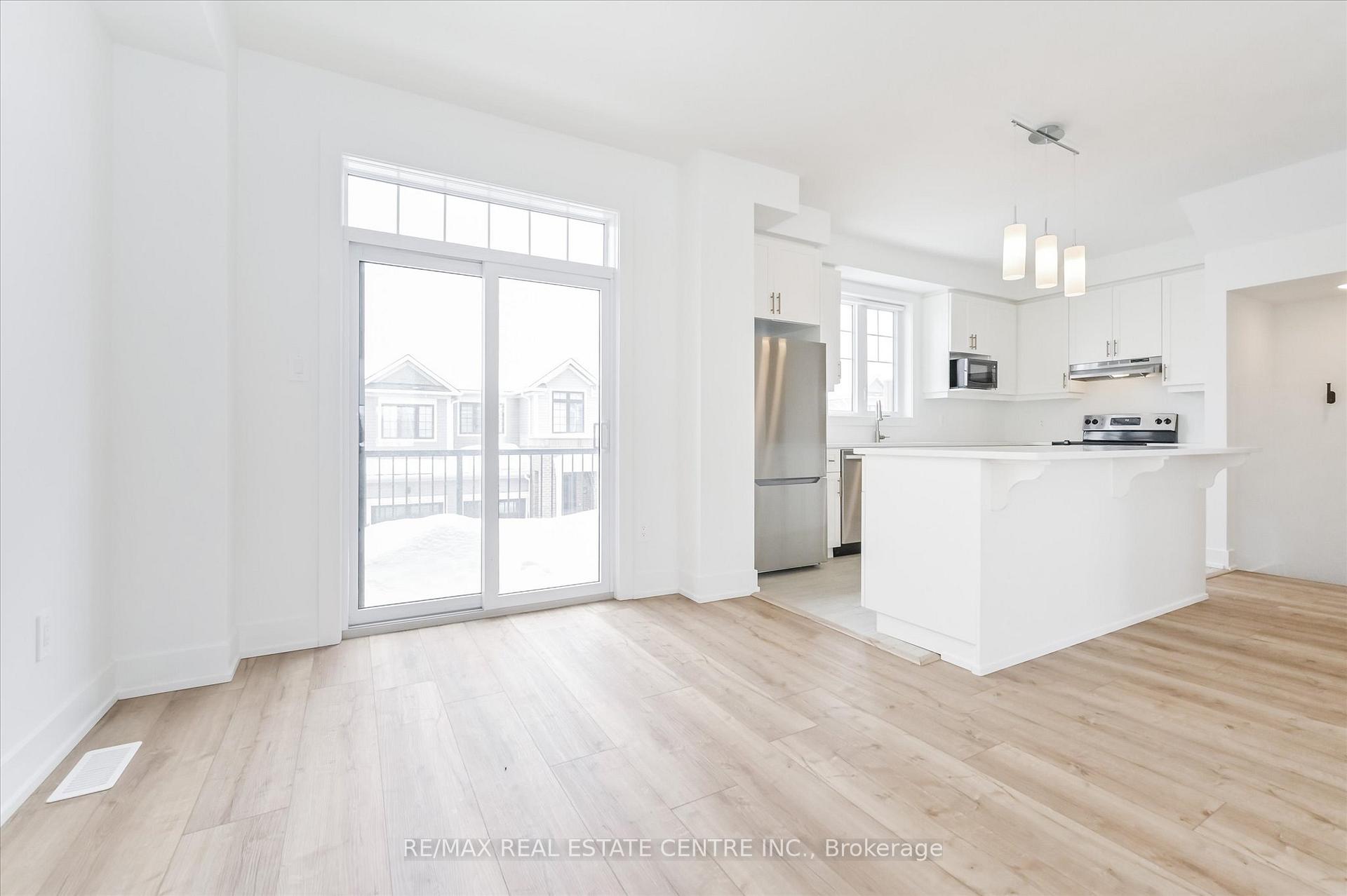 Welcome to this bright & airy modern 3-storey townhome, located in the desirable west end of Orangeville, walking distance to local shopping, walking trails, schools & more. With over 1,700 sq ft of living space and 4 spacious bedrooms for you & your family to enjoy, this 2023 built home offers open concept living at its finest. Walk into a spacious foyer and as you walk down the hall you have convenient access to your garage, and a walk out to a private front porch. As you head upstairs to the second level, you’ll be impressed by the abundance of natural light flooding into the open-concept kitchen, featuring an oversized island allowing tons of room for your dinner food prep, with quartz countertops and stainless steel appliances. The dining room has a large sliding door for you to head out to your spacious balcony, perfect for outdoor relaxation & entertaining. This level also includes a large open concept great room, a convenient powder room and laundry area. On the third level, you’ll find a spacious primary suite complete with a 3-piece ensuite, a generous walk-in closet, and cozy broadloom. There are three more bedrooms and a full 4-piece main bathroom for your friends and family. Don’t miss out on this beautiful home- book your tour today!