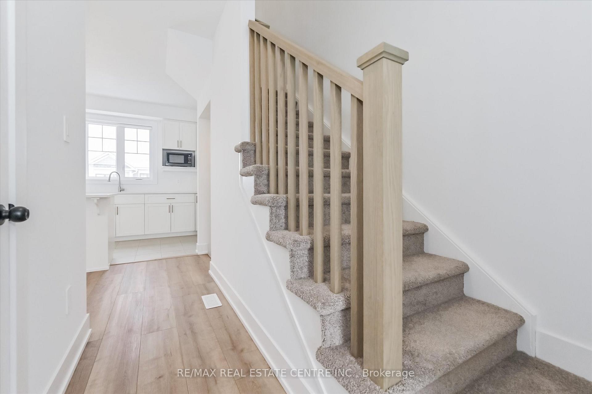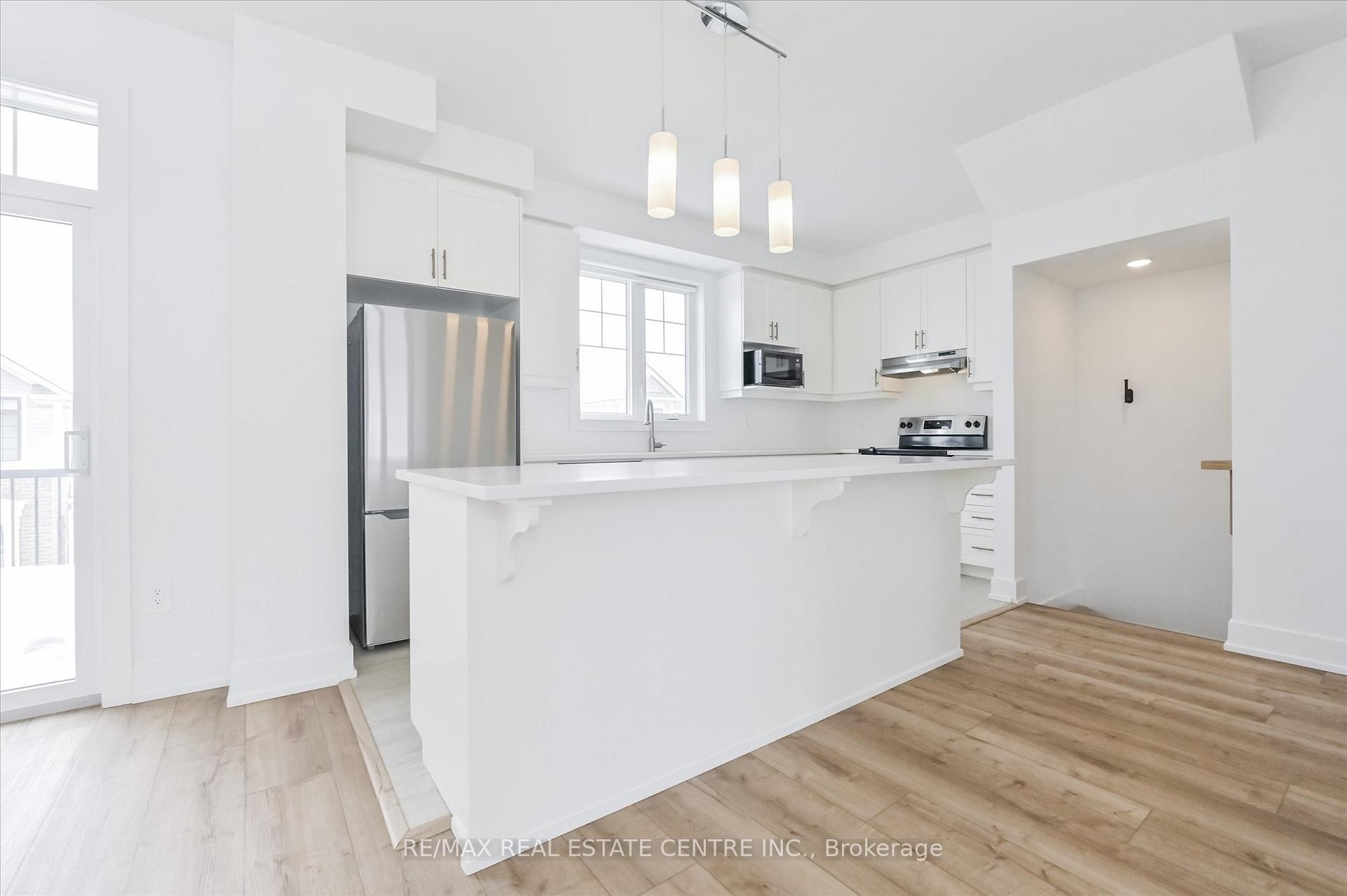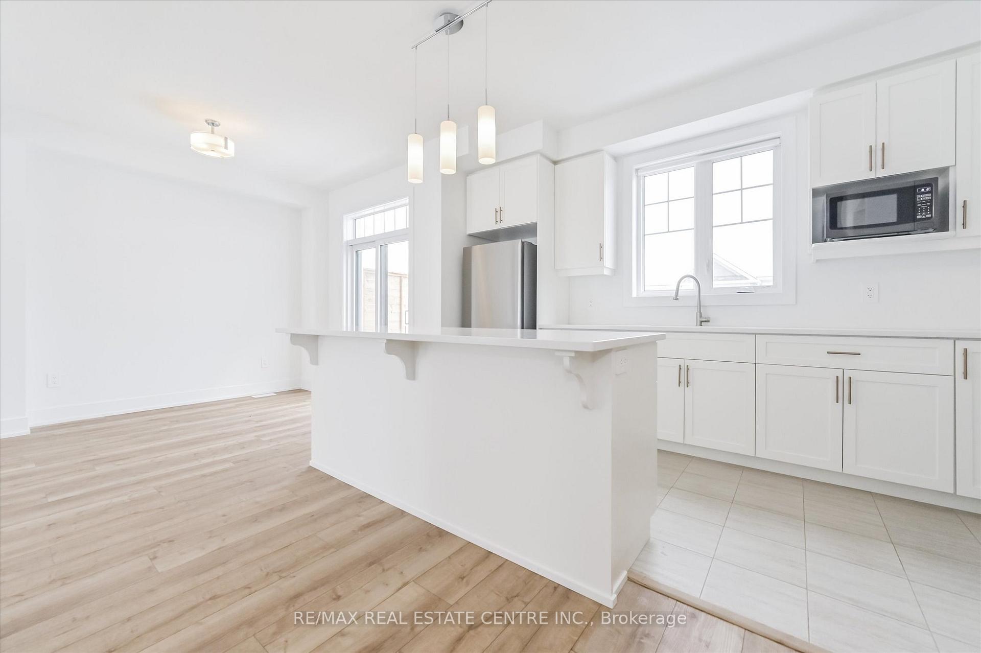 Welcome to this bright & airy modern 3-storey townhome, located in the desirable west end of Orangeville, walking distance to local shopping, walking trails, schools & more. With over 1,700 sq ft of living space and 4 spacious bedrooms for you & your family to enjoy, this 2023 built home offers open concept living at its finest. Walk into a spacious foyer and as you walk down the hall you have convenient access to your garage, and a walk out to a private front porch. As you head upstairs to the second level, you’ll be impressed by the abundance of natural light flooding into the open-concept kitchen, featuring an oversized island allowing tons of room for your dinner food prep, with quartz countertops and stainless steel appliances. The dining room has a large sliding door for you to head out to your spacious balcony, perfect for outdoor relaxation & entertaining. This level also includes a large open concept great room, a convenient powder room and laundry area. On the third level, you’ll find a spacious primary suite complete with a 3-piece ensuite, a generous walk-in closet, and cozy broadloom. There are three more bedrooms and a full 4-piece main bathroom for your friends and family. Don’t miss out on this beautiful home- book your tour today!