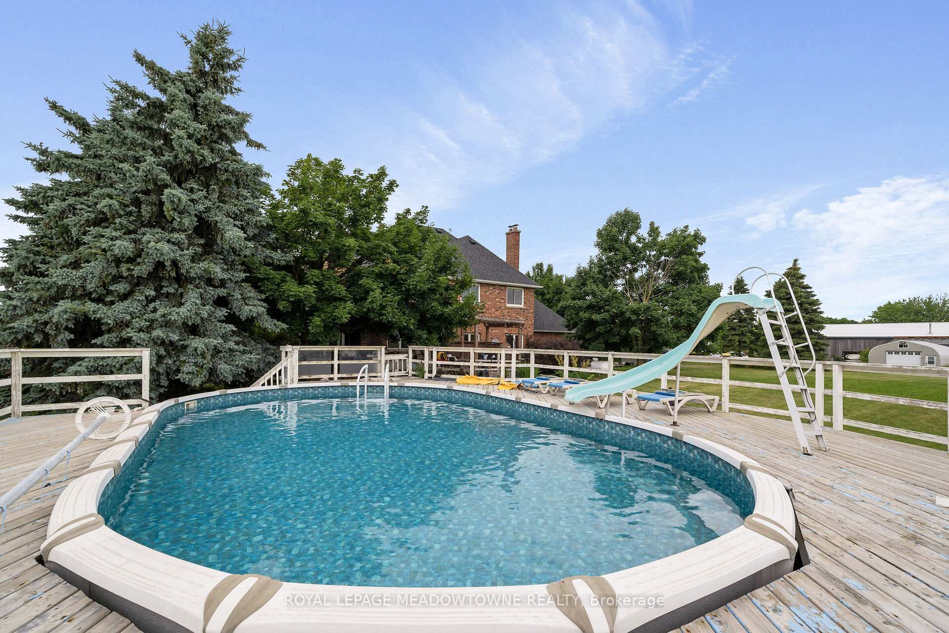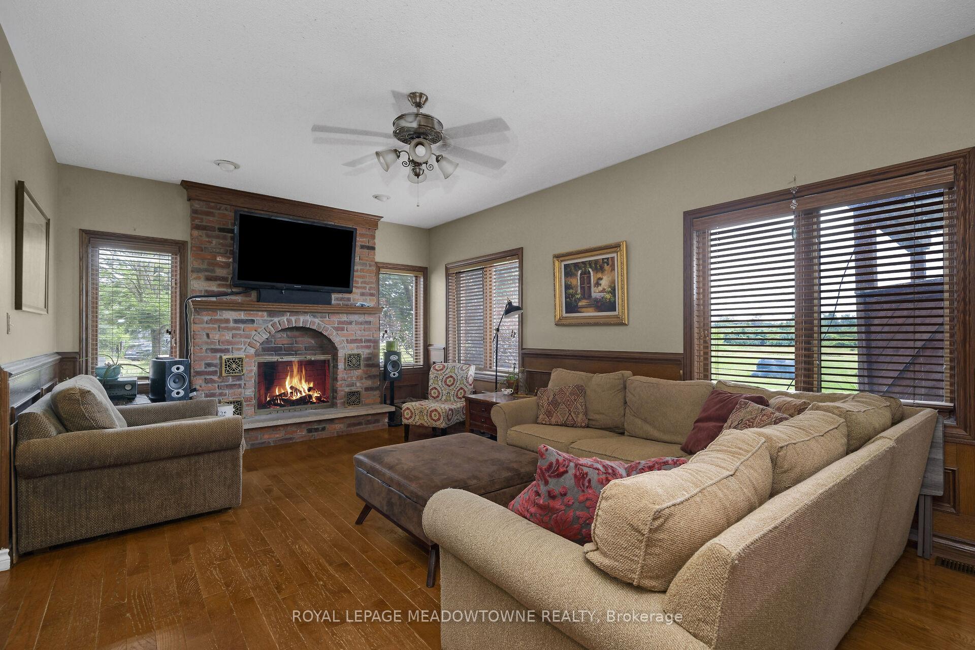 Welcome to your dream country retreat in desirable Rural Flamborougha rare opportunity to own over 22 acres of beautiful land featuring a 2,600 sq ft custom-built home, a 4,500 sq ft commercial-grade shop, and your own private oasis complete with a saltwater propane-heated pool and hot tub. The home boasts a bright eat-in kitchen with abundant cabinetry, a functional island, and walkout to the deckperfect for indoor-outdoor living. The main floor offers hardwood flooring throughout, a formal dining area, a cozy family room with a wood-burning fireplace, a dedicated office, powder room, and mudroom. Upstairs, youll find four generous bedrooms, including a spacious primary suite with a walk-in closet, separate sitting area (ideal as a second office), and a luxurious 5-piece ensuite. The partially finished basement includes laundry, sump pump, and a convenient walk-up to the backyardgreat for in-law potential. The massive shop is ideal for entrepreneurs, currently set up for a fixture business and features in-floor and forced-air heating, an office, bathroom, 200 amp service, its own well and septic, and large overhead doors with direct road access. Zoned A2 with special exception, this is a truly unique property offering both lifestyle and business potential in one incredible package.