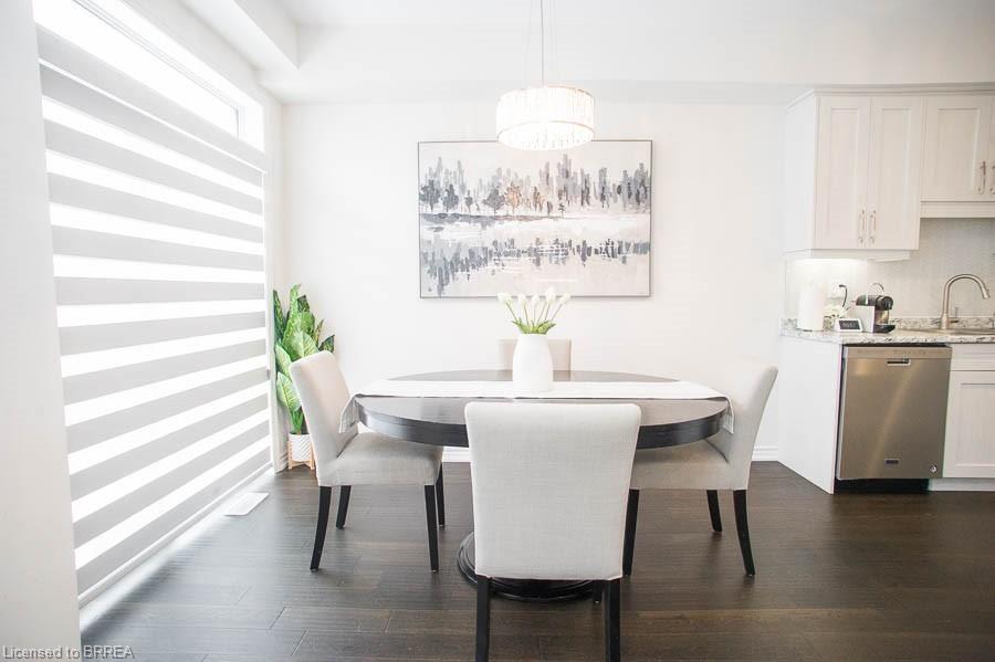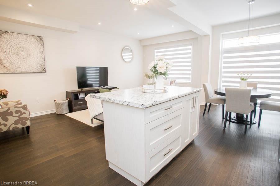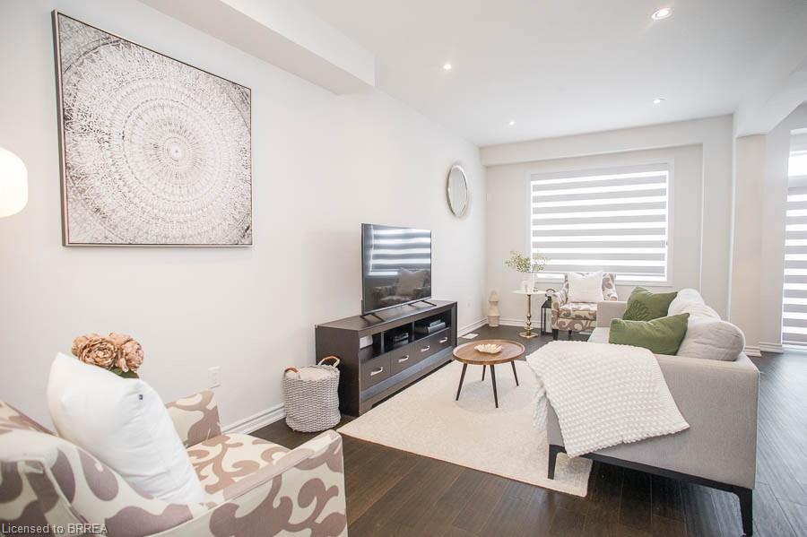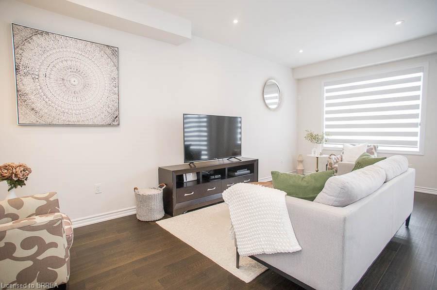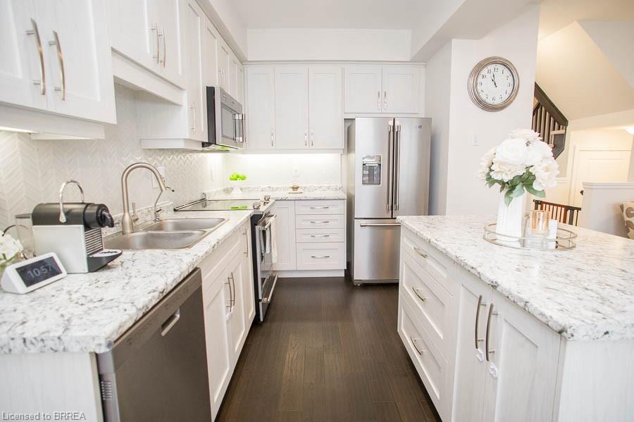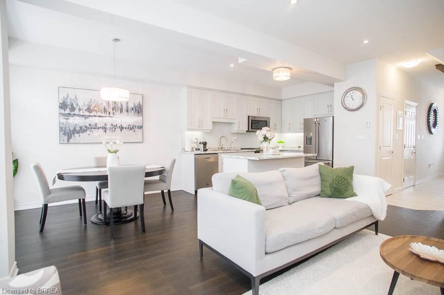 Welcome to 7-1 Tom Brown Drive in the charming town of Paris, Ontario — a beautifully maintained townhouse that offers modern comfort and thoughtful design throughout. This spacious 3-bedroom, 2.5-bathroom home is perfect for families, downsizers, or first-time buyers seeking a low-maintenance lifestyle without compromising on space or style. The covered front porch leads you into a bright, neutrally painted interior where natural light flows effortlessly through the open-concept main floor. The living, dining, and kitchen areas blend seamlessly, creating an ideal space for both everyday living and entertaining. The updated kitchen features crisp white shaker-style cabinetry, stainless steel appliances, a stylish backsplash, under-cabinet valance lighting, a functional island, and pot lights overhead. Sliding doors off the dining area provide easy access to the private backyard, extending your living space outdoors. A convenient 2-piece powder room completes the main level. Hardwood flooring runs through the living room, dining room, and kitchen. Upstairs, the spacious primary bedroom offers a generous walk-in closet, along with two additional closets for ample storage, and a 3-piece en-suite. Two additional well-sized bedrooms each include their own closets, and a second 4-piece bathroom with tub/shower combo completes this level. The lower level houses the washer and dryer, offering additional storage space and potential for future finishing if desired. Situated in a desirable Paris location, this move-in-ready home offers a perfect balance of