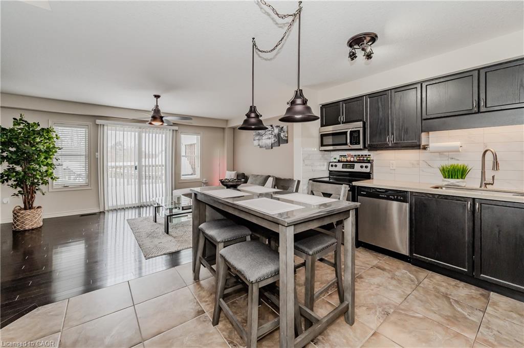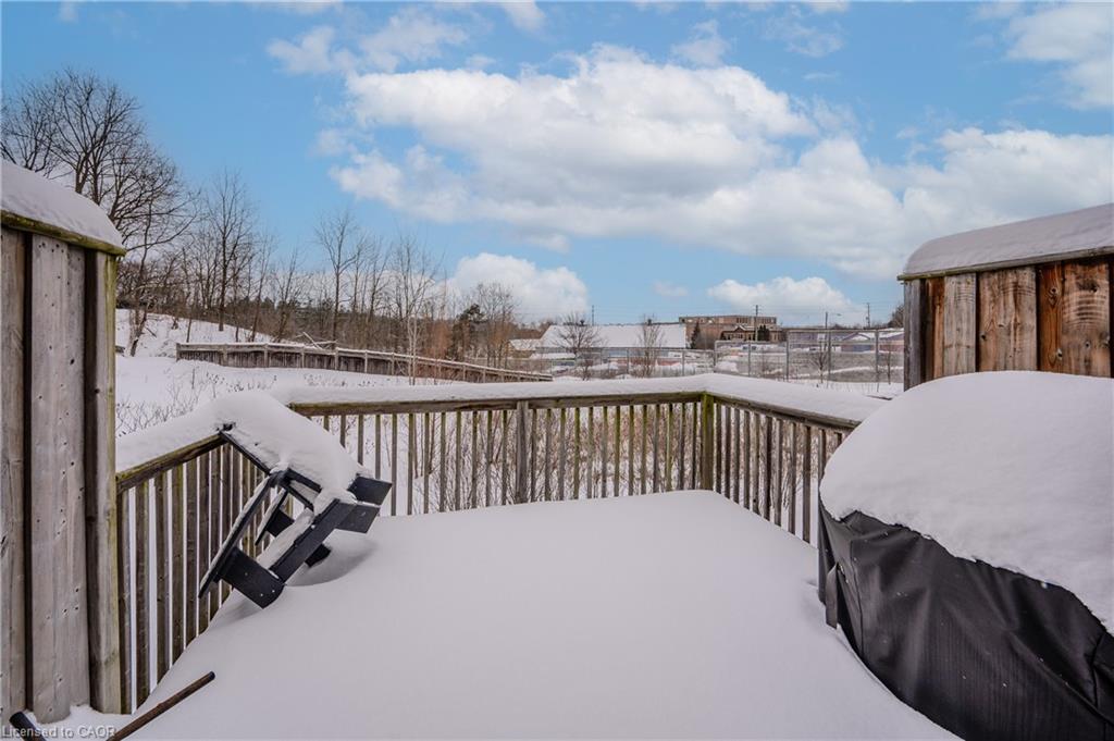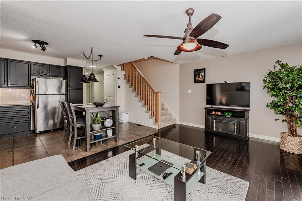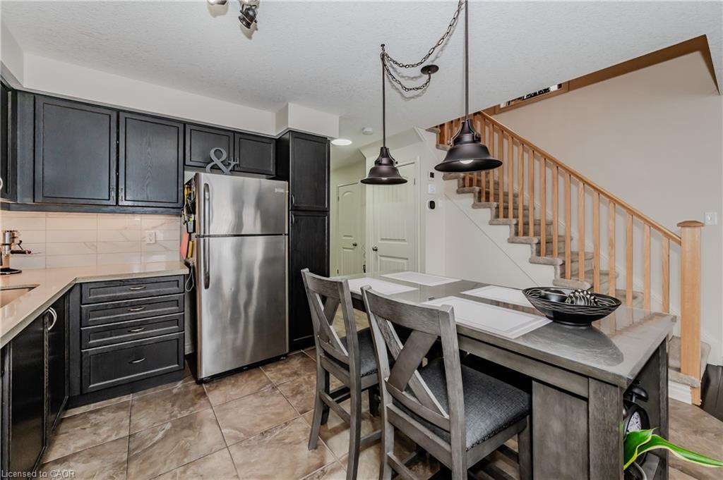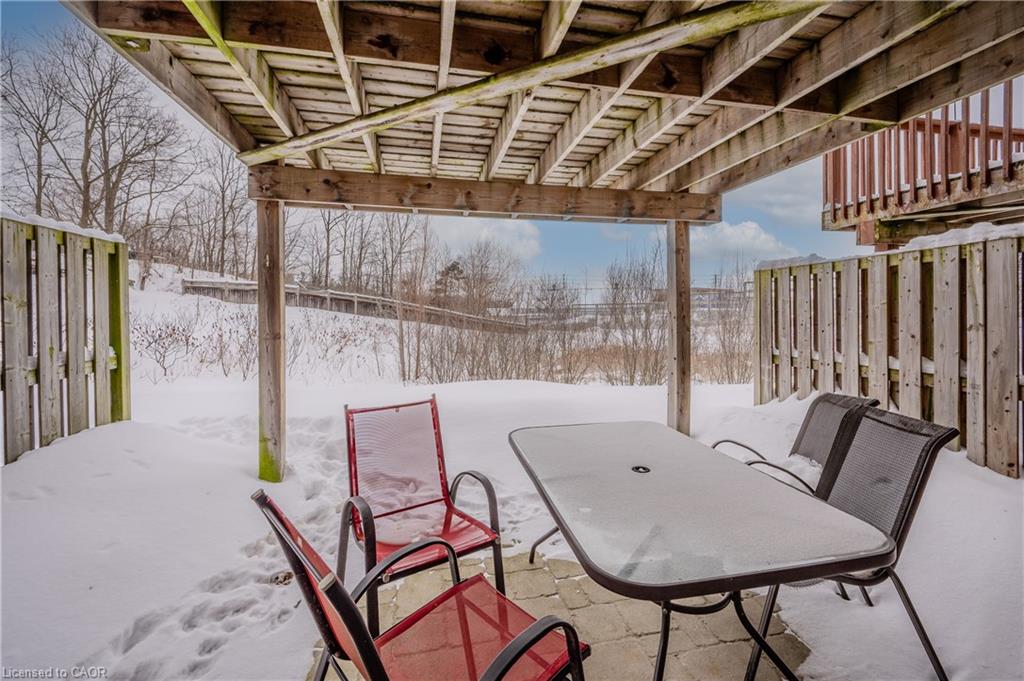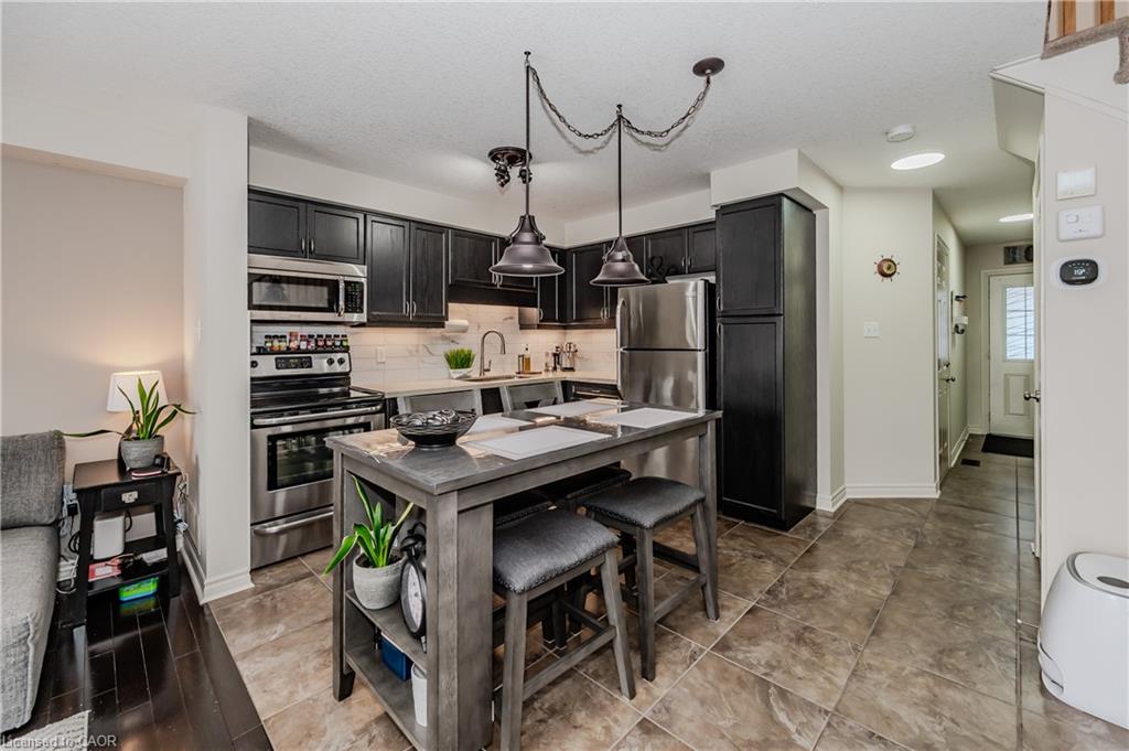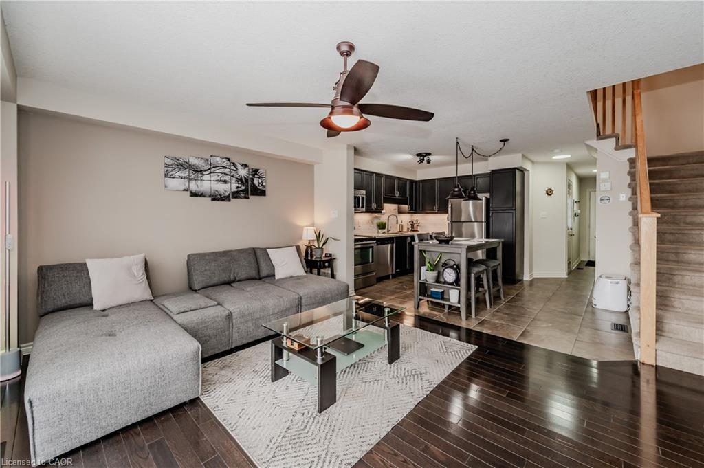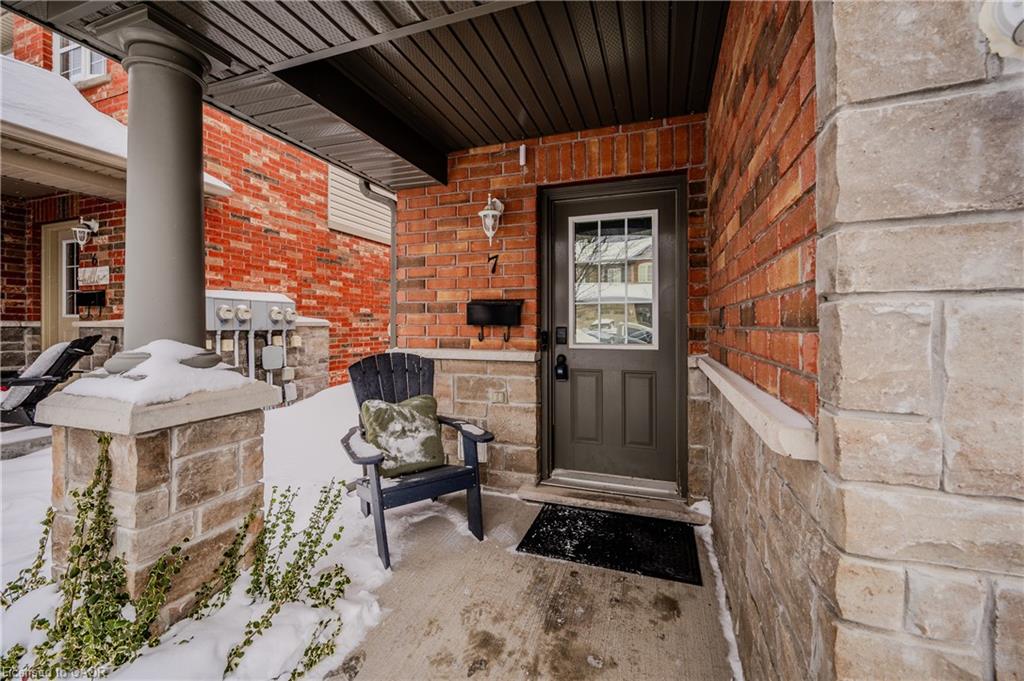 End-Unit Townhome with Walkout Basement & No Rear Neighbours!! Welcome to Unit 7 at 535 Margaret St., Cambridge, a well-maintained end-unit townhome offering extra space, privacy, and a thoughtful layout. With a walkout basement and no rear neighbours, this home provides a peaceful setting both inside and out. The elevated deck is a great spot to enjoy your morning coffee or relax in the evening. Inside, the pride of ownership is evident. The foyer and kitchen feature upgraded 18 x 18 tile flooring, setting the tone for a clean and modern space. The kitchen includes quartz countertops, a stylish backsplash, and stainless steel appliances. There’s room for a dining table or island, and the open-concept layout flows into the bright living area. Large windows, a benefit of an end unit, allow for plenty of natural light, while patio doors provide direct access to the deck. Upstairs, the carpet-free second floor offers a spacious primary bedroom with a walk-in closet, along with two additional good sized bedrooms. The main bathroom is spacious and features an upgraded vanity with stone countertops. A convenient second-floor laundry adds to the homes practicality. The finished walkout basement extends the living space, offering a large rec room with direct access to a lower patio and backyard area. With no rear neighbours, this space feels private and open. There’s also a rough-in for an additional bathroom, giving you the flexibility to add more functionality if needed. Location is also incredible – just minutes from major amenities at Hespeler Rd. and the 401! Move-in ready and set in a great location, this townhome is a fantastic opportunity for buyers looking for space, privacy, and convenience!