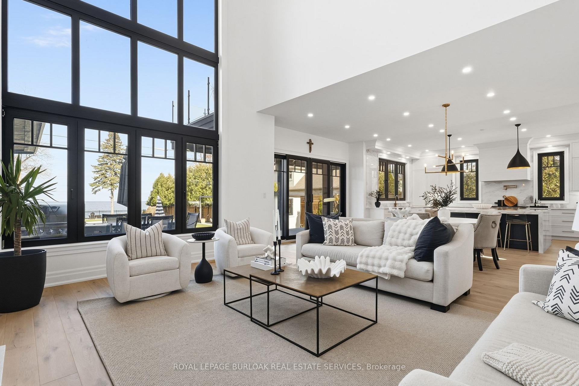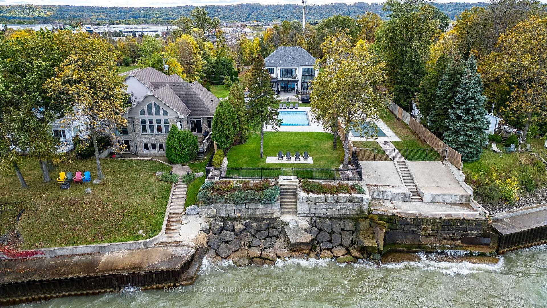 Welcome to an extraordinary custom-built waterfront residence offering luxury, craftsmanship, and breathtaking views at every turn. Designed with top-of-the-line finishes throughout, this home showcases soaring 20-foot ceilings in the great room, expansive windows that frame the water, and a seamless blend of elegance and comfort. The chef’s kitchen is a true showpiece, featuring premium appliances, refined cabinetry, a service pantry -perfect for both everyday living and entertaining. The spa-like primary suite offers a serene retreat with stunning views, a beautifully appointed ensuite, and a spacious walk-in closet. Generously sized bedrooms provide comfort and privacy for family and guests. Step outside to your own resort-style oasis, complete with an inground saltwater heated pool overlooking the shoreline. Covered outdoor spaces and meticulously landscaped grounds create the ideal setting for relaxation or gatherings in every season. An elevator provides effortless access to all three levels, enhancing convenience and accessibility. The 3-car garage, spacious mudroom, and main-floor laundry add exceptional functionality, making daily living as comfortable and practical as it is luxurious.