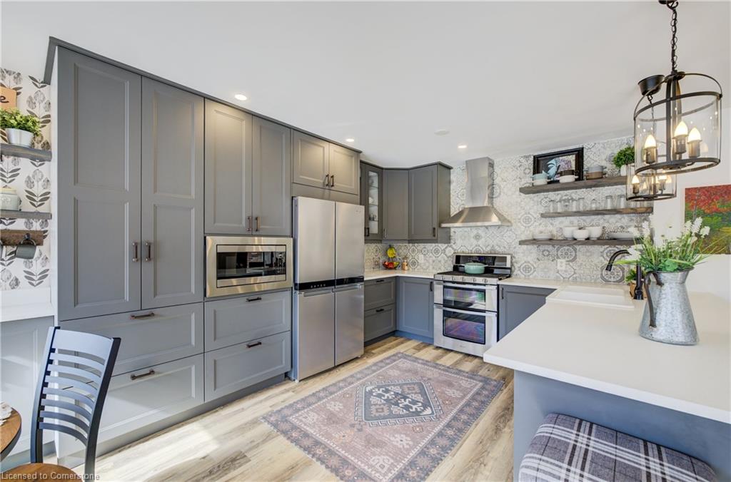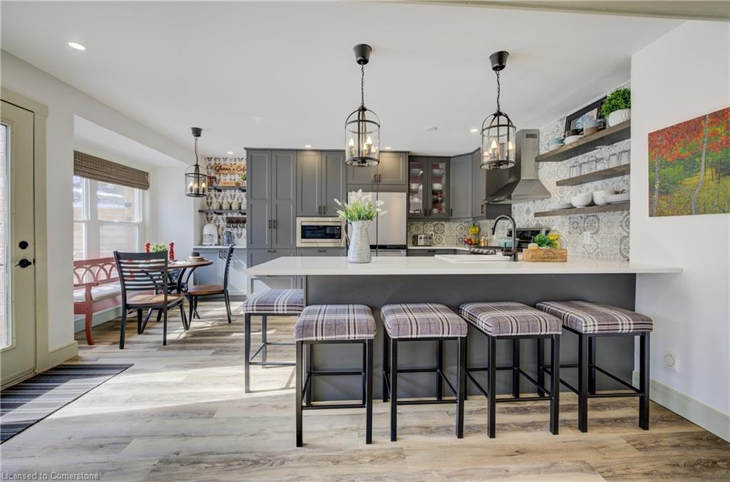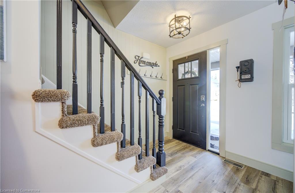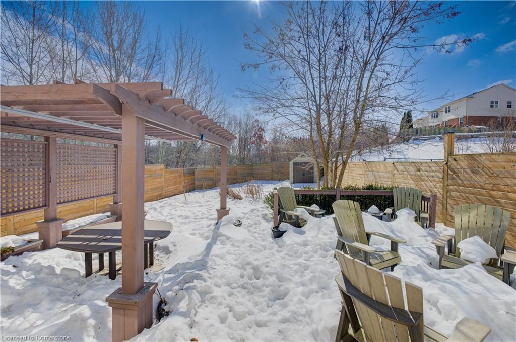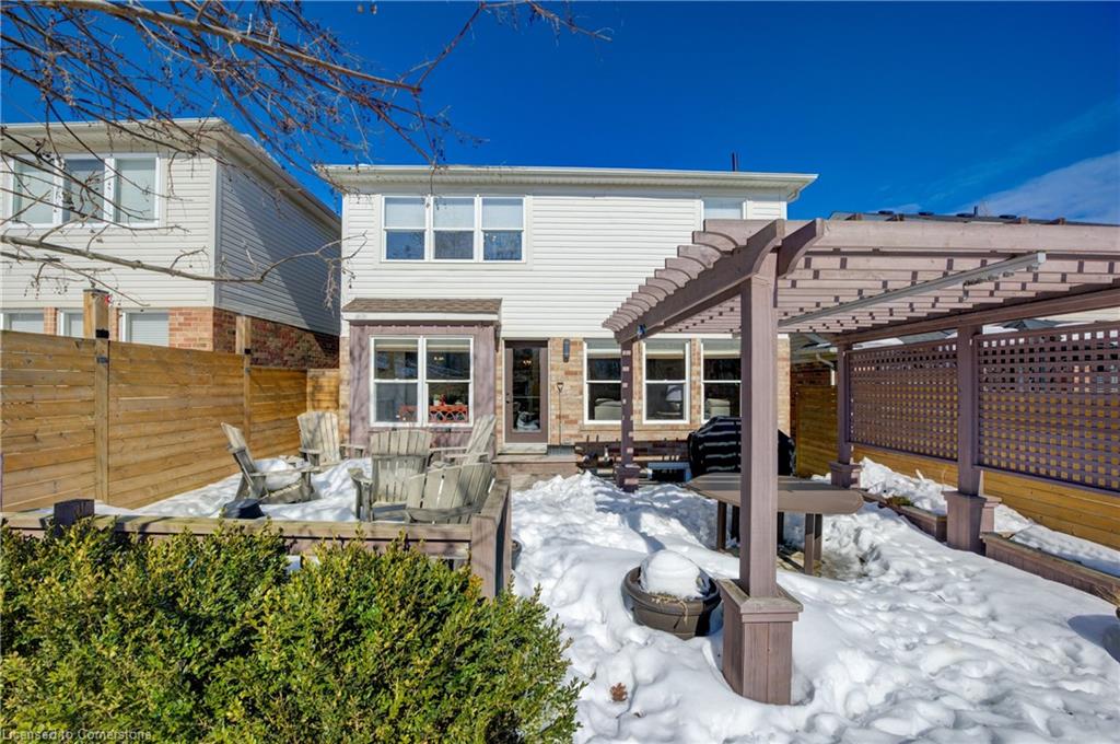 IMMACULATE HOME W/ RUSTIC CHARM, MINUTES FROM THE 401! This Mattamy home is more than meets the eye—meticulously detailed throughout! The stunning main floor makes perfect use of space, blending contemporary rustic charm with timeless elegance. From accent walls and a white shiplap ceiling to bright windows that flood the space with natural light, every detail shines. The dreamy kitchen is a true showstopper, featuring ample cabinetry, a coffee bar, a stylish tiled backsplash, and island seating—ideal for entertaining. Enjoy seamless indoor-outdoor living with a garden door leading to the fully fenced backyard, complete with a deck and pergola. Upstairs, you’ll find 3 spacious bedrooms and 2 full bathrooms, including a beautifully renovated 4pc ensuite. The second bathroom is conveniently shared between the 2 additional bedrooms, and the upper-level laundry adds ease to everyday living. With over 2,400 sq. ft. of finished living space, the bright lower level offers the perfect rec room, future work-from-home space, and a 4th bedroom. Notable features include a sump pump, sewage pump, water softener 2024, 2019 roof, 2015 furnace, 2013 A/C, garage door opener with remotes, pot lights, new light fixtures, and 3.5 bathrooms in total. Large windows throughout enhance the home’s airy feel. Nestled in a sought-after, multicultural neighbourhood, this home is within walking distance to places of worship, parks, trails, and many amenities. Plus, it’s just minutes from Highway 401! Your DREAM home awaits!