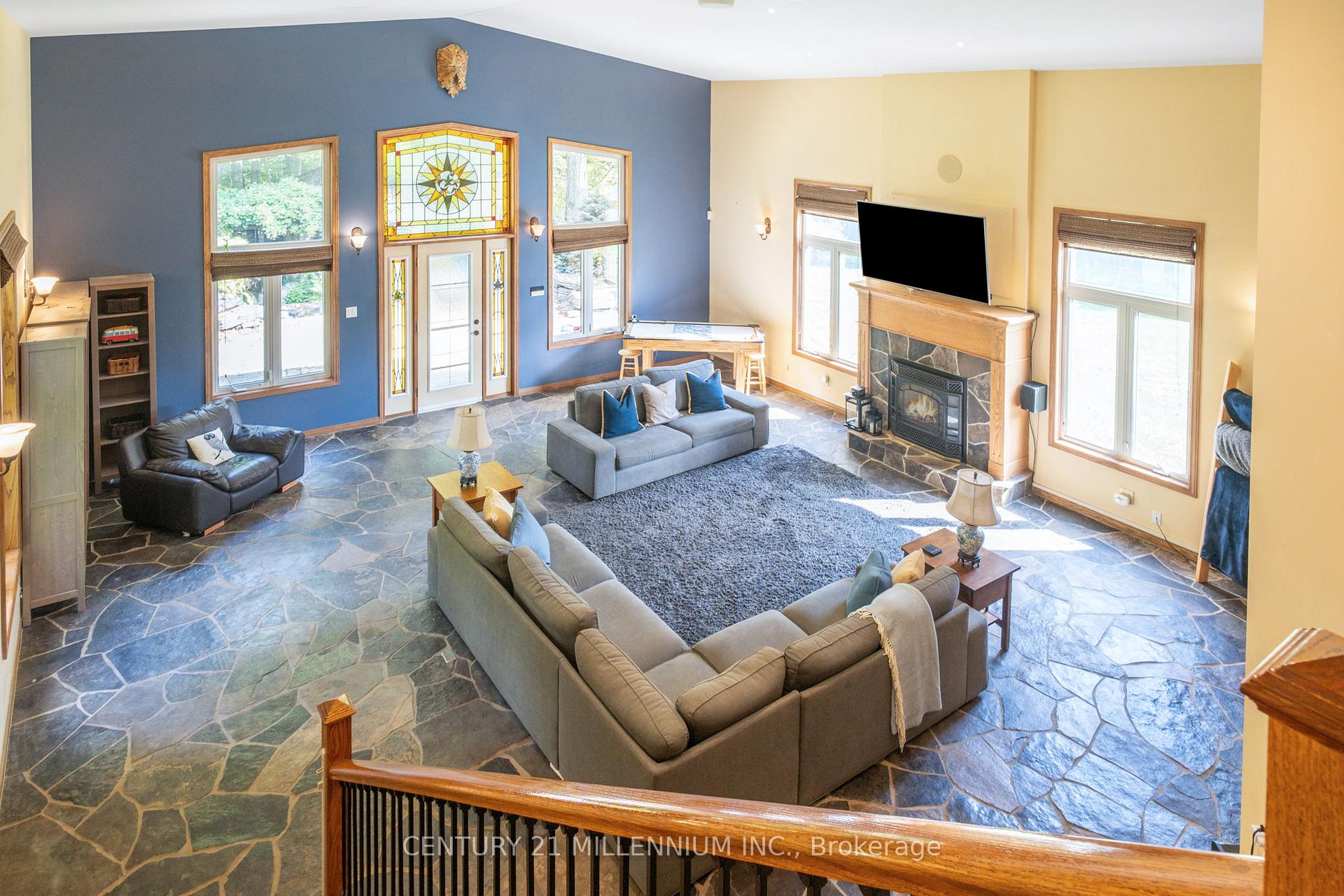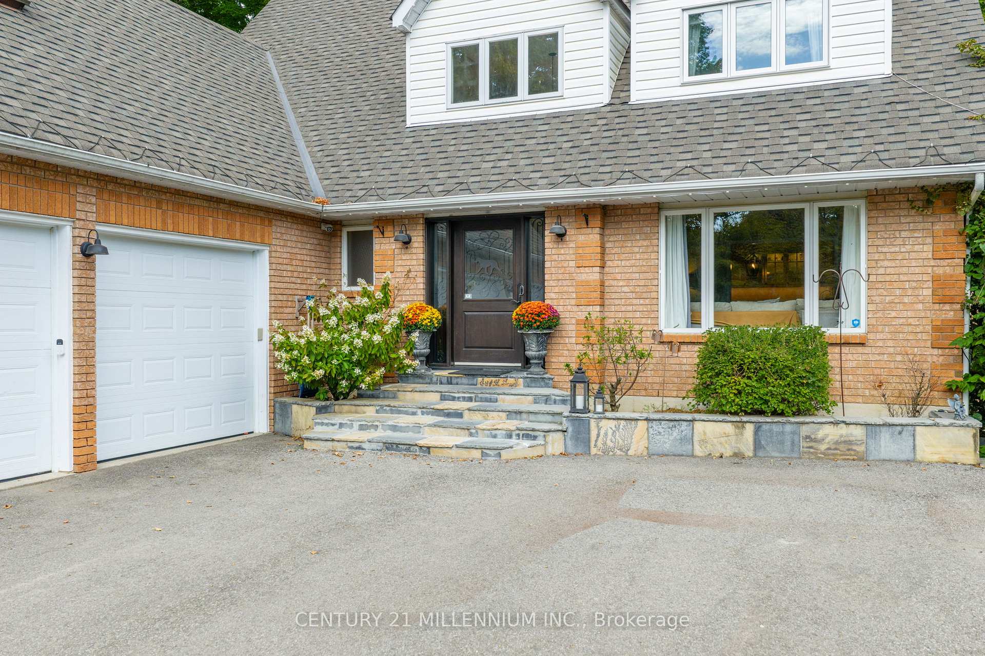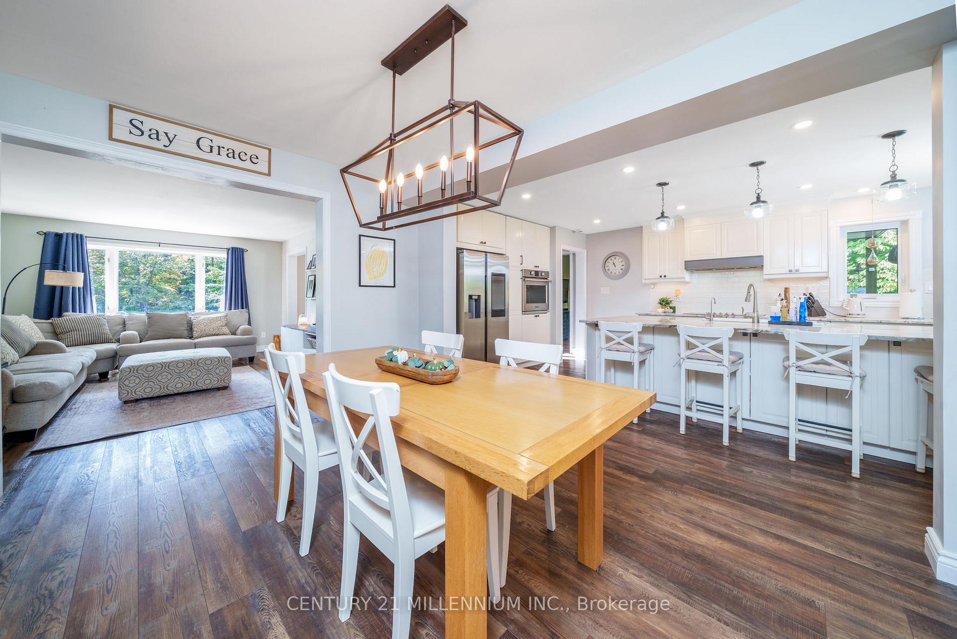 Remarkable country home! Stunning private setting with a waterfall feature, pond, surrounded by Harwood forest. Large family home, with upgraded flooring throughout, newly renovated kitchen with induction cooktop, large centre island and eating area, open concept dining area overlooking kitchen with a large pantry area. Main floor family room with wood burning fireplace, large front living room, wrap around deck off kitchen, Huge great room with in floor heating, soaring ceiling, fireplace and loads of natural light, walkout to a stone patio with waterfall feature, outdoor fireplace, and a enclosed gazebo …great for entertaining! 4 large bedrooms with renovated ensuite bath and 4pc bath, loft area over garage is perfect for home office or craft room. Unfinished w/o basement. Car enthusiast dream 3 garage with both heating and air conditioning!!! Large storage shed off garage. Fantastic fenced in backyard, with a pond (great for skating in the winter), separate detached single car garage. Large paved driveway with loads of parking. Generac Generator large enough to power whole house! Rogers High Speed internet service, and natural gas.